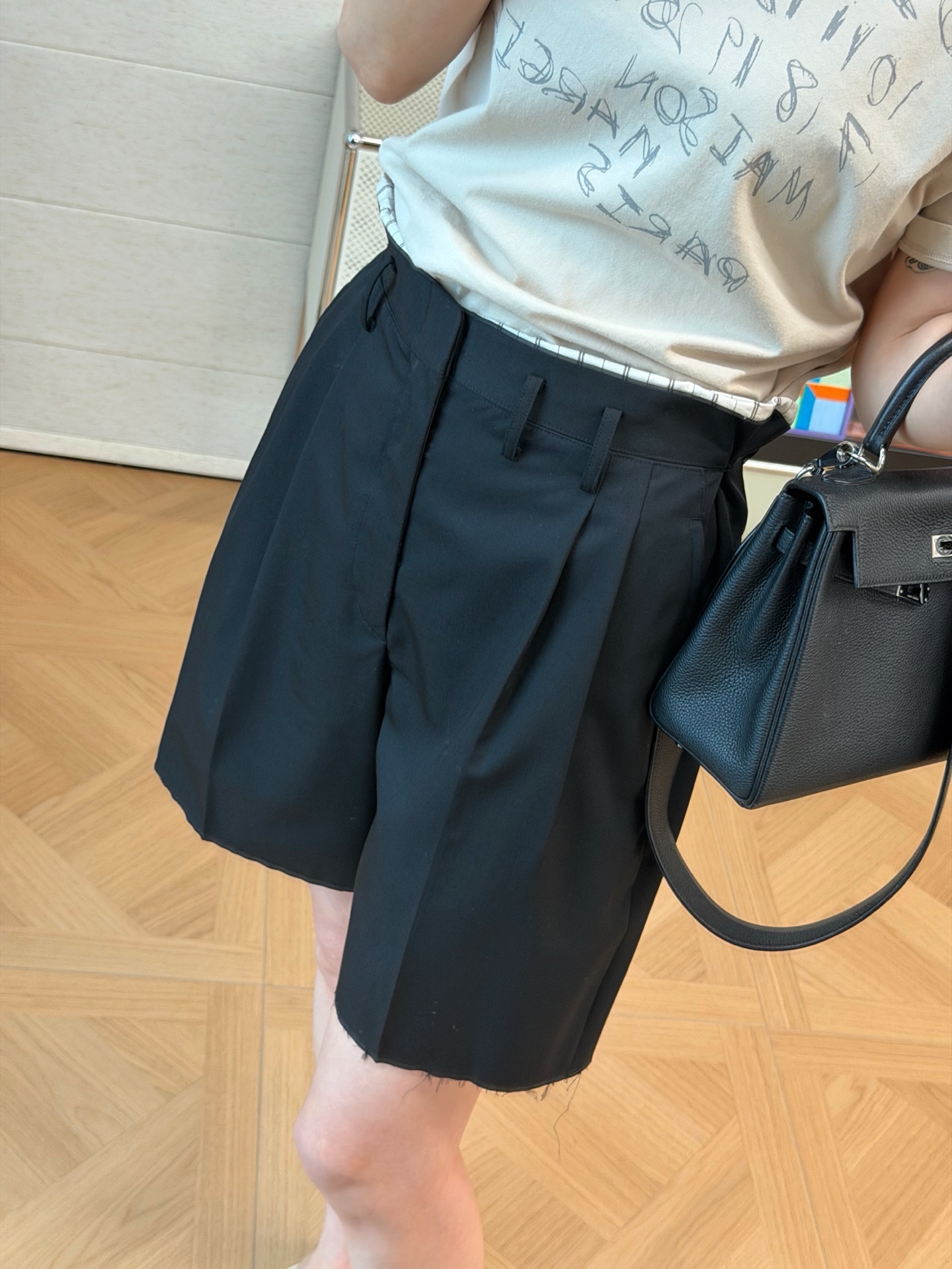 這款黑色五分西裝短褲,真的可以說是衣櫃裡不可或缺的萬用單品。