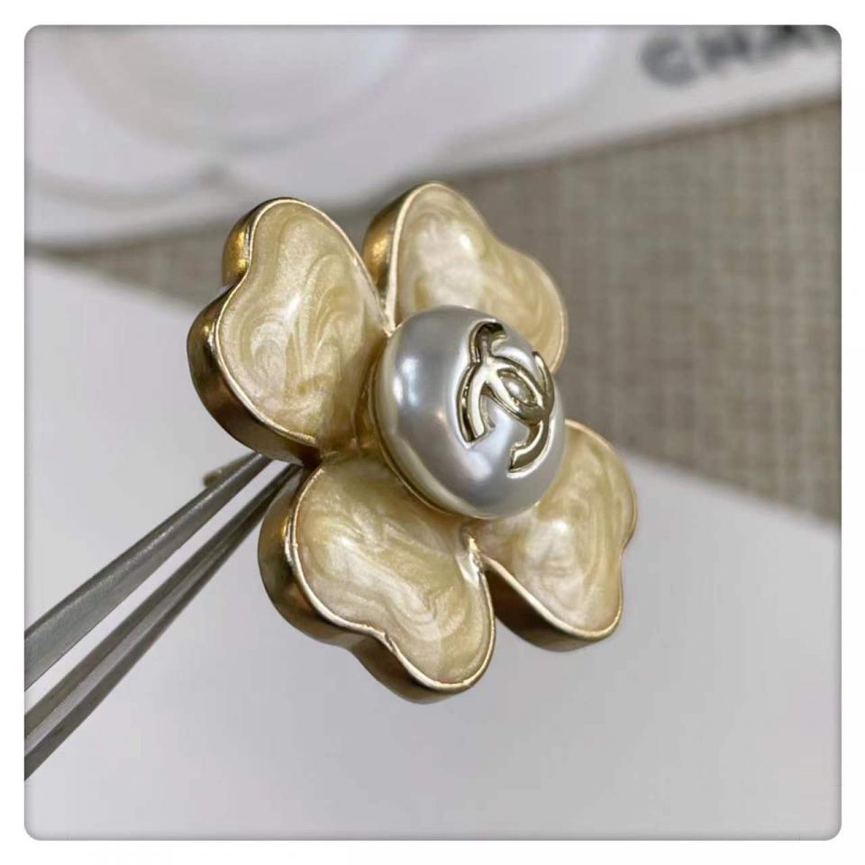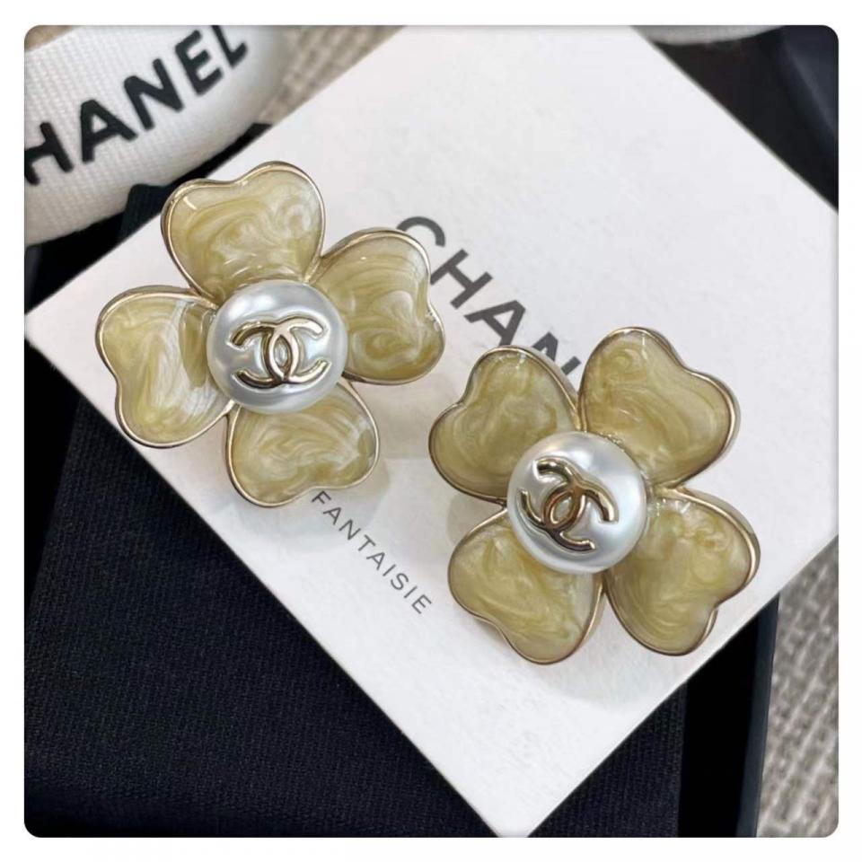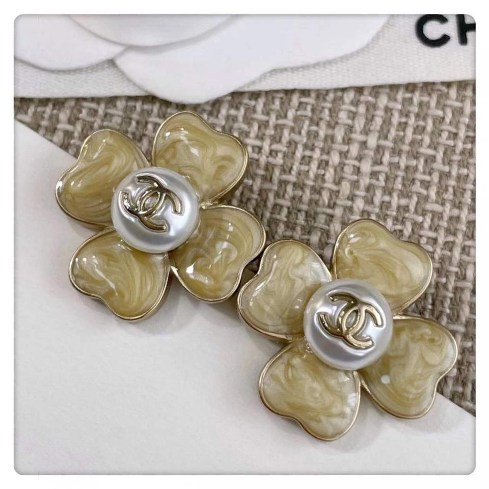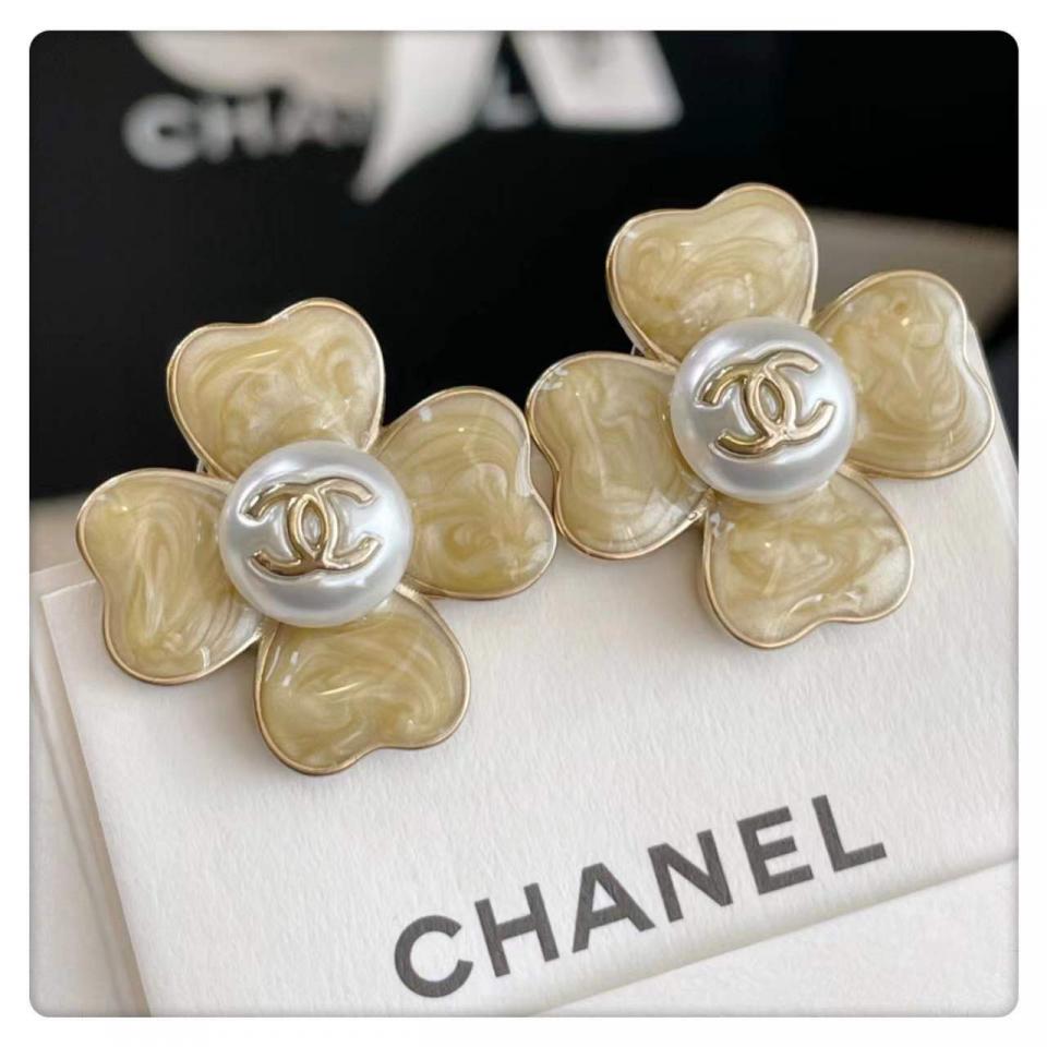 閃粉琺瑯四葉花瓣造型特定珍珠,這個款式一上耳,你就會驚呼真心太美太好看了,認准雙C是坐落在珍珠裡邊的,而不是貼在珍珠表面上,背面五金精工雕刻紋路