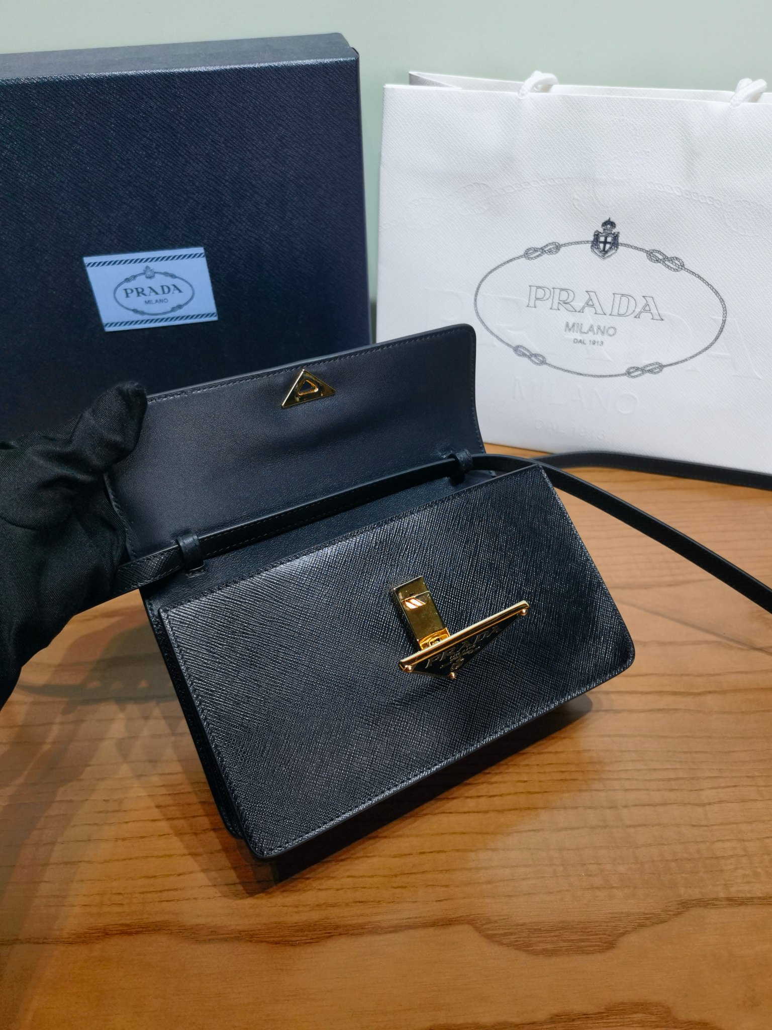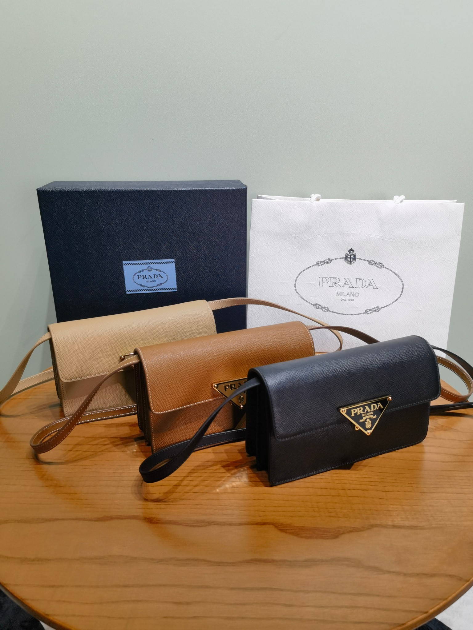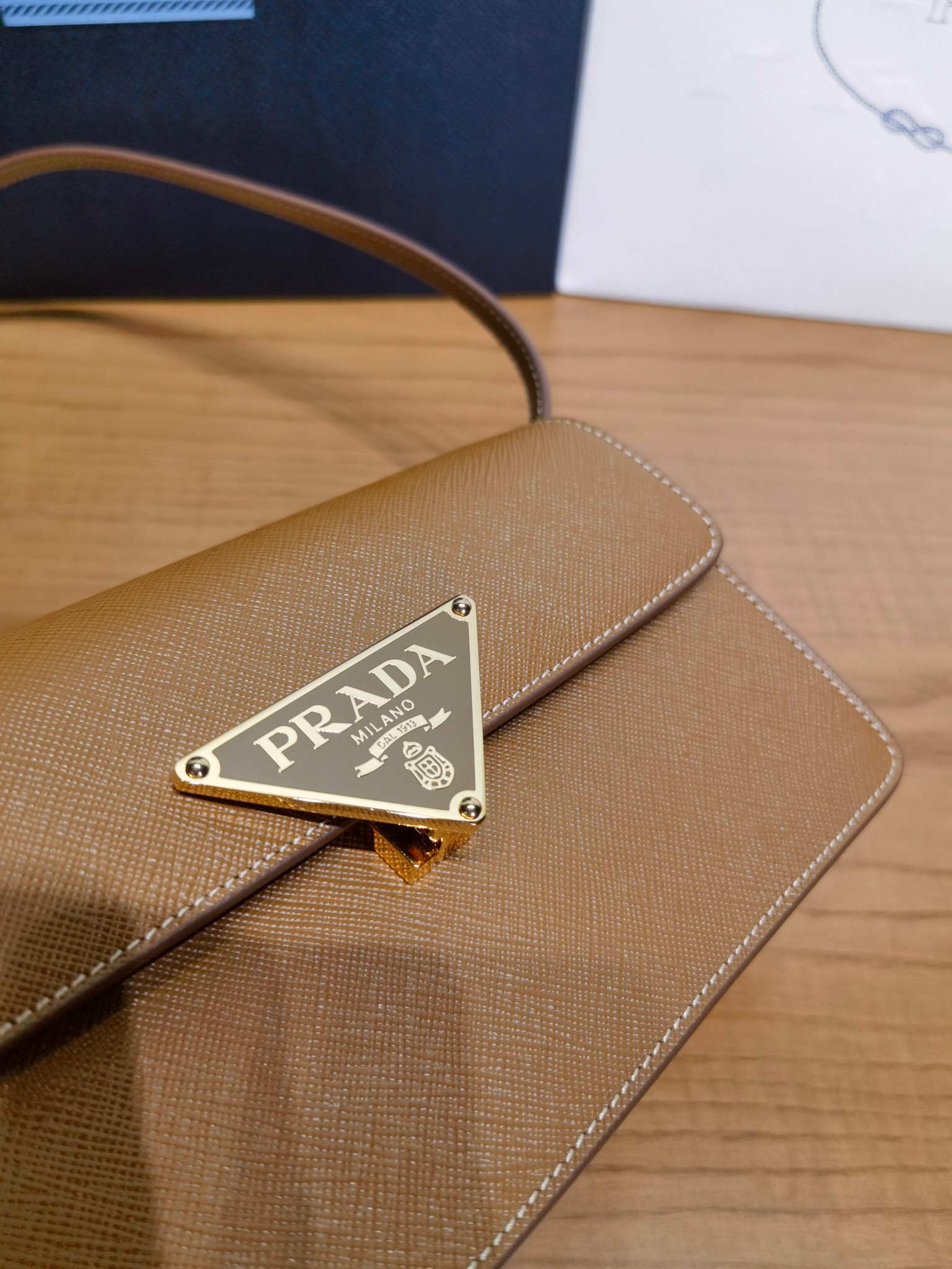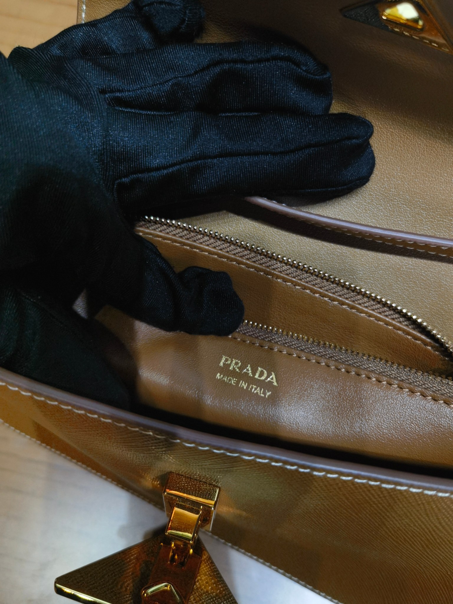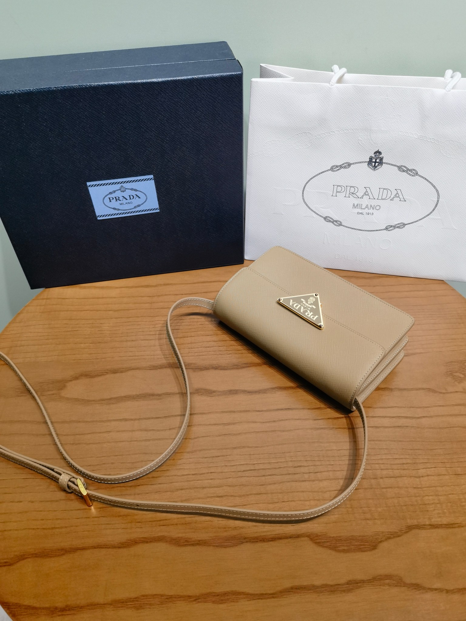 方正輪廓搭配品牌經典的三角形金屬標誌,低調又不失精緻感,一眼就能認出是P家的經典之作。