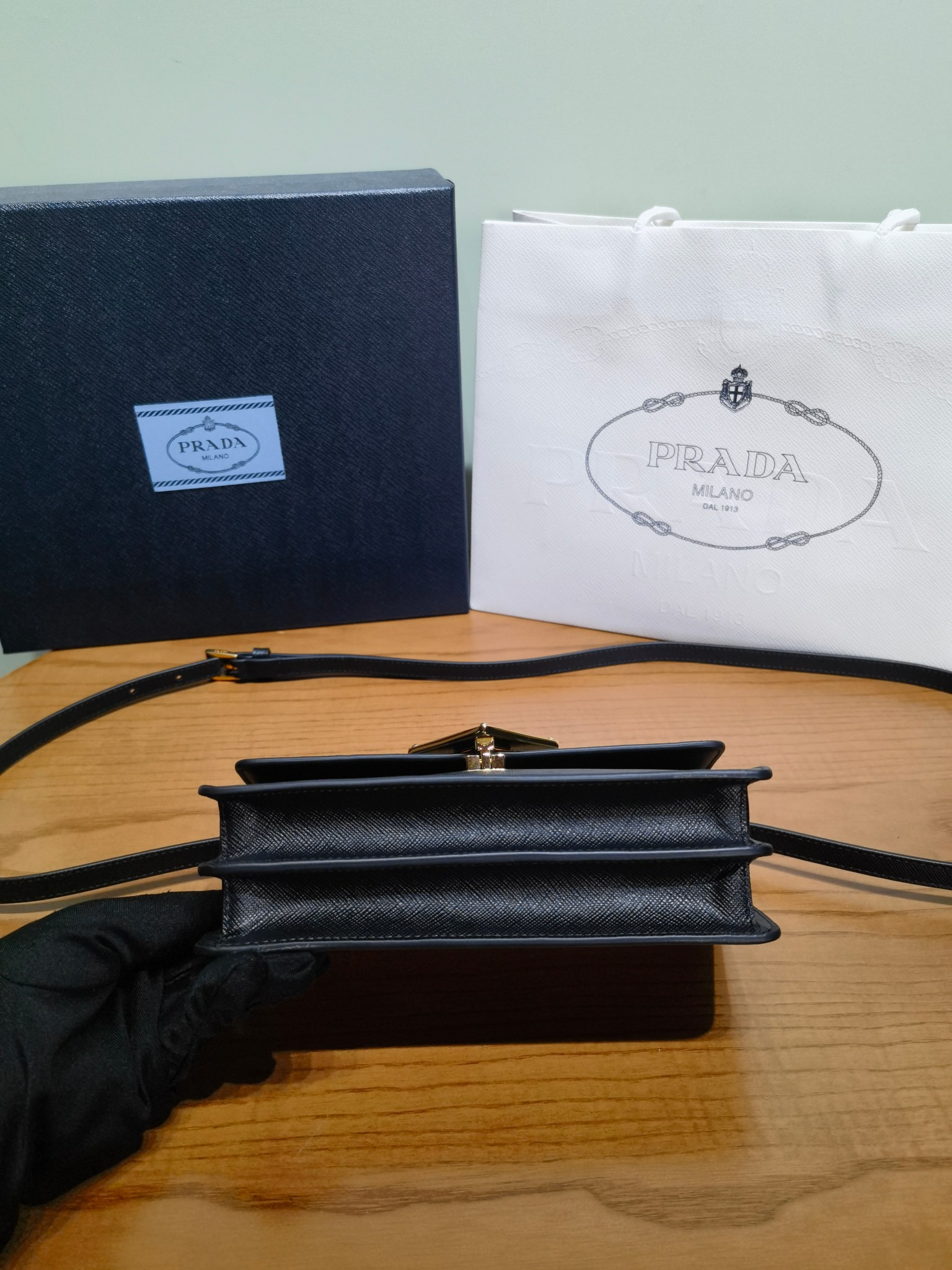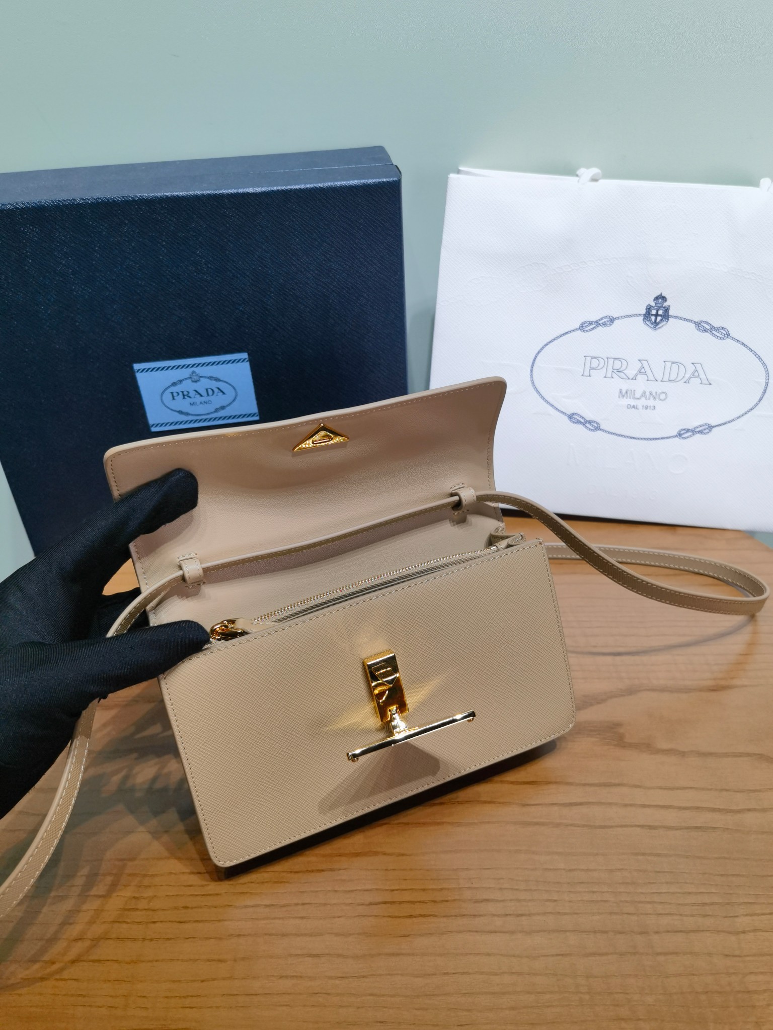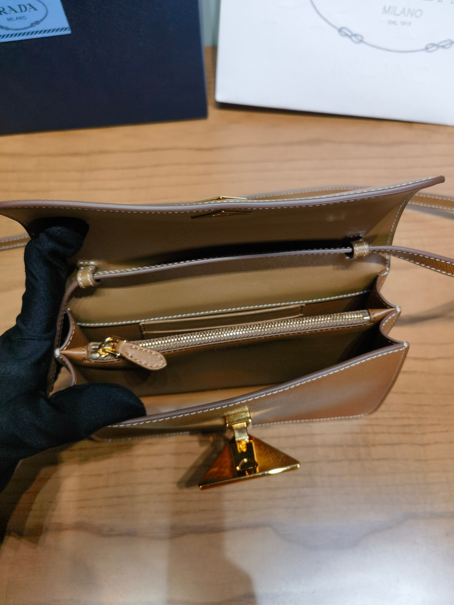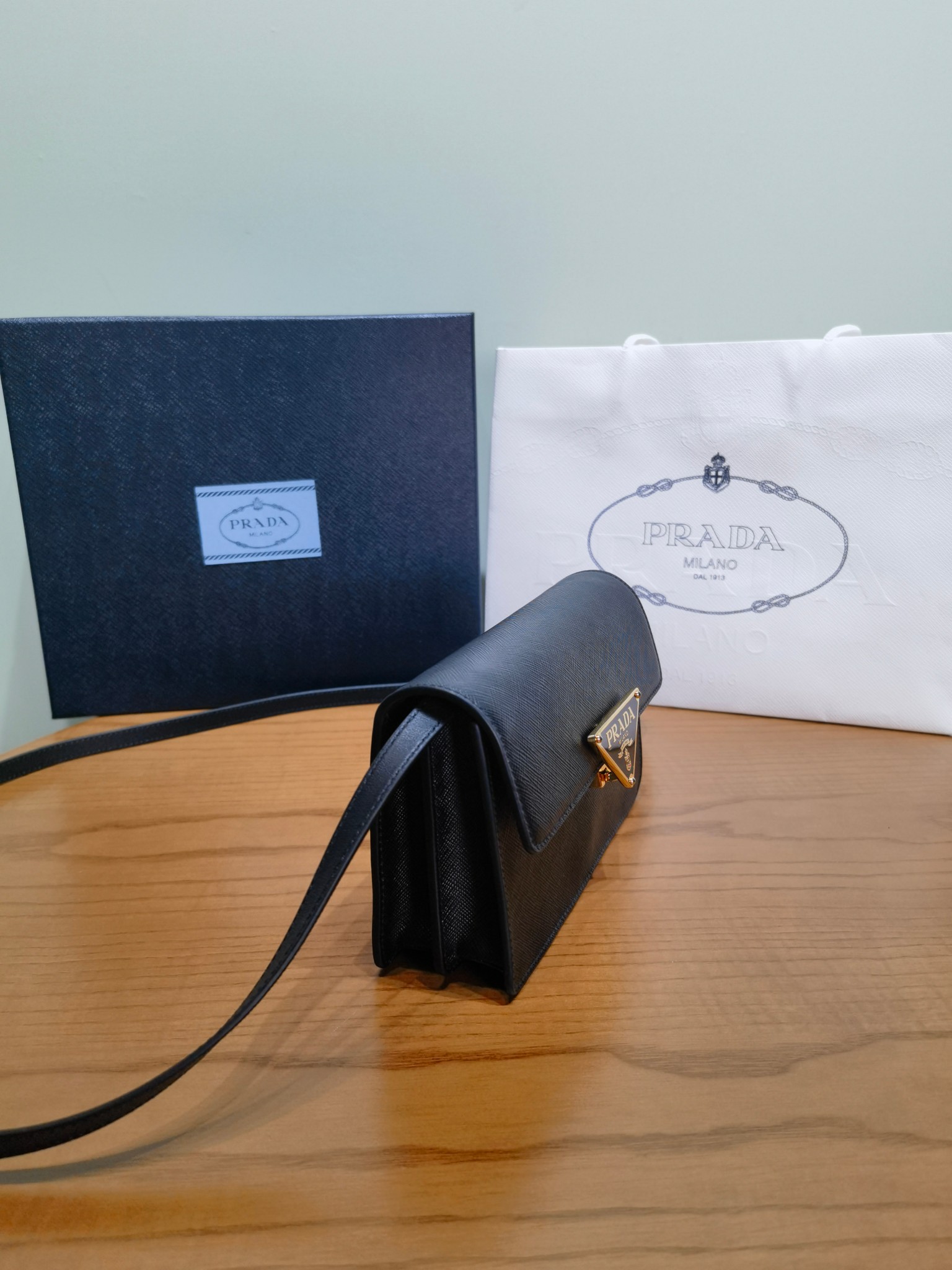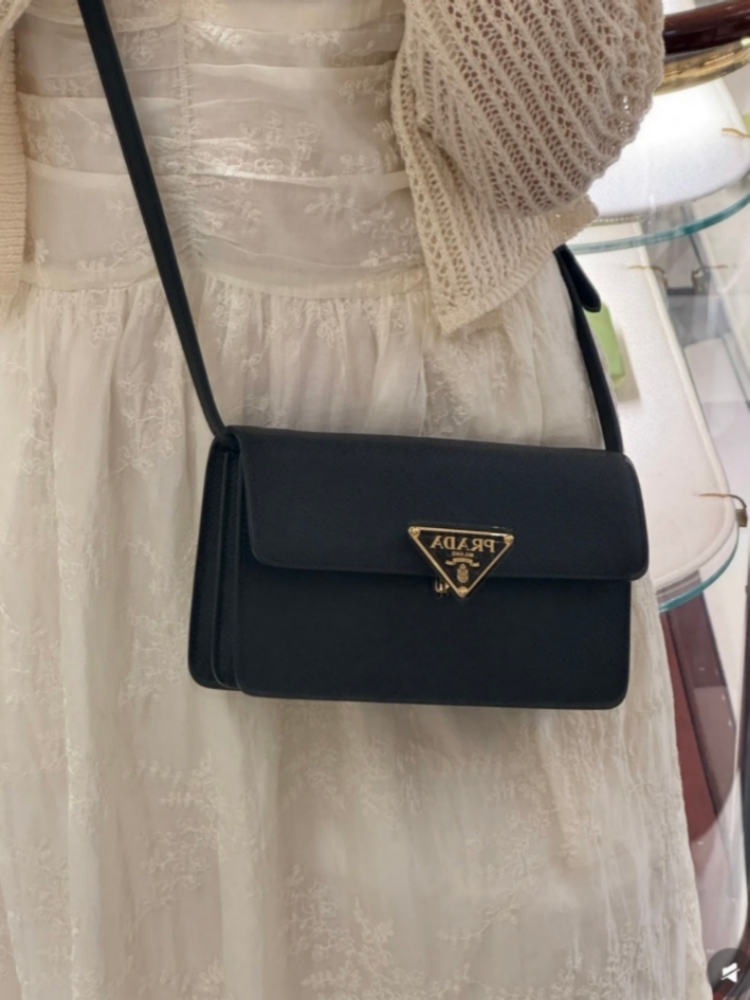 方正輪廓搭配品牌經典的三角形金屬標誌,低調又不失精緻感,一眼就能認出是P家的經典之作。