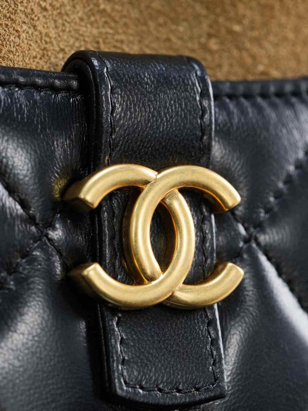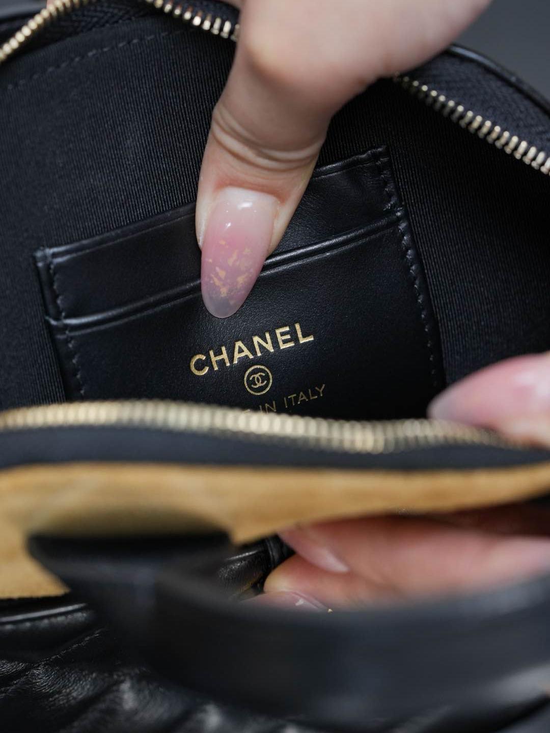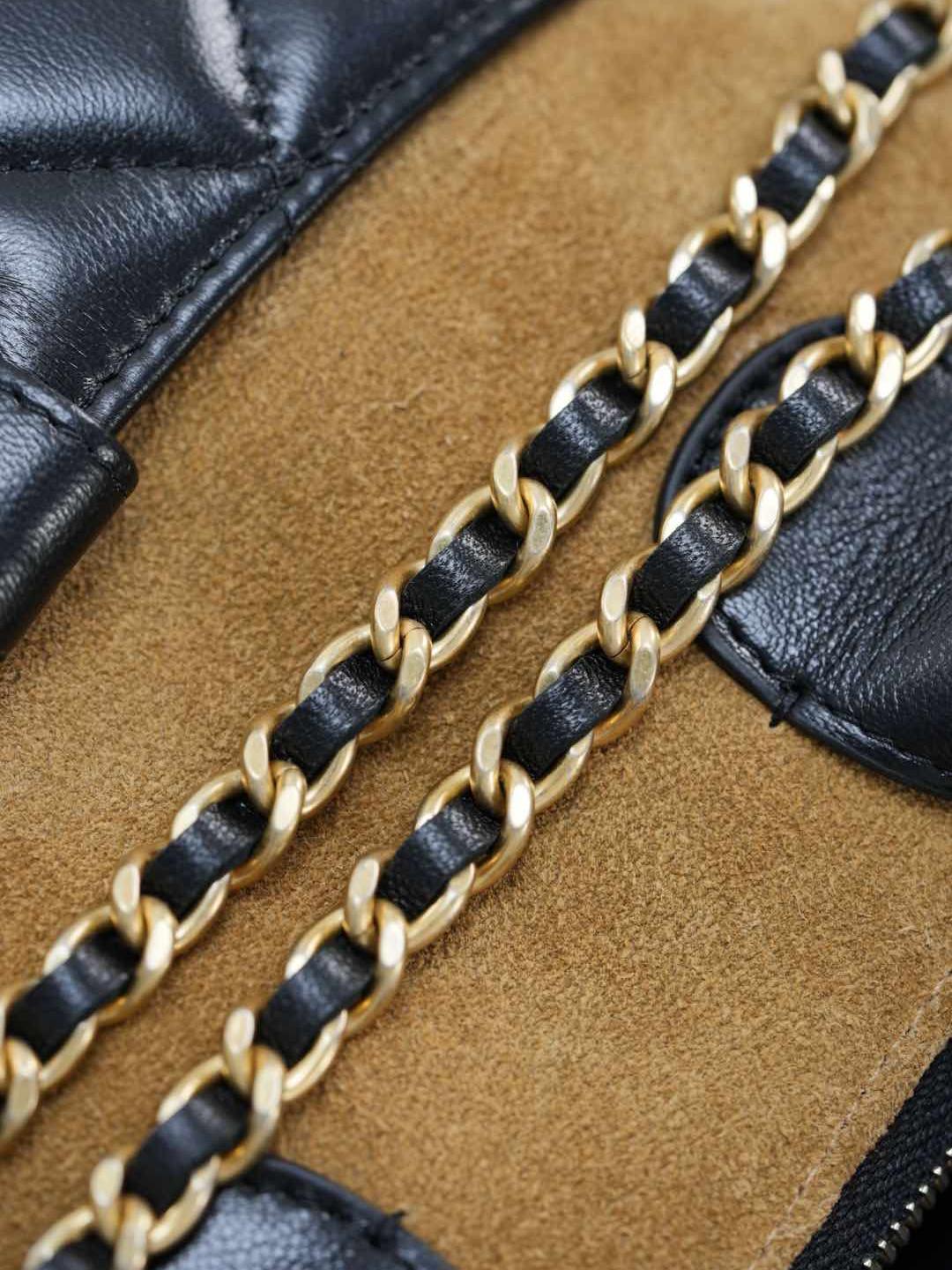 金屬部分選用復古砂金色調,搭配精緻小巧的雙 C 扣與絲滑 YKK 進口拉鍊,整體細節非常講究。