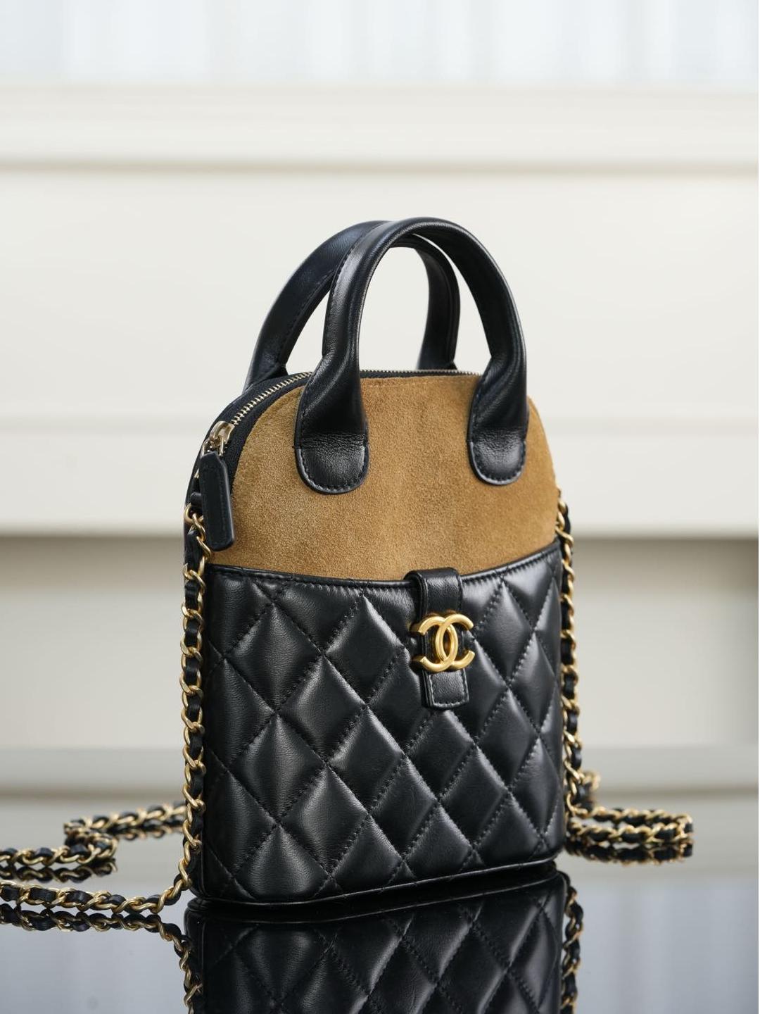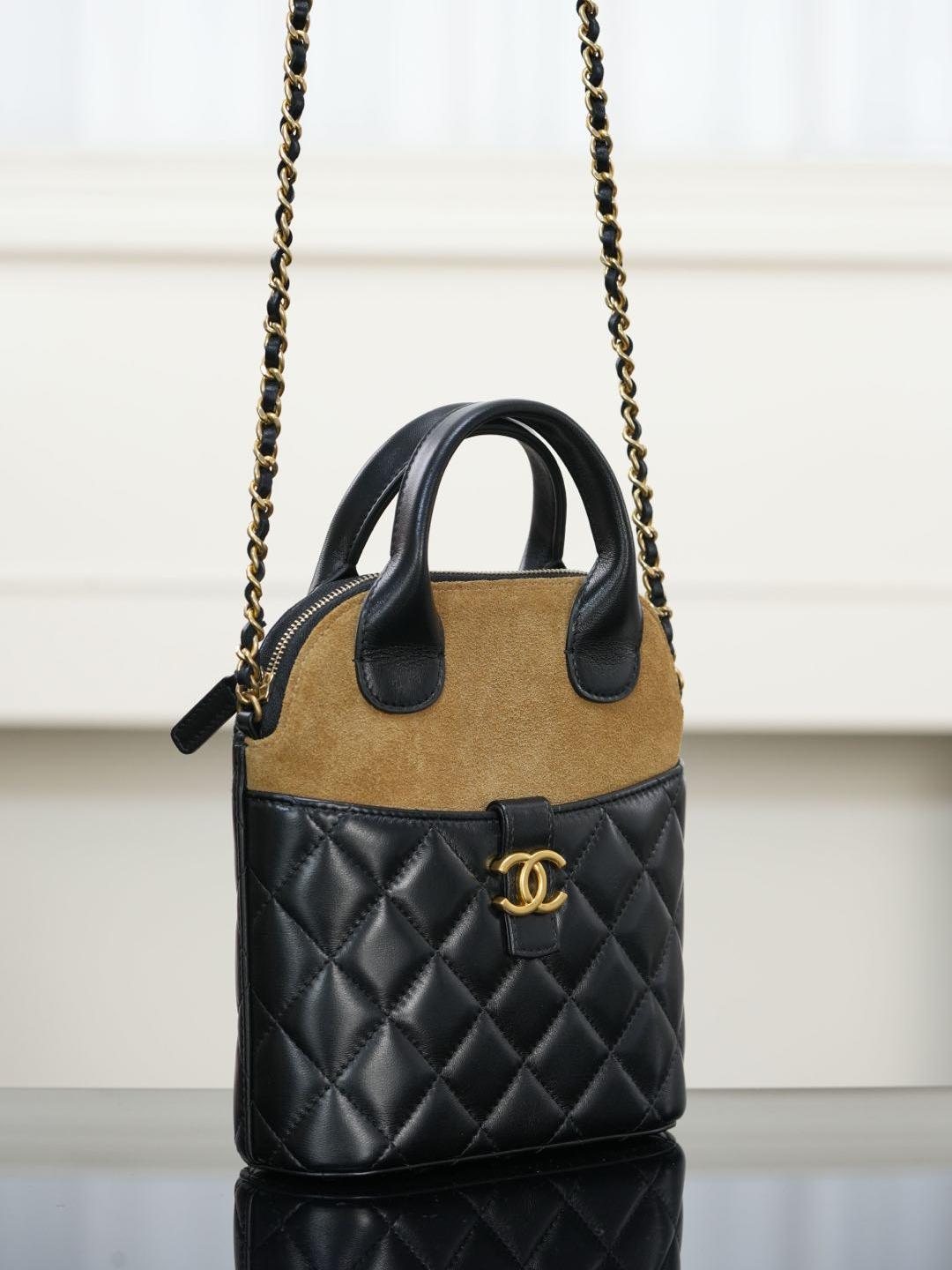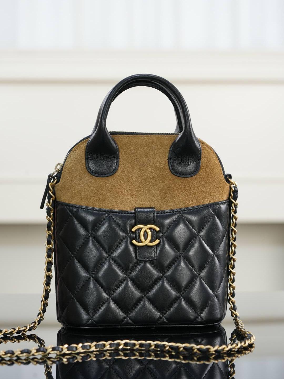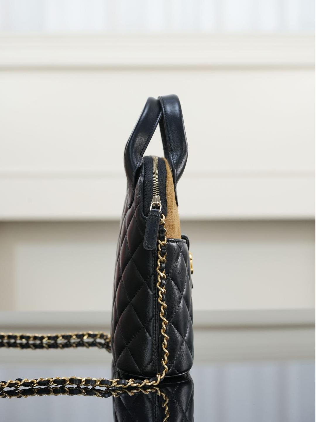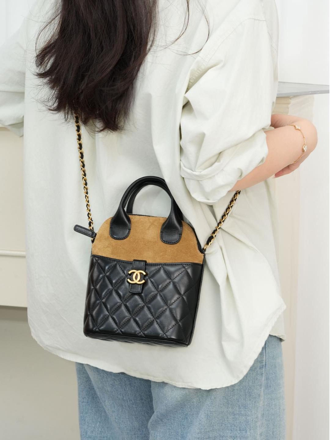 設計上依舊延續經典,前側雙 C 扣打開後內裡設有小隔層,既能手提,也能搭配皮穿金屬鏈條,實現單肩或斜背的多種背法。