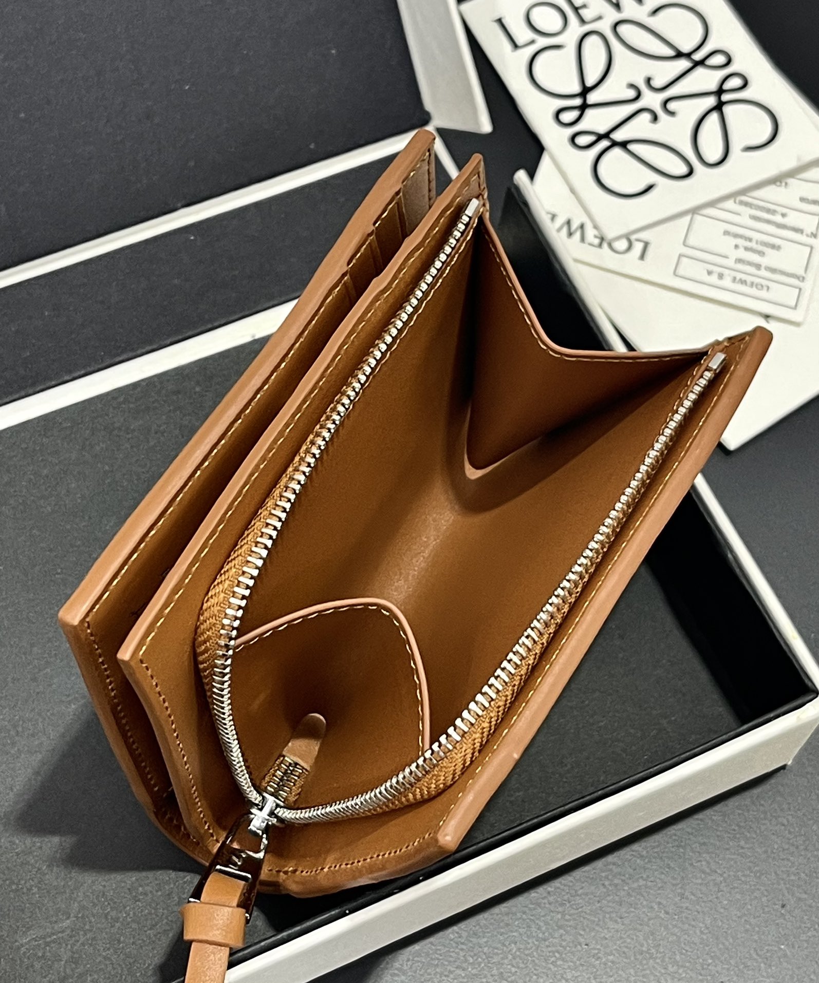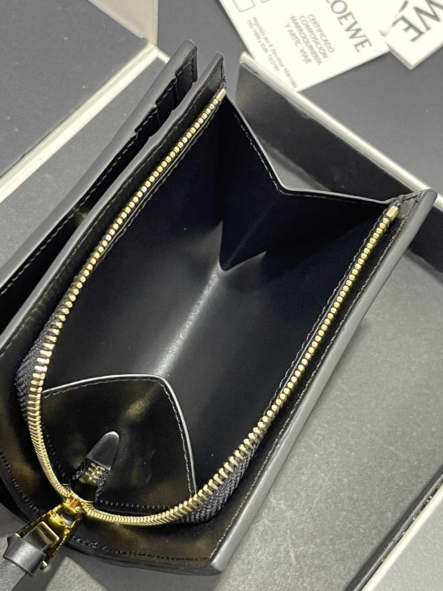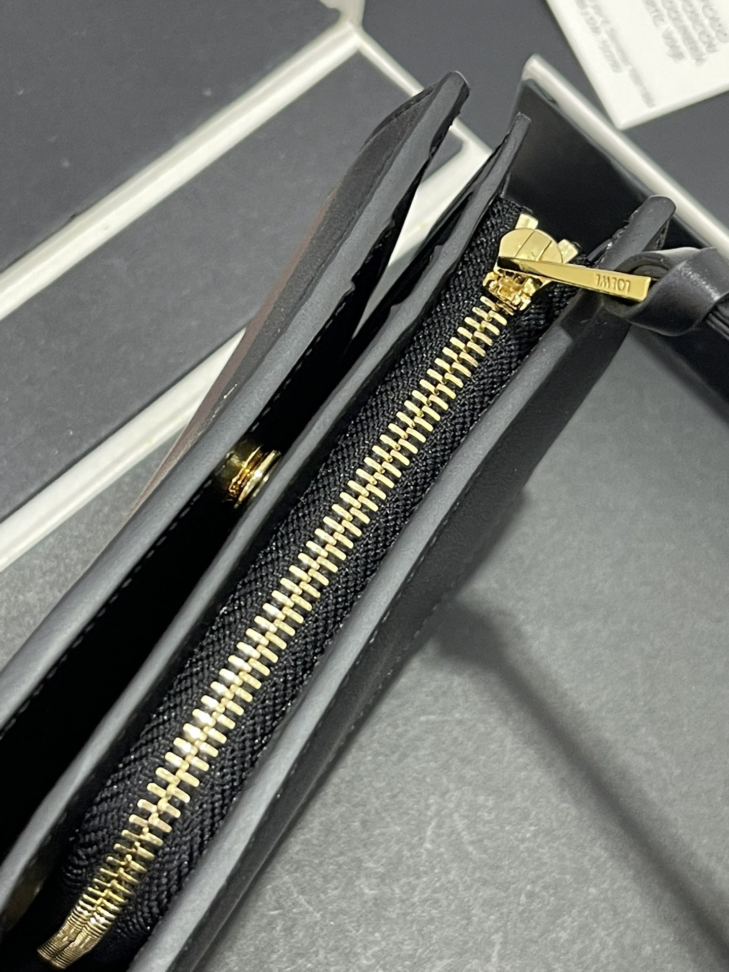 皮夾為對扣式開合設計,內層配置六個卡位與一個拉鏈夾層,大小剛好能放下常用卡片、零錢與摺疊鈔票,不會太厚又能裝得下所有必需品。