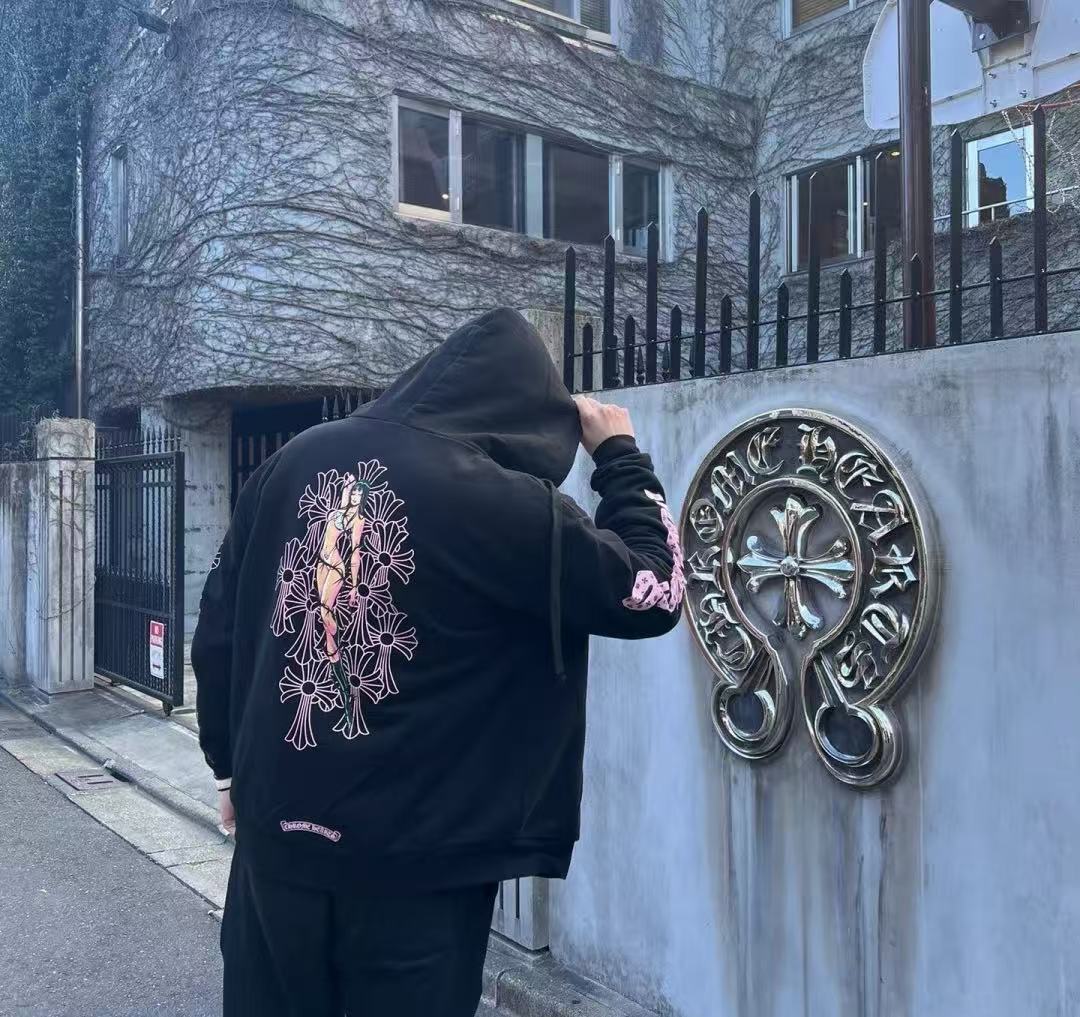 這絕對是2025秋冬最瘋「銀器硬核教主」神衣,遠看就是低調全黑重磅衛衣,近看胸前那片超大立體十字架+墓碑圖騰直接閃爆全場,油墨厚到像浮雕,隨便拉開拉鏈露出內裡就是整條街最野的那個,帥到讓人想直接去紋身~