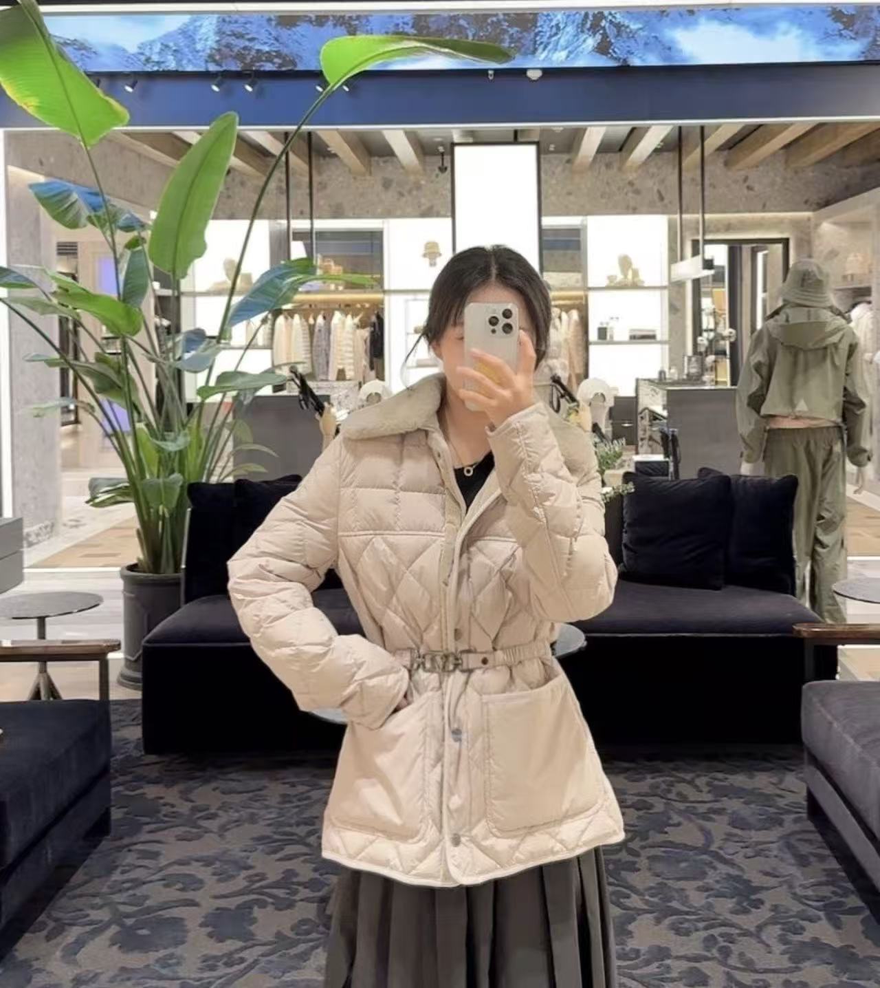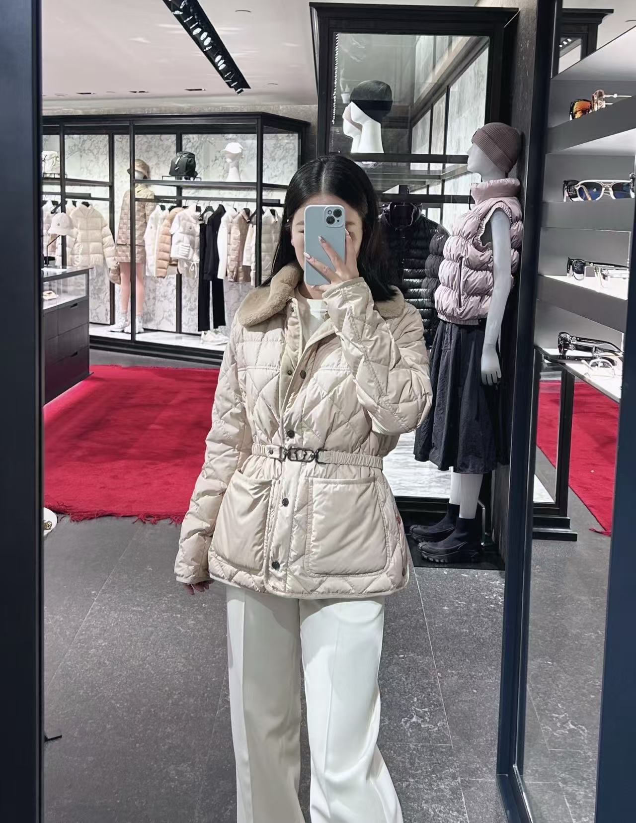 這件短款羽絨服剪裁超收腰,搭配同色繫帶之後腰線直接拉滿,腿長兩米不是夢!