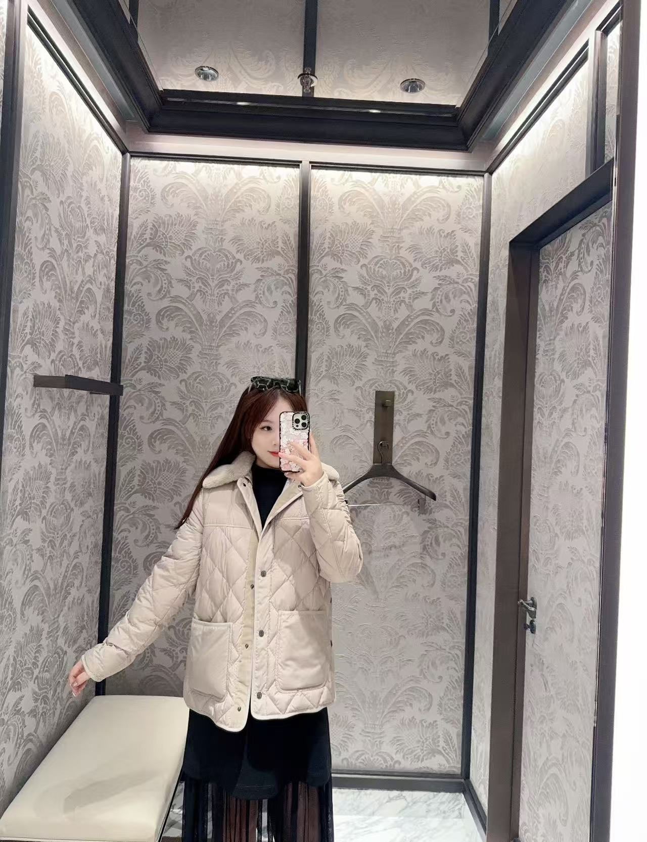 最強亮點就是那圈超級柔軟的可拆卸兔毛領,想走優雅路線就裝上,想低調就拆掉,兩種風格隨便切換,太會了吧~