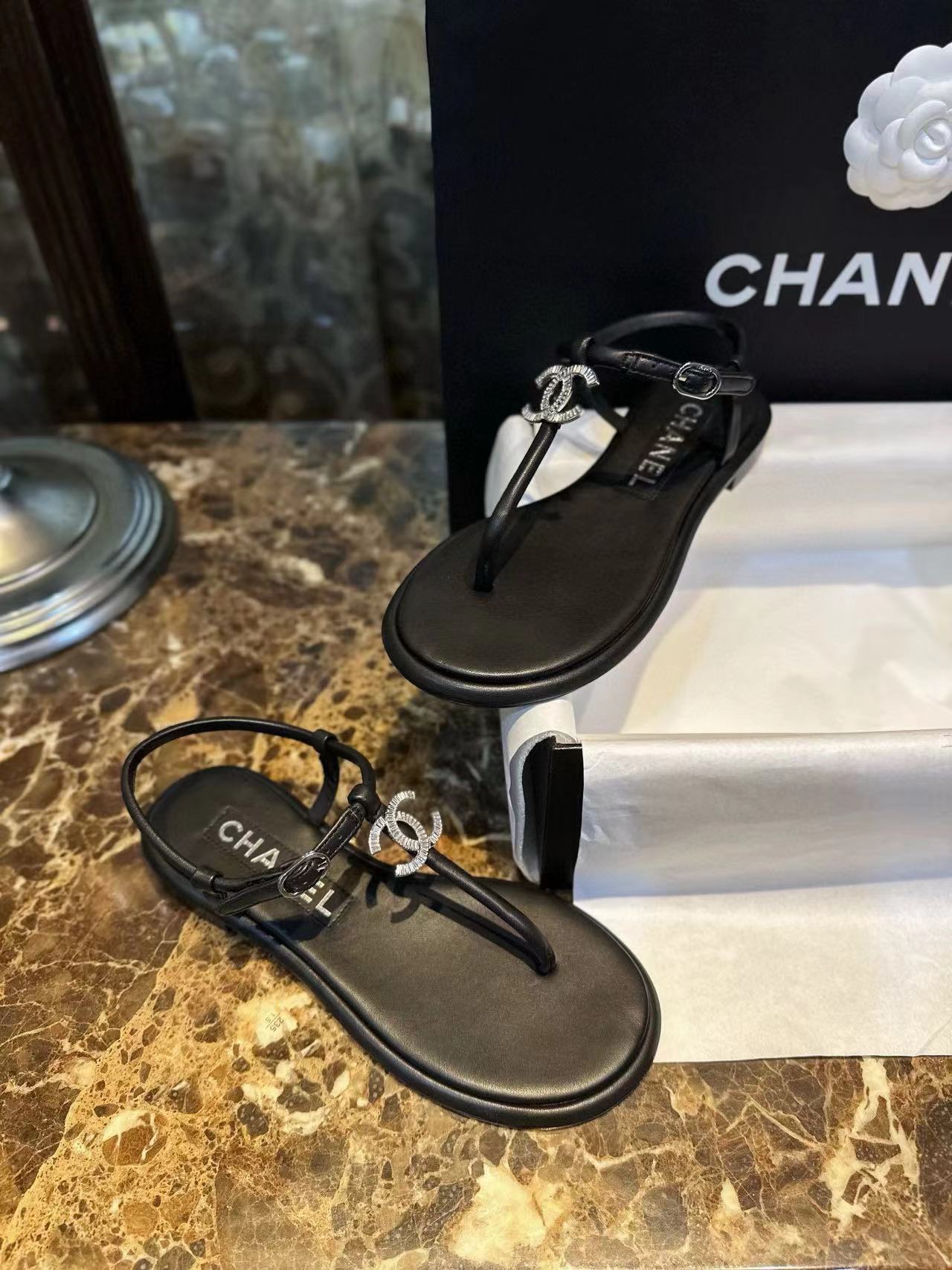 2024夏季新品 C家24c一字帶水鑽夾腳涼鞋 夏季必入