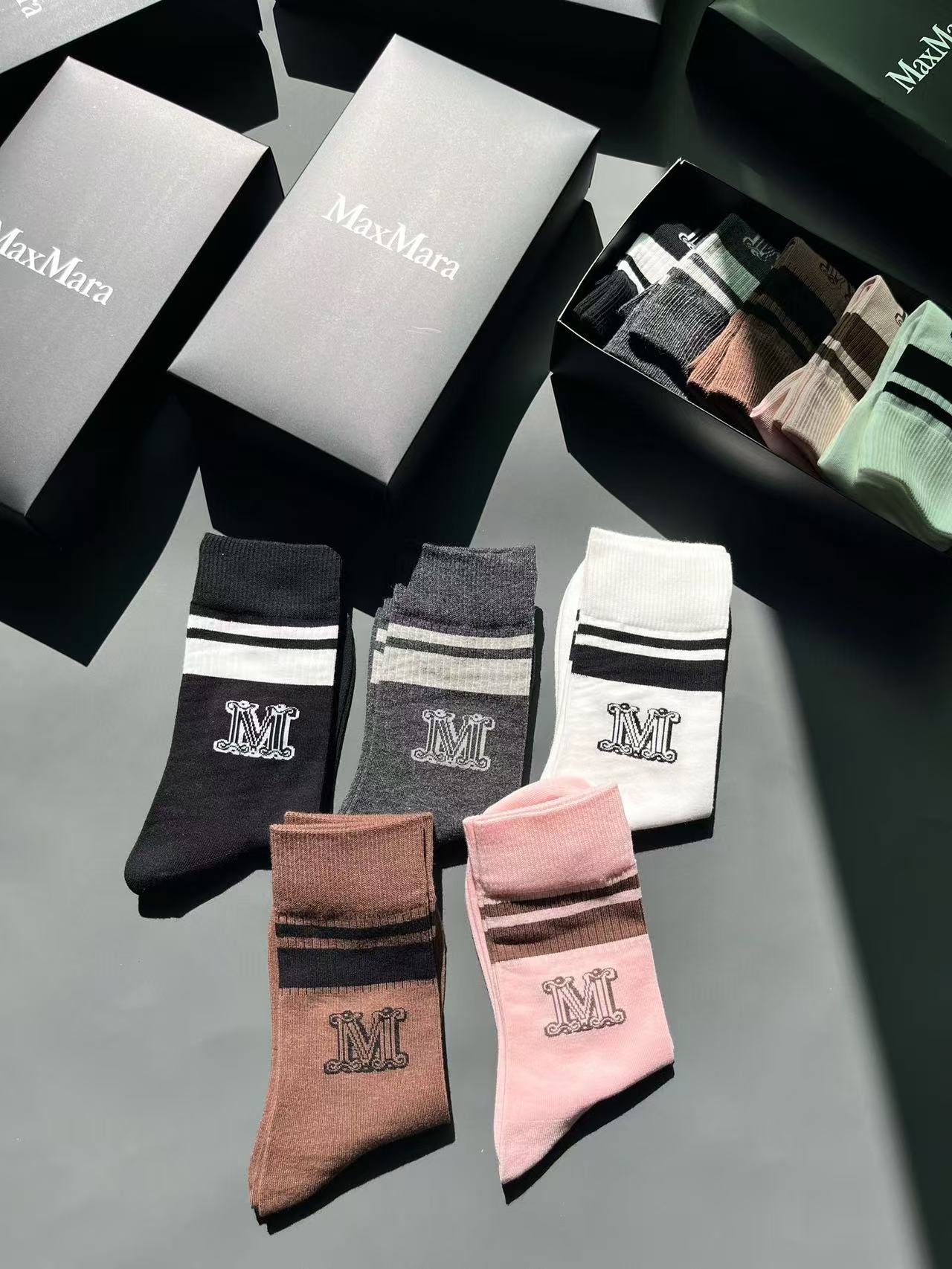 2024秋冬 Max家棉質中筒襪一盒5雙 經典配色