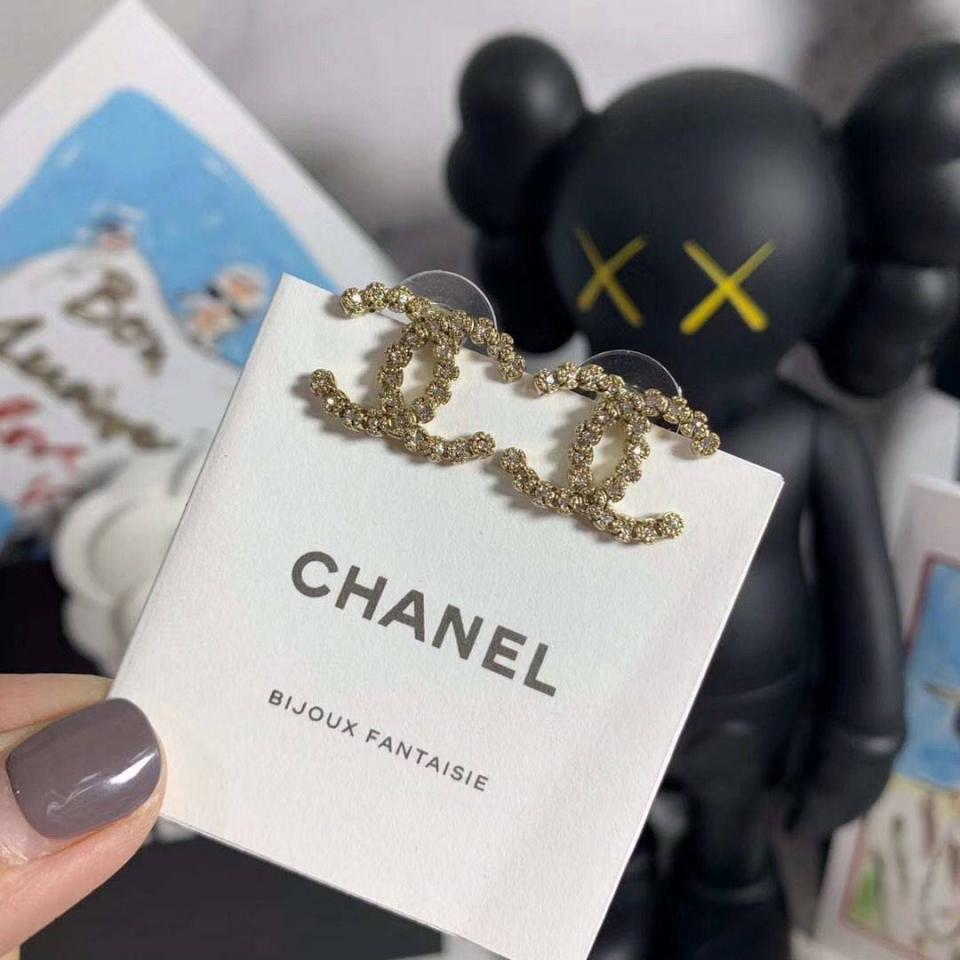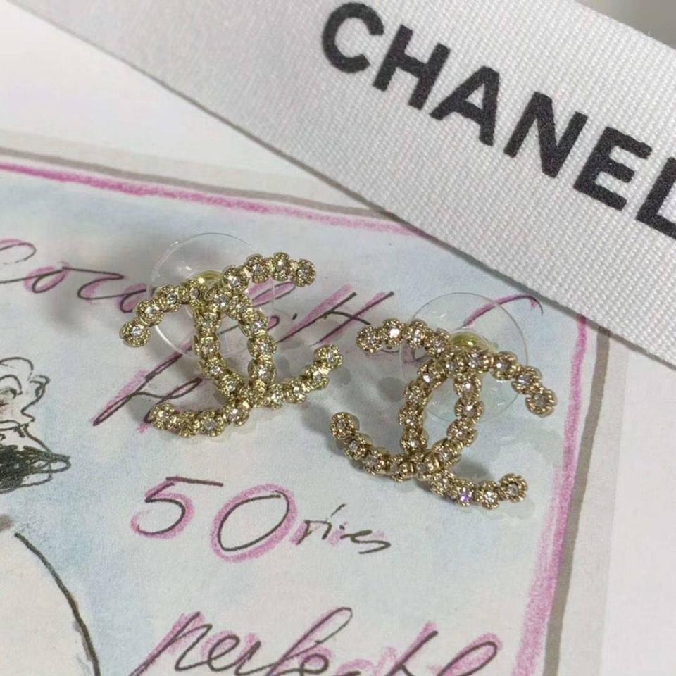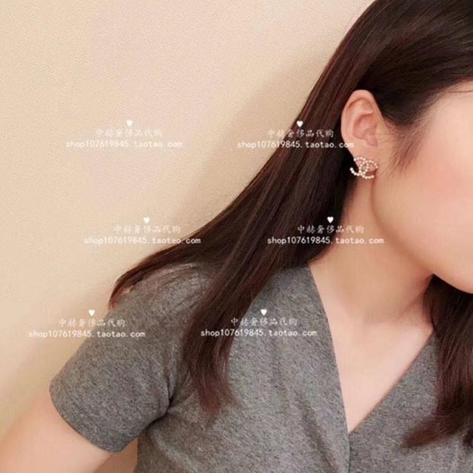 C家花朵水鑽雙C耳環