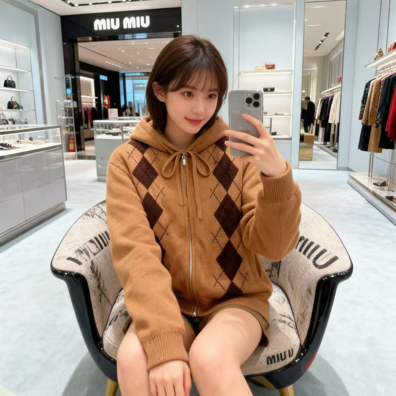 2025秋冬 Miu家 菱格羊絨連帽羽絨服