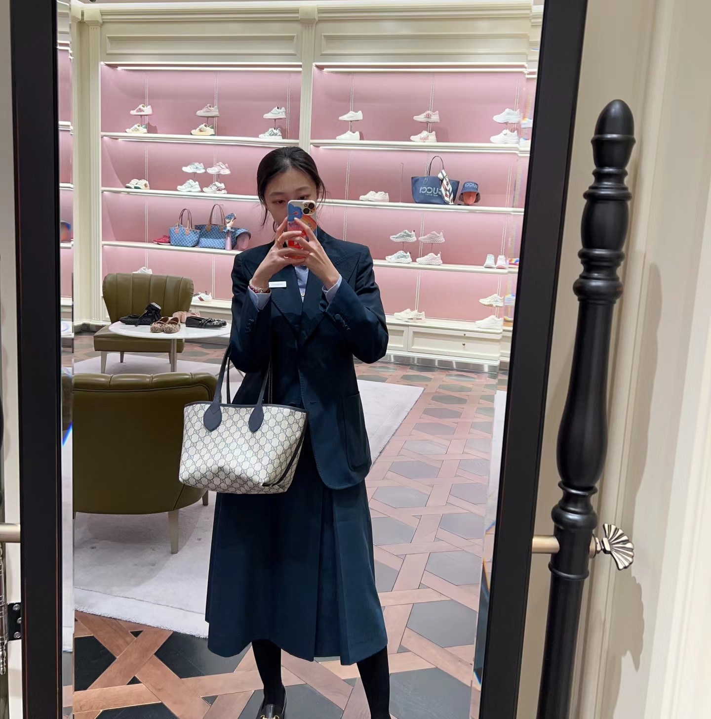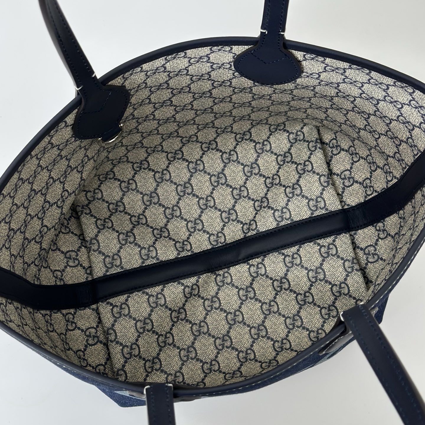 深藍色GG牛仔布:厚實耐磨,丹寧帶有經典品牌識別度,低調又有型。