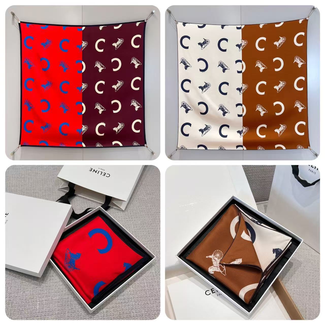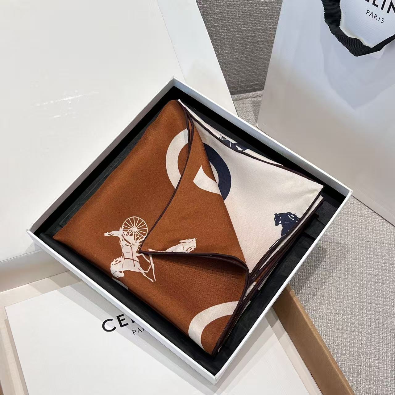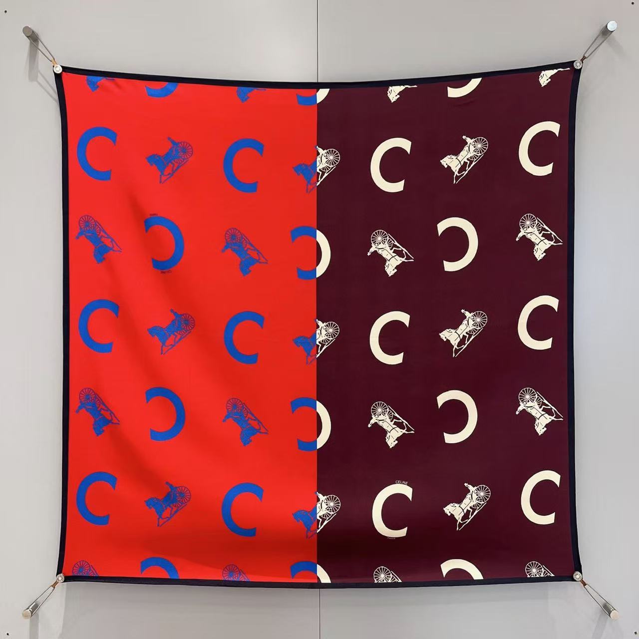2026早春新品 CE家 馬車logo拼接斜紋真絲方巾