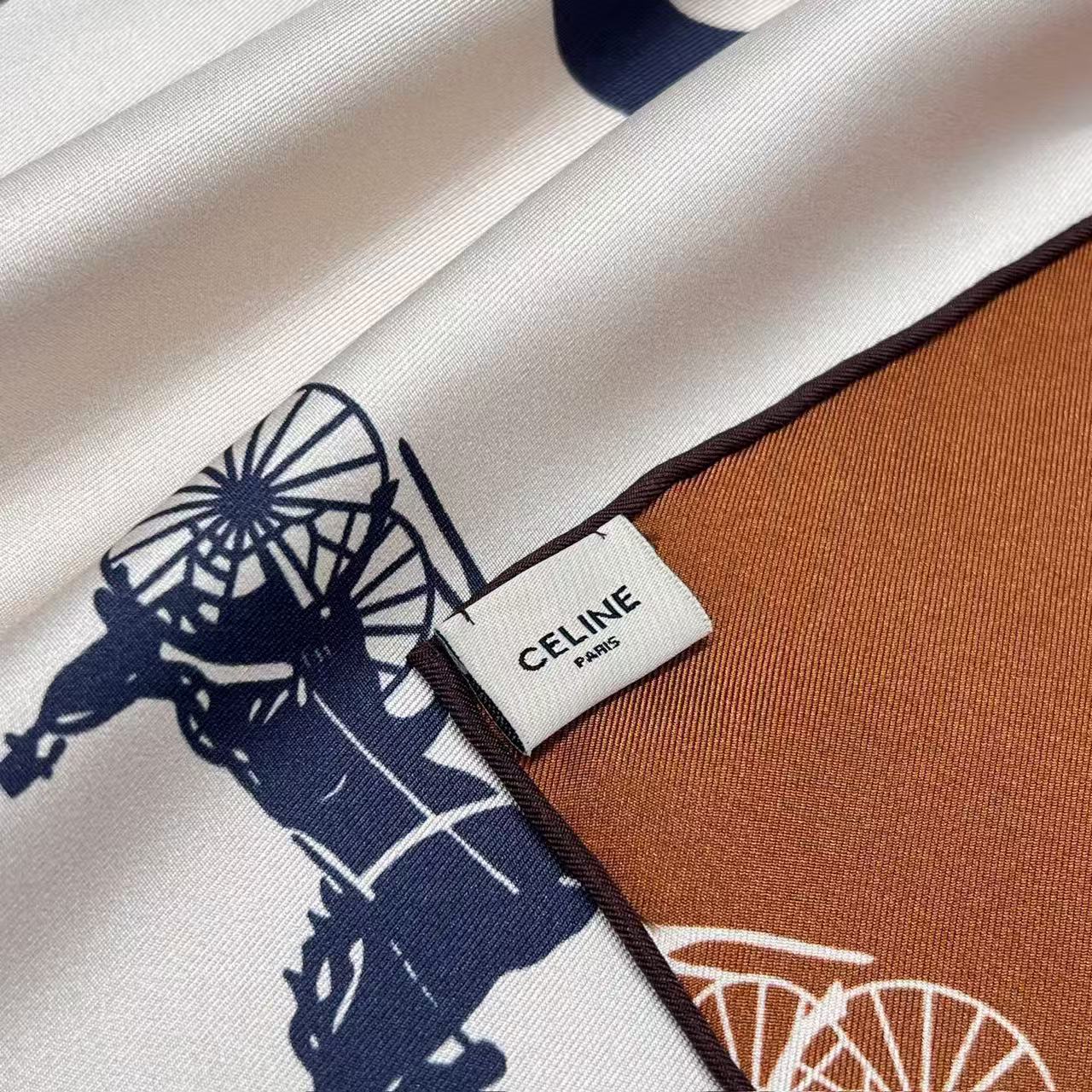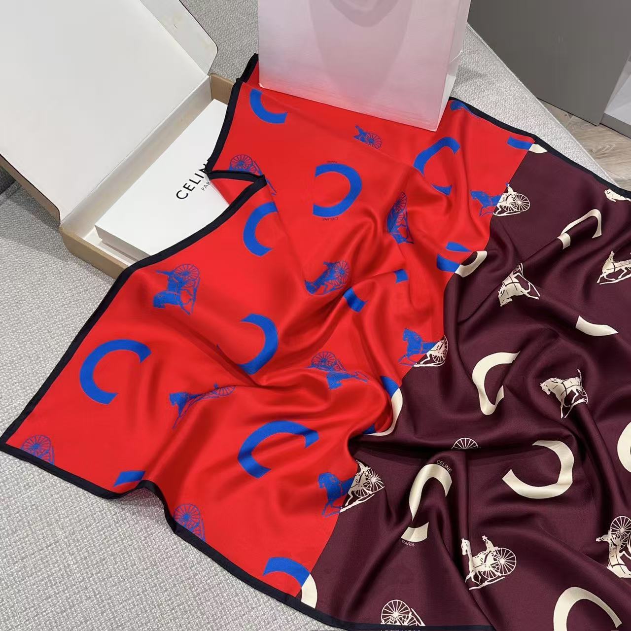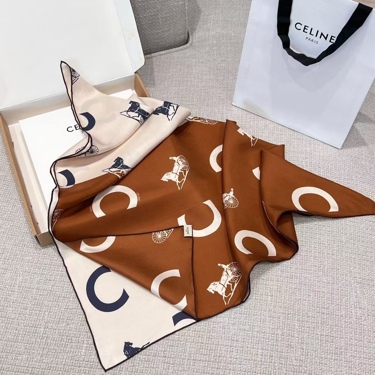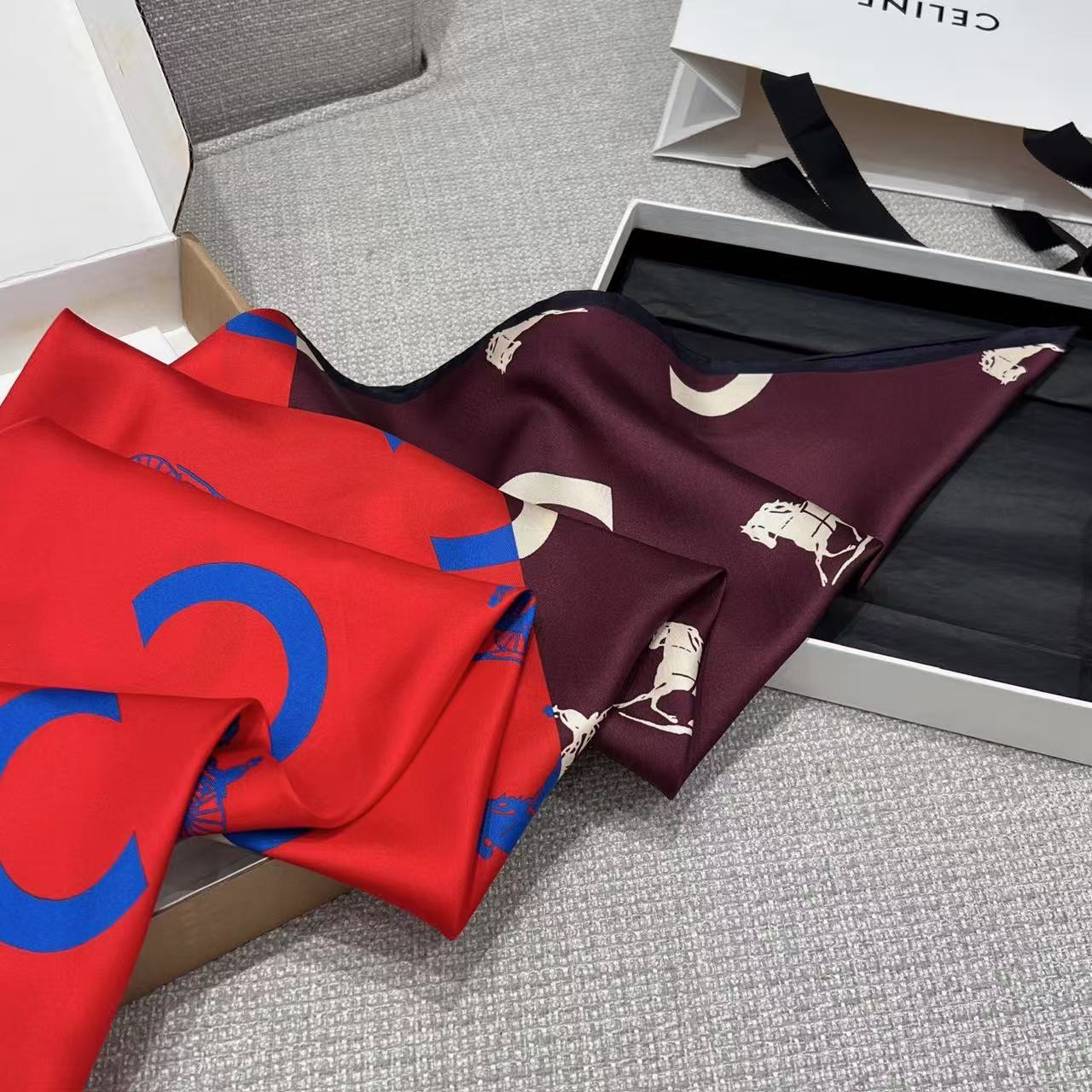 2026早春新品 CE家 馬車logo拼接斜紋真絲方巾