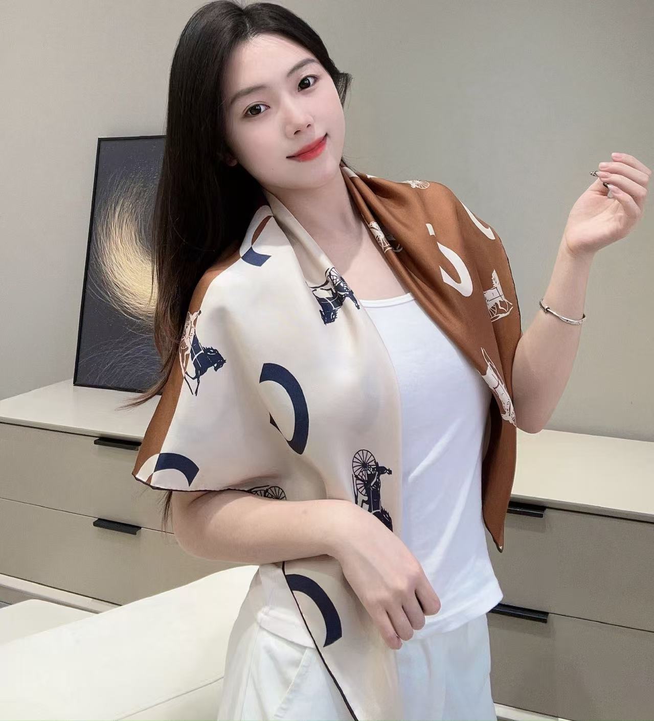 知性優雅的馬術符碼!解析 26SS 「奶茶拼接徽章」斜紋真絲方巾的層次美學