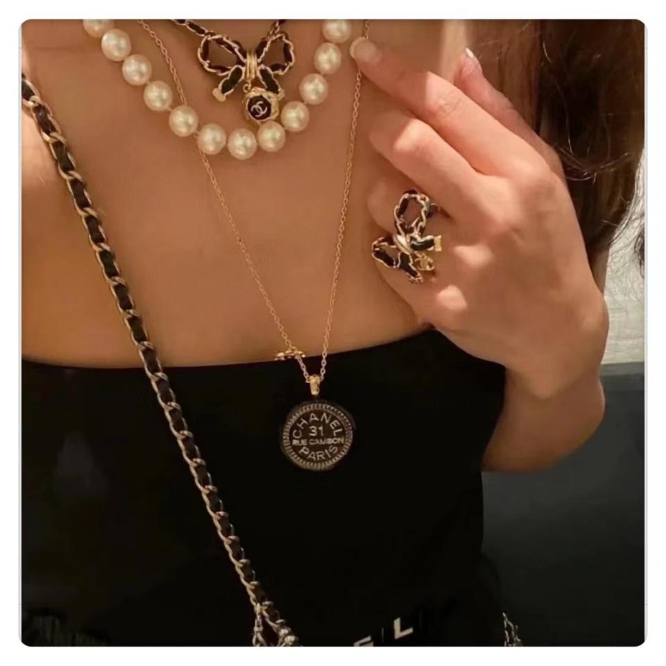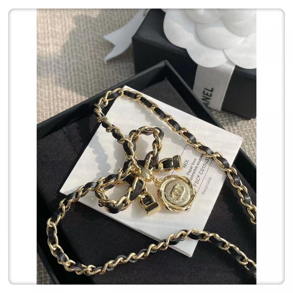 2022早秋 C家皮圓形吊蝴蝶結項鍊