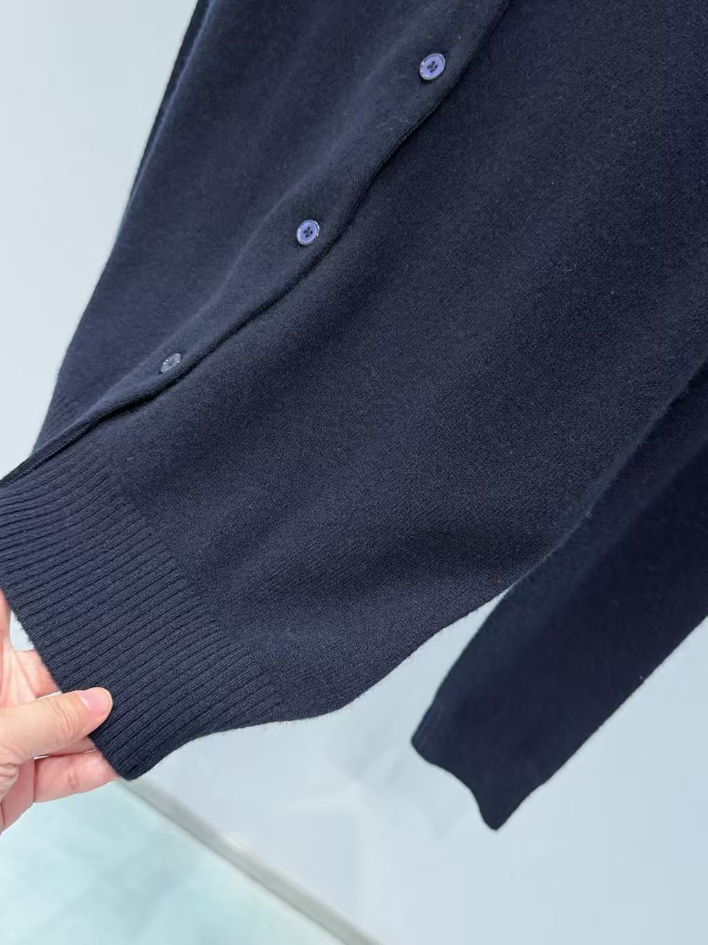 胸口點綴了經典的字母刺繡 Logo,搭配質感瑩潤的同色系貝母扣,在光線下閃爍著珍珠般的光澤,將品牌的少女心與高級質感拿捏得剛剛好。