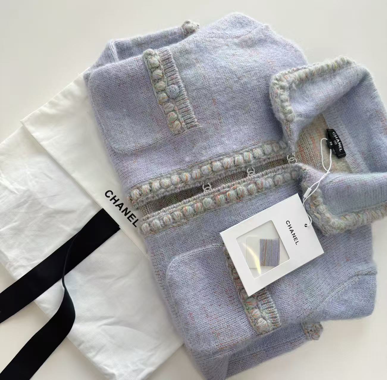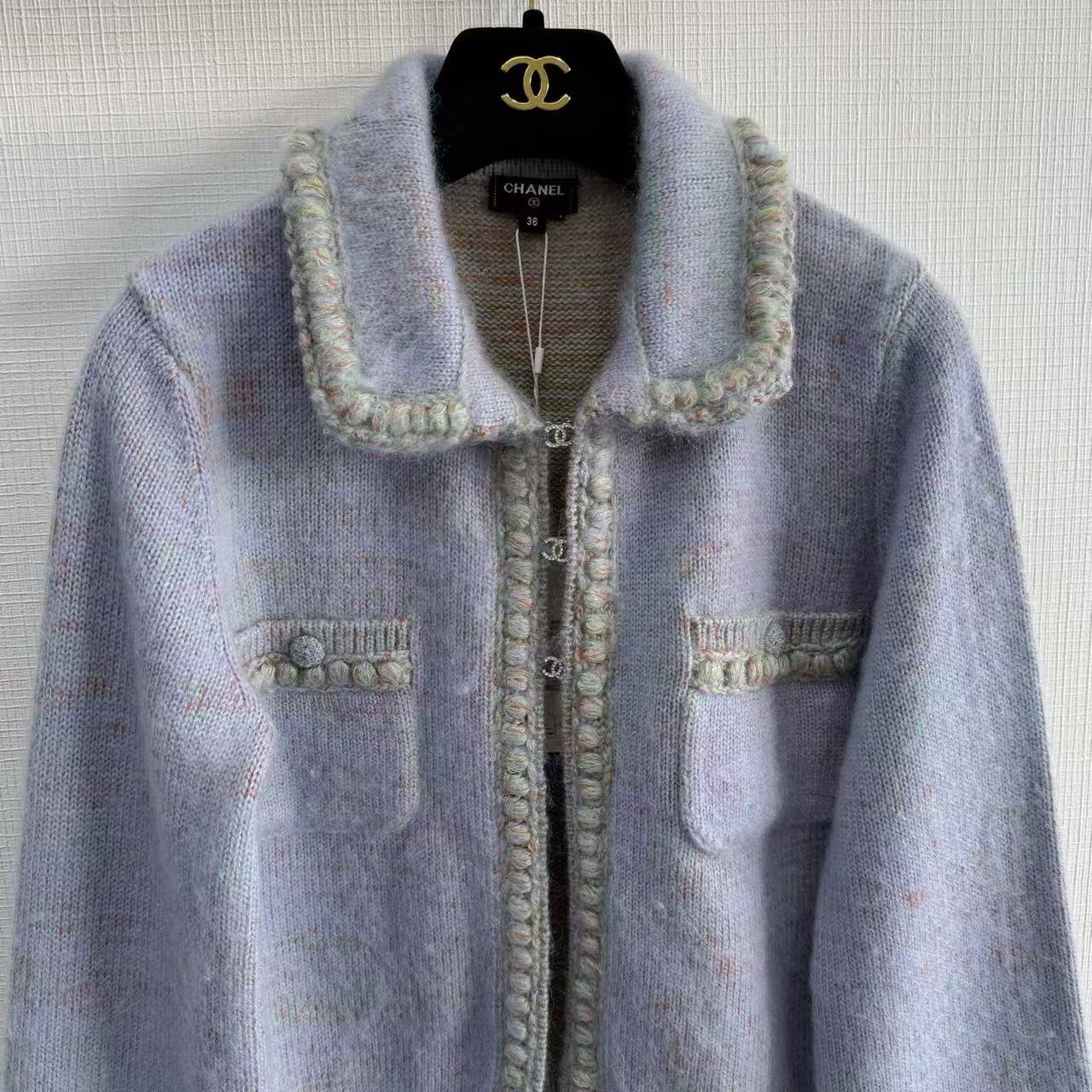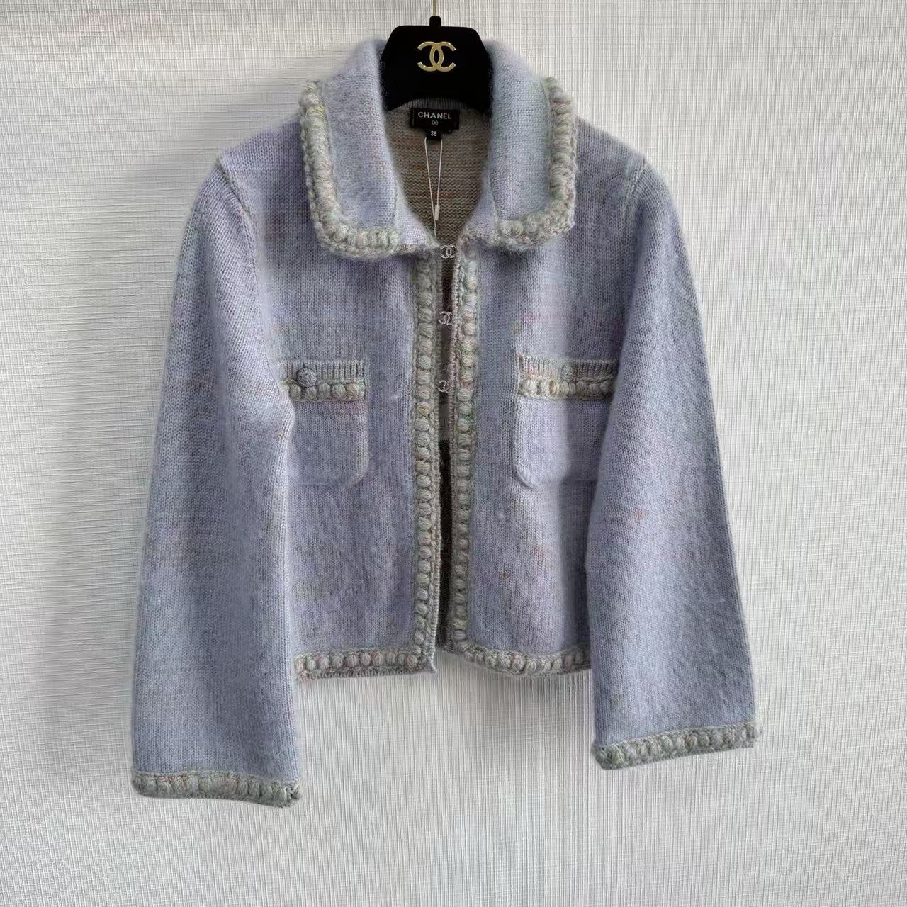這款開衫由 YB 開發、高版出品,拆解正品打造,還原度高達 98% 以上。標誌性的水鑽雙 C 勾扣一比一訂製,閃耀卻不浮誇;邊緣全採純手工點鑽包邊,每顆水鑽都像小星星般bling bling,放大看細節無可挑剔,滿滿專櫃級奢華感。翻領設計增添一絲正式感,搭配裙裝或牛仔褲都超有型。