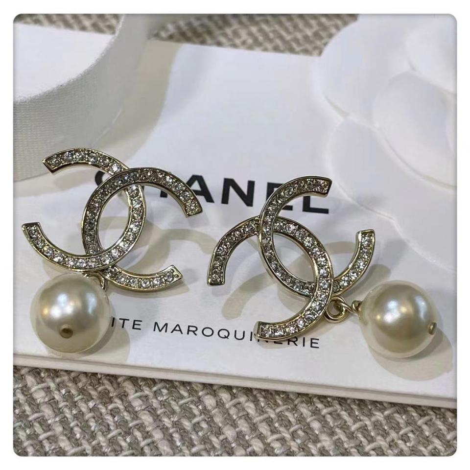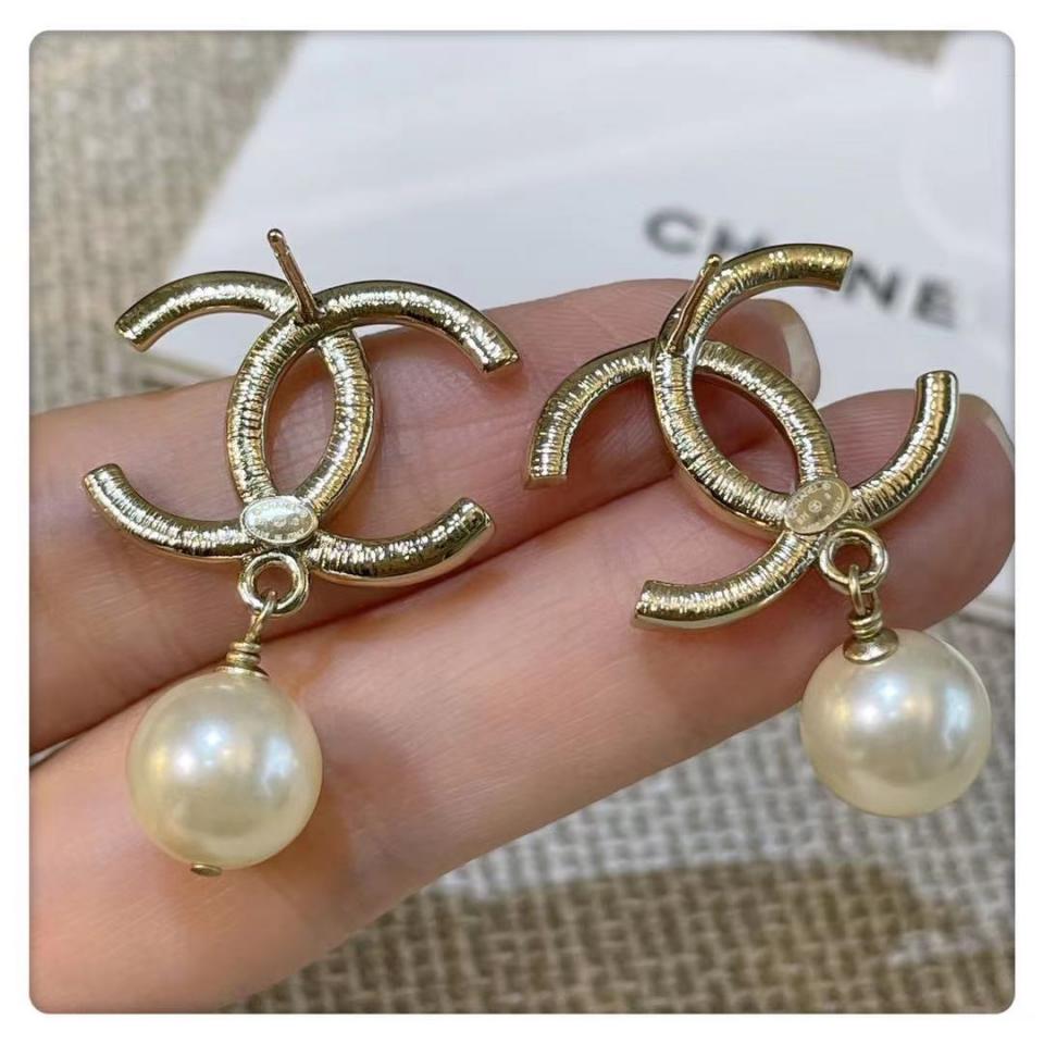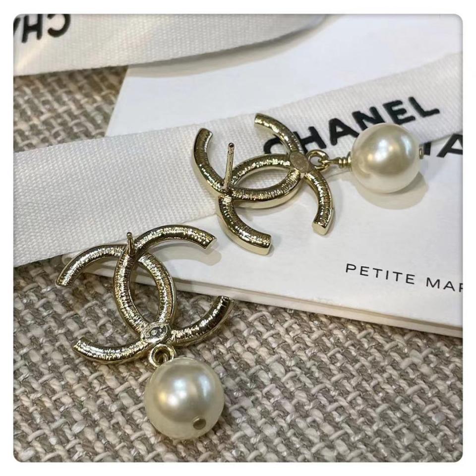 簡約雙C滿鑽設計,吊兩顆施華洛珍珠,已經成為每一季度必入的經典風格元素了,背面五金也是非常細膩的,都是純手工雕刻而成的拉絲紋路,側面邊緣是光面的,沒有拉絲紋路的!非常推薦