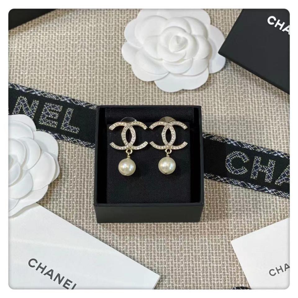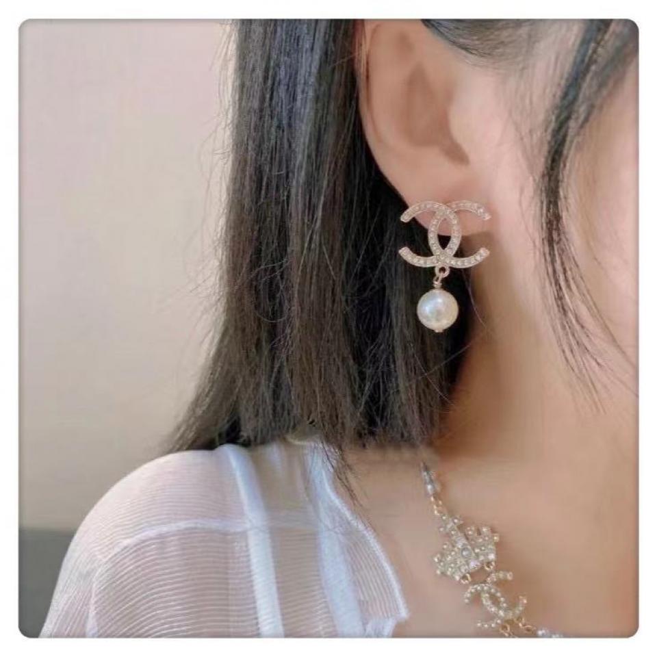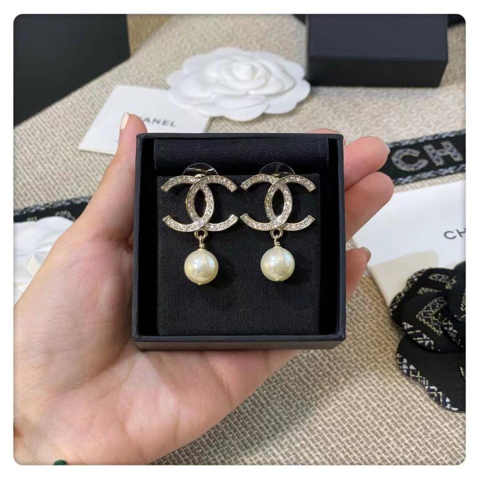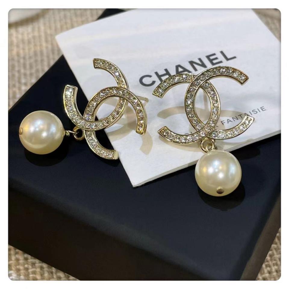 簡約雙C滿鑽設計,吊兩顆施華洛珍珠,已經成為每一季度必入的經典風格元素了,背面五金也是非常細膩的,都是純手工雕刻而成的拉絲紋路,側面邊緣是光面的,沒有拉絲紋路的!非常推薦