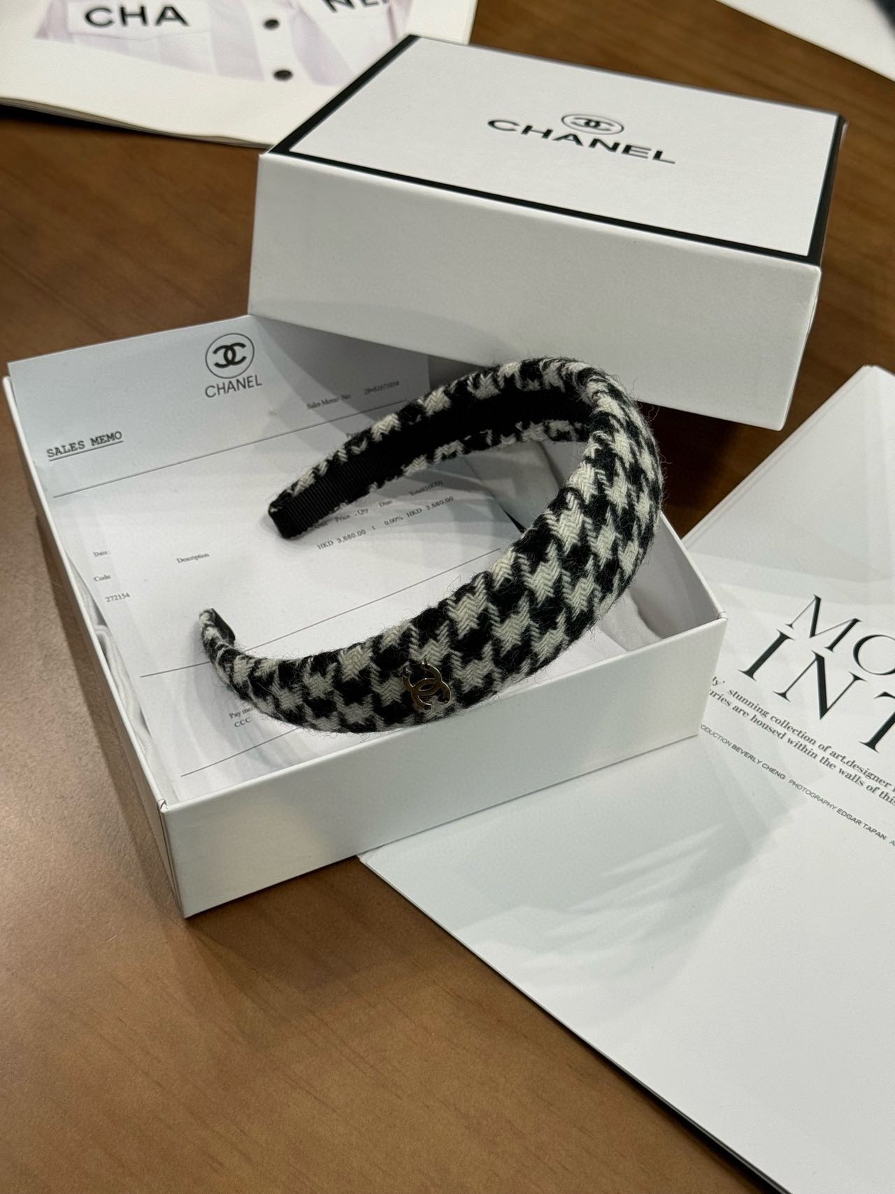 2024早秋新品 C家千鳥格髮箍 復古氣質 羊毛材質