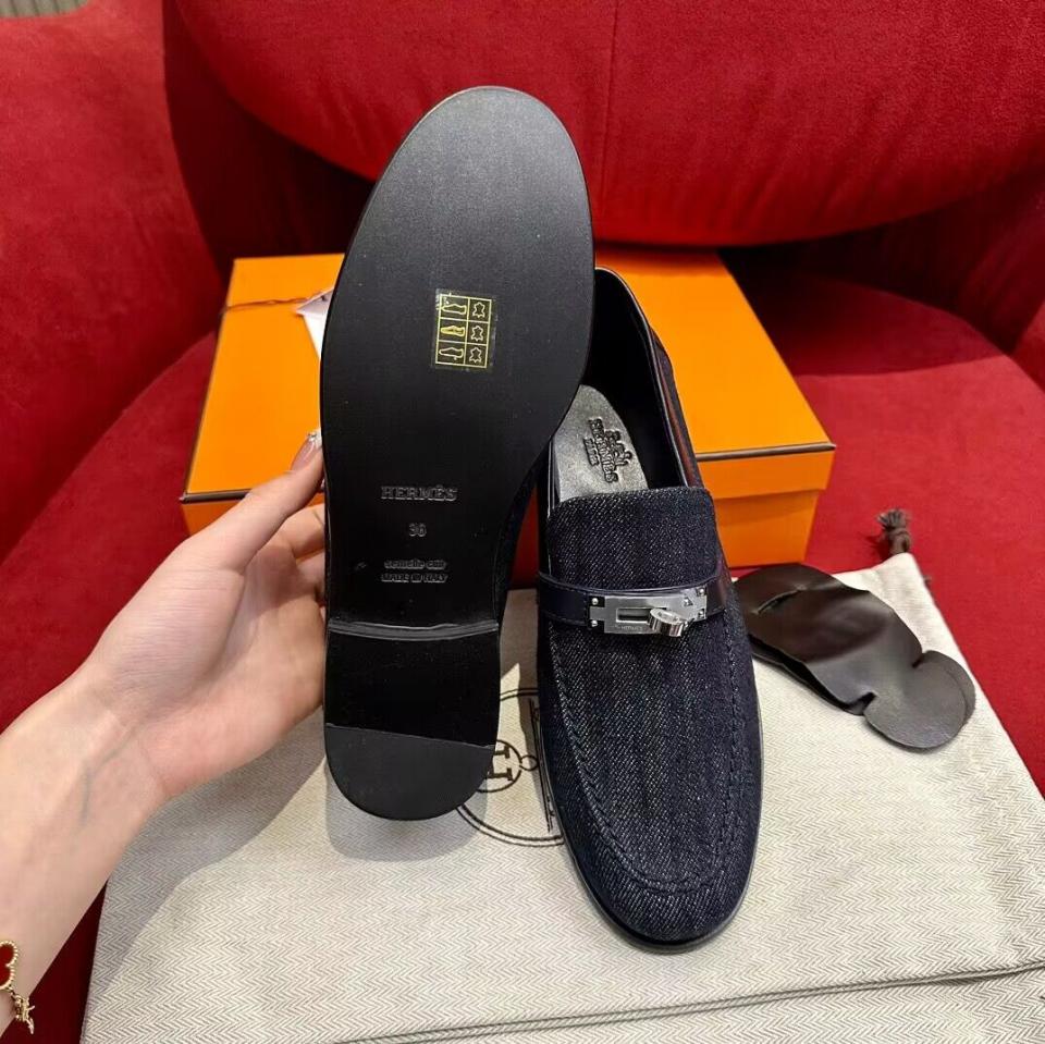2023春夏新品 H家牛仔深藍Kelly扣樂福鞋 上腳舒適 顯白顯年輕