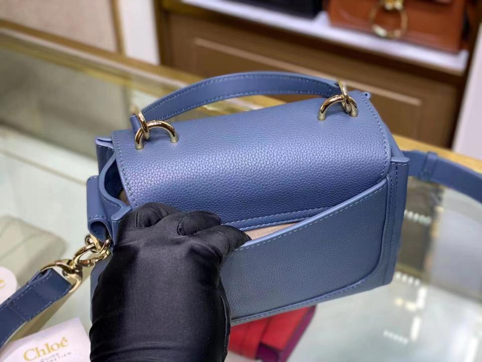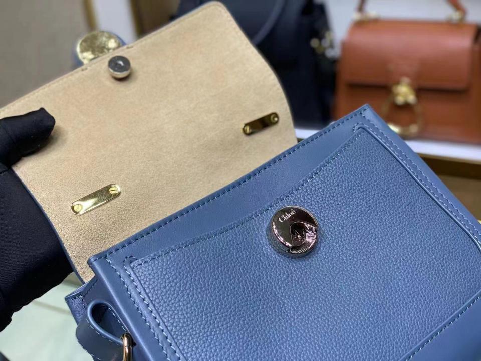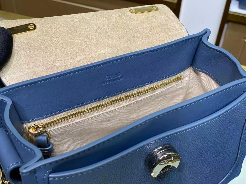 這款包採用光滑和柔軟顆粒小牛皮精製而成,和引人注目的正面環扣