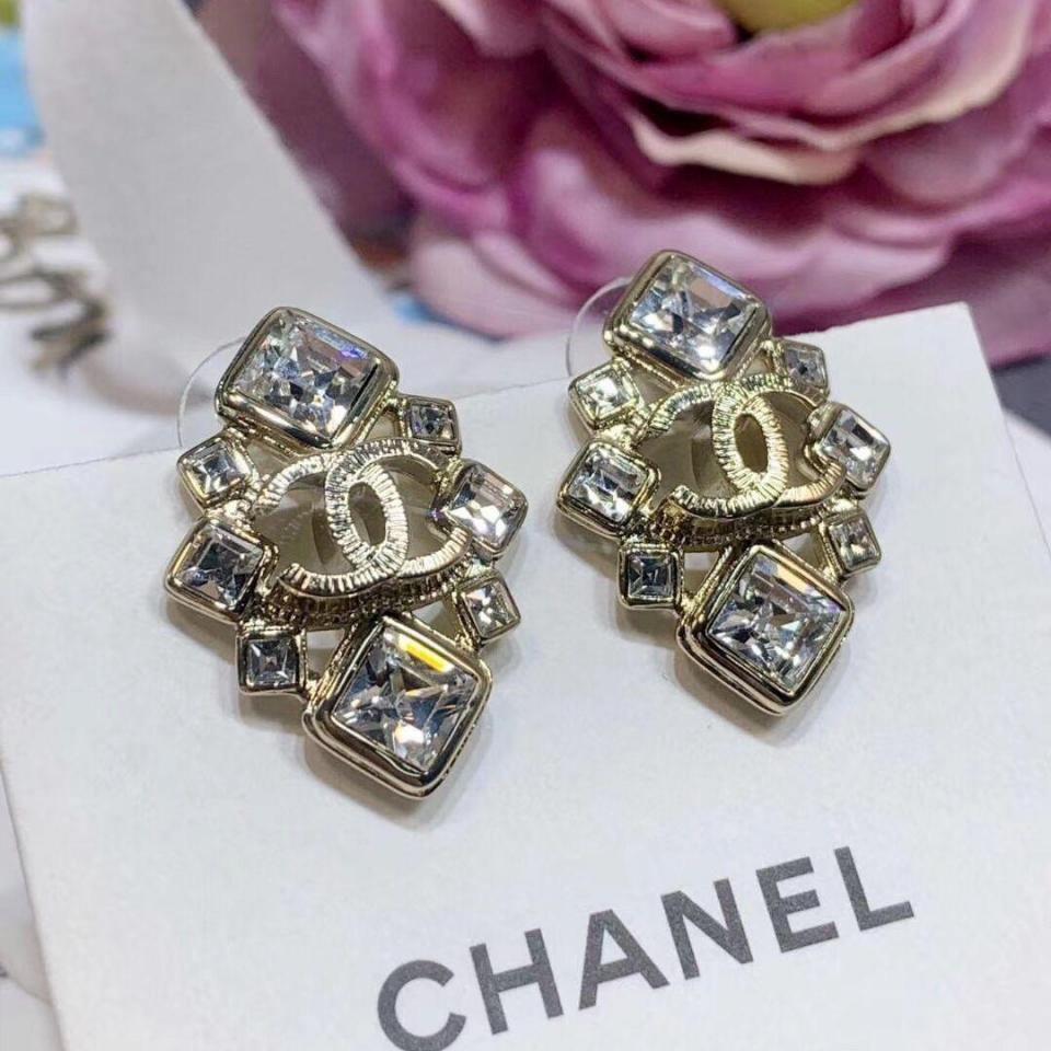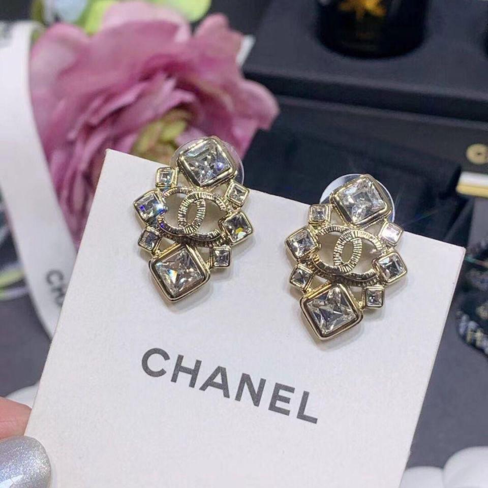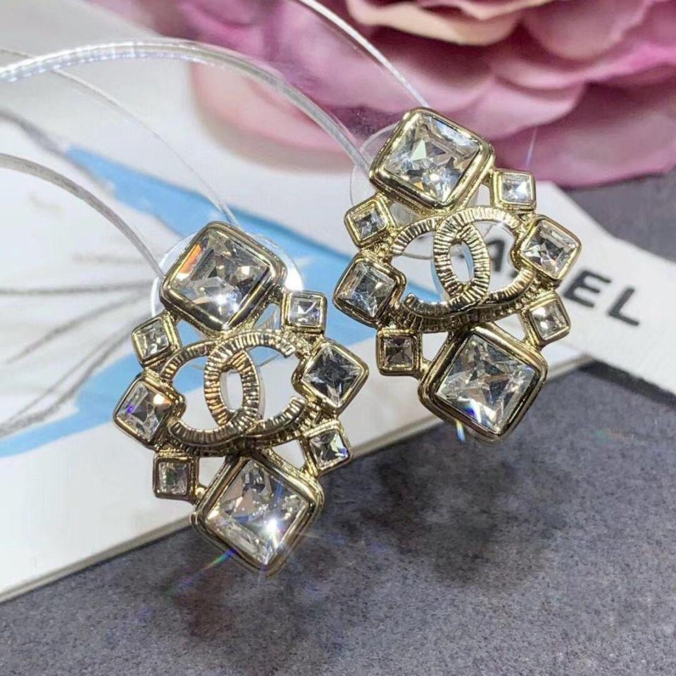 上耳簡直太好看了 顆顆菱型正方水晶鑽 閃閃發亮