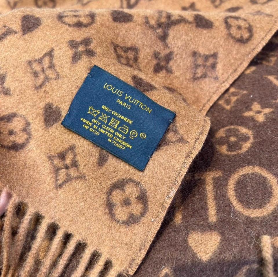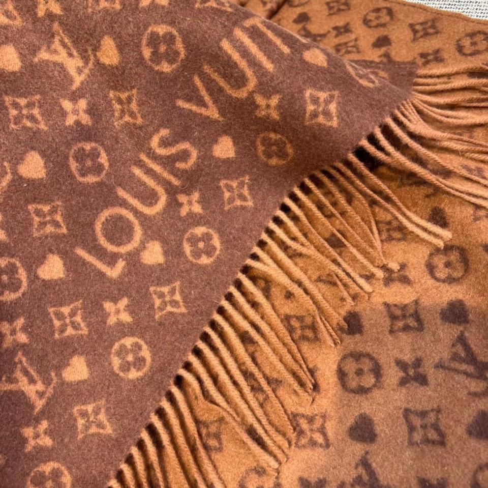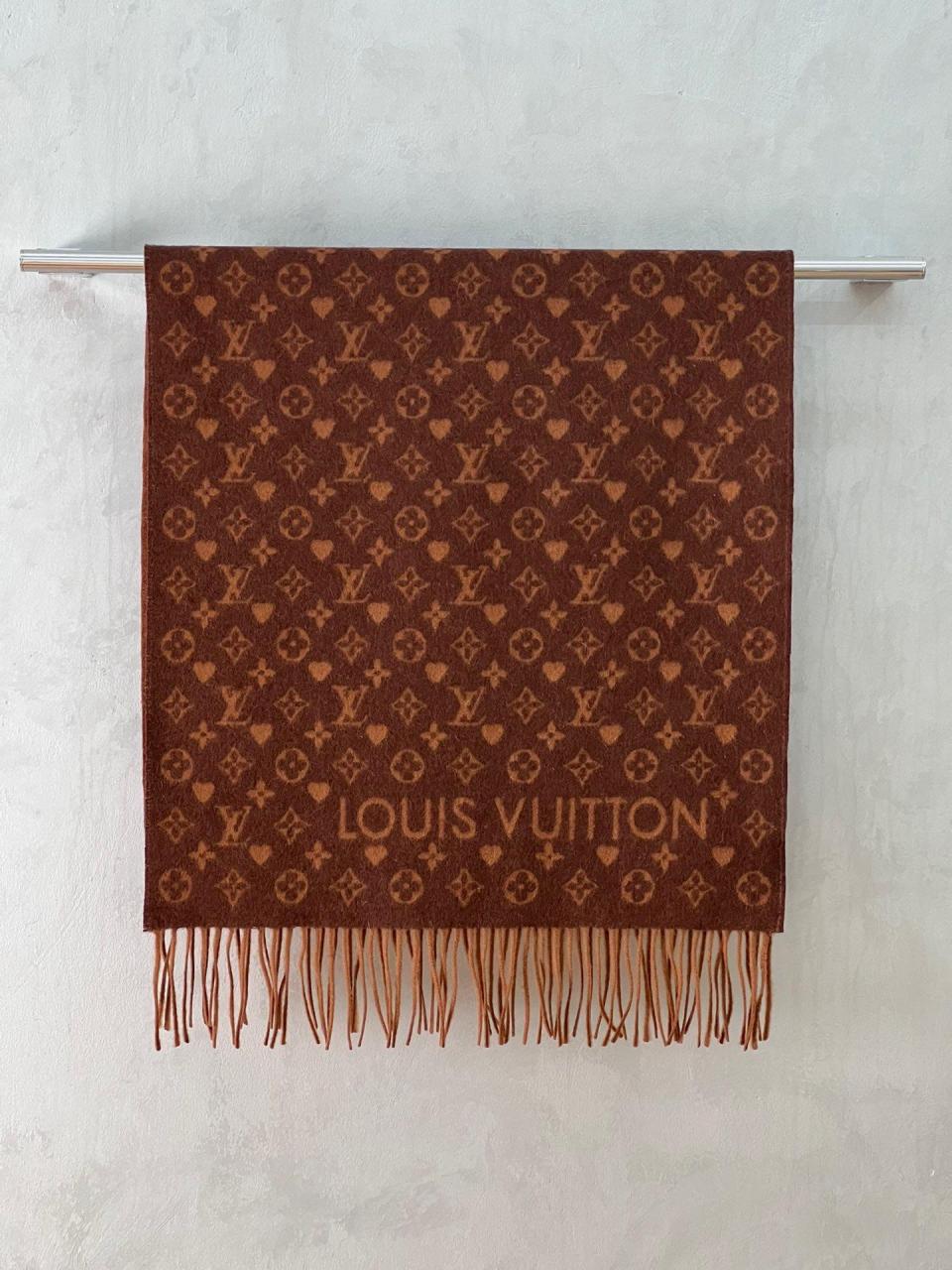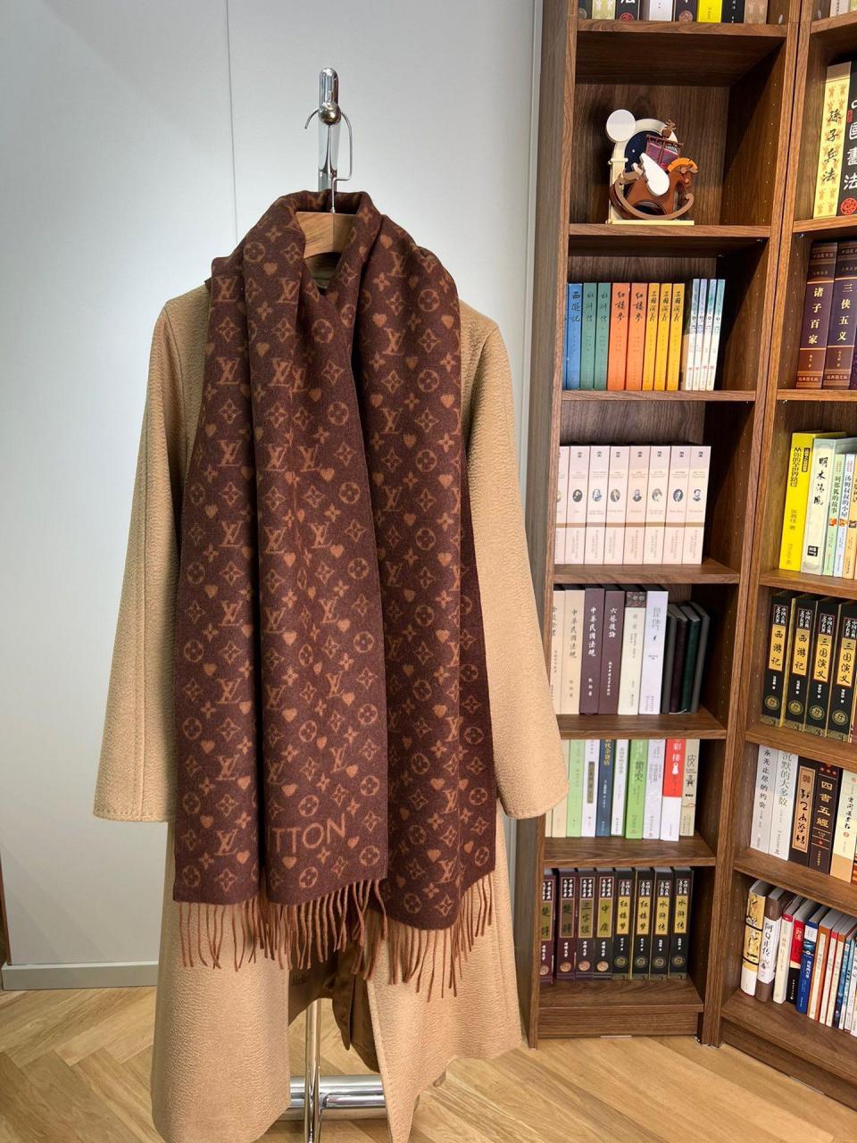 2022秋冬新品 L家滿版老花愛心圖案圍巾(咖啡色) 羊絨材質保暖舒適