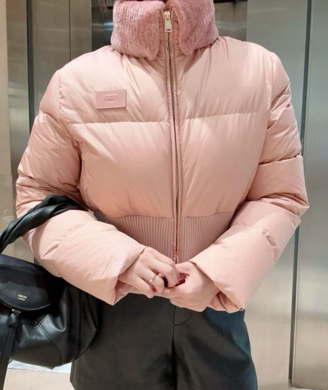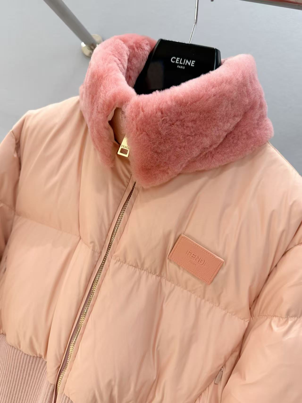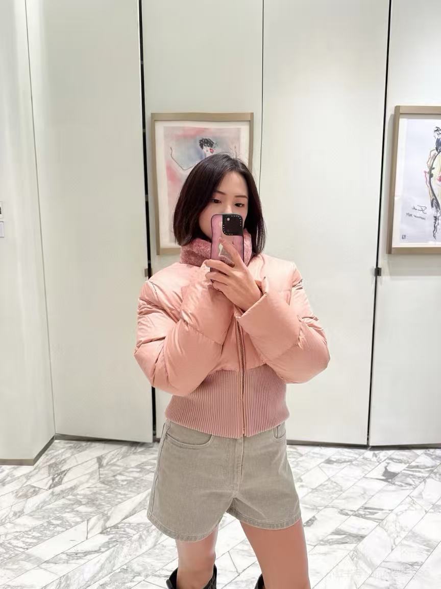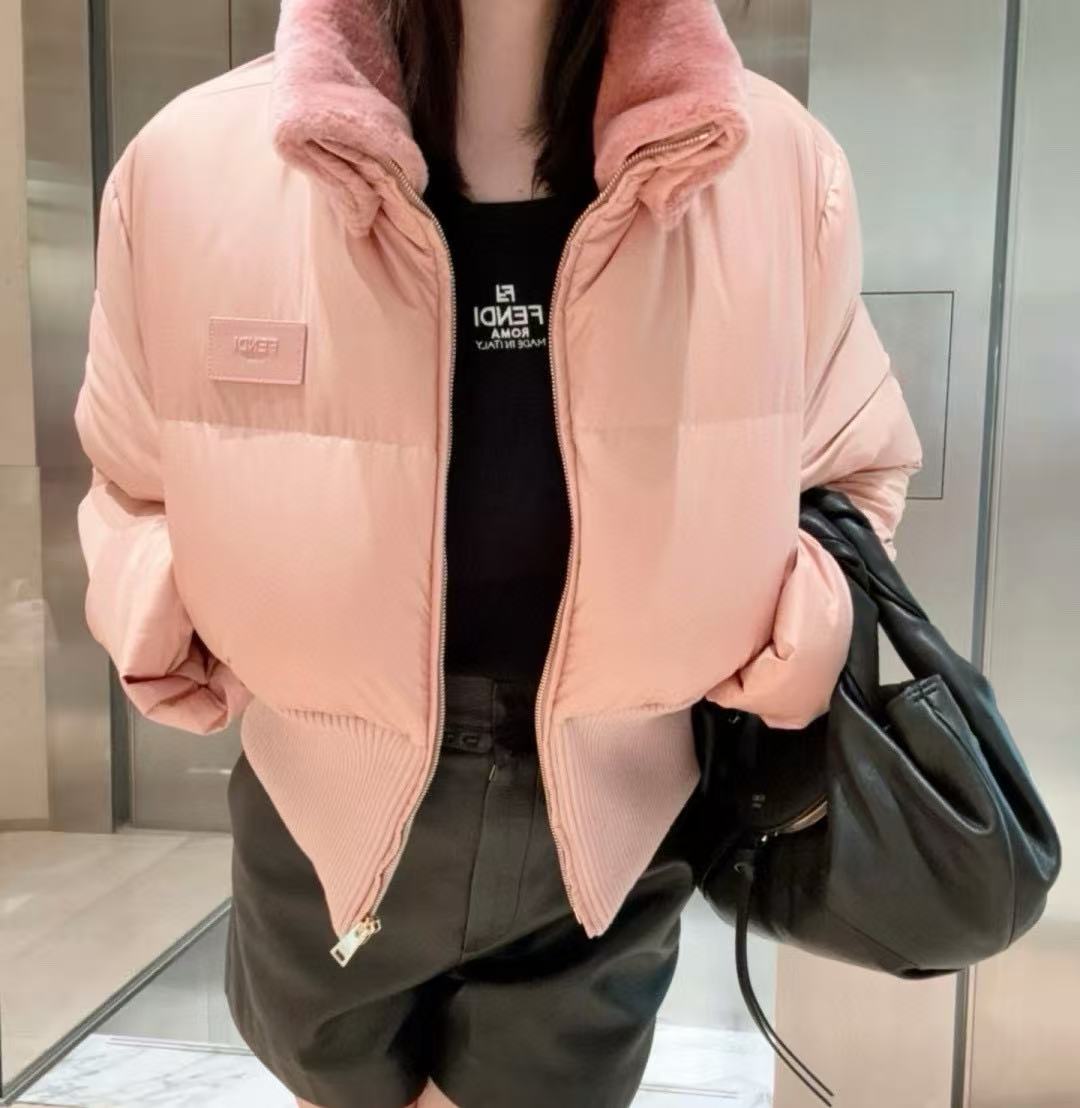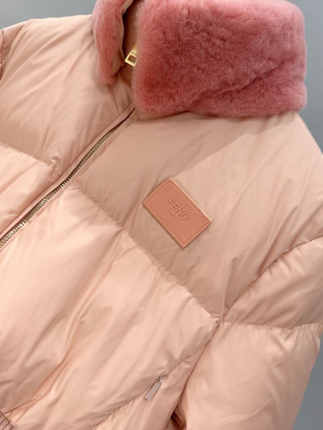 2025早秋   F家 粉色羊毛領滑雪羽絨外套