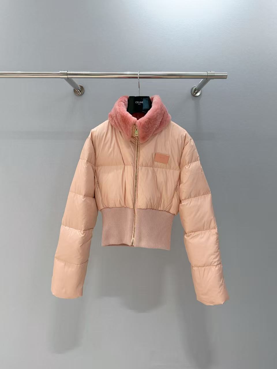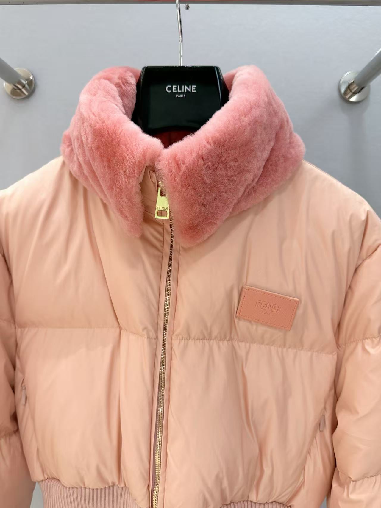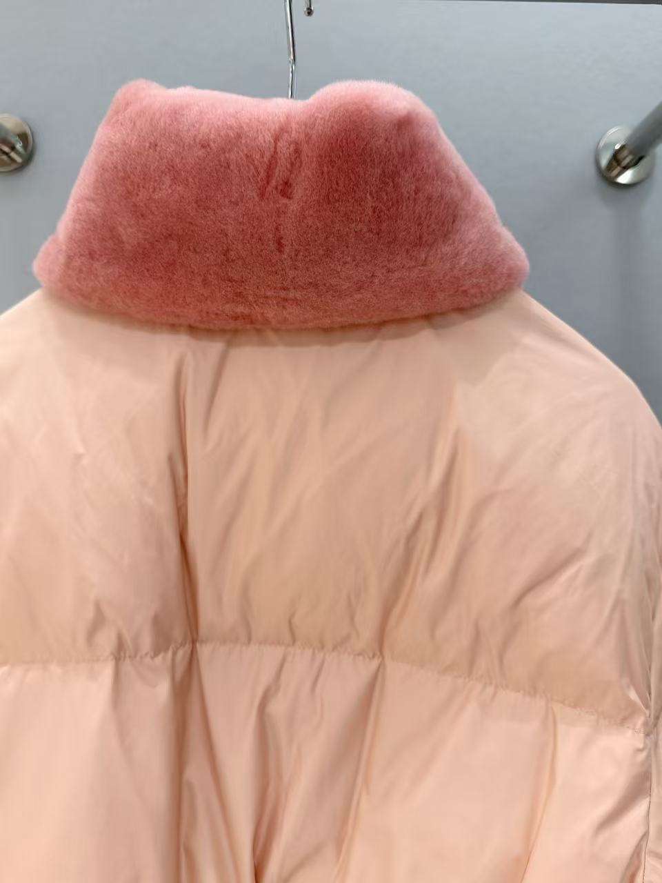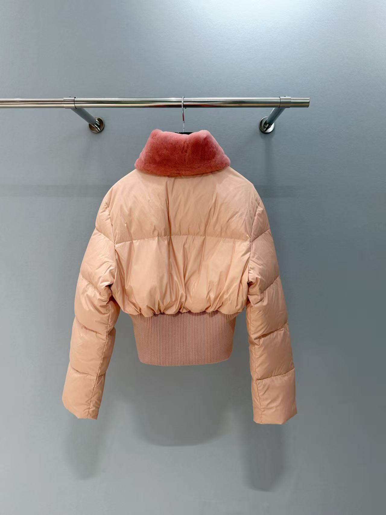 2025早秋   F家 粉色羊毛領滑雪羽絨外套