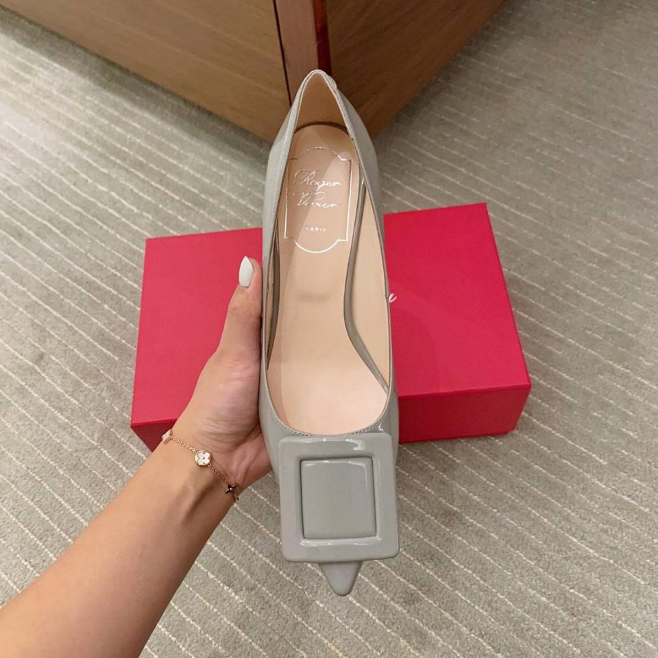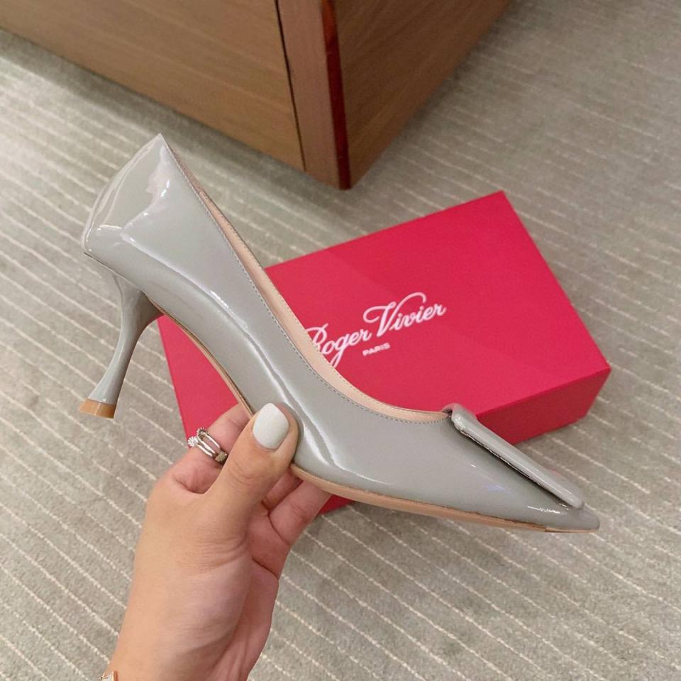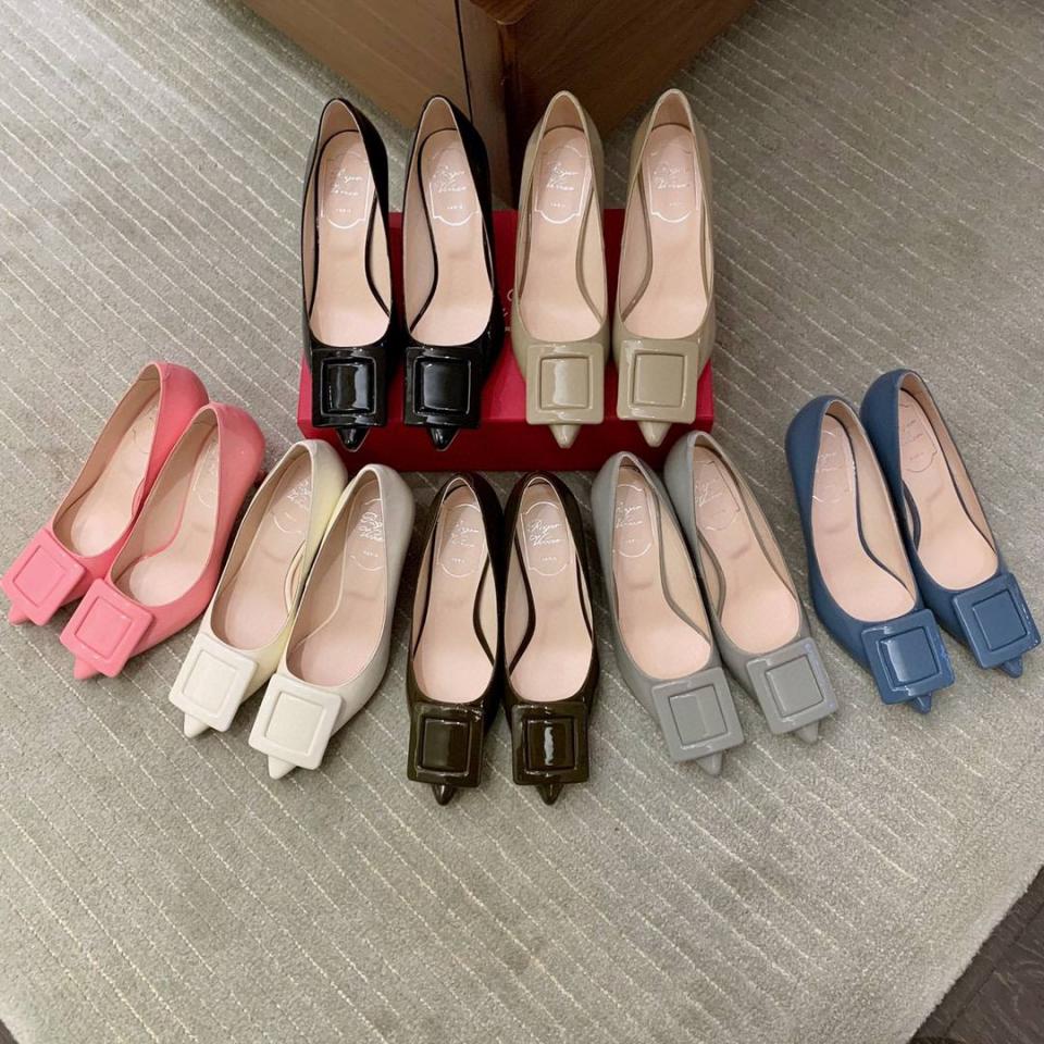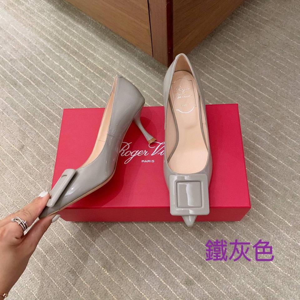 2023秋冬 R家方扣漆皮高跟鞋 同色扣設計