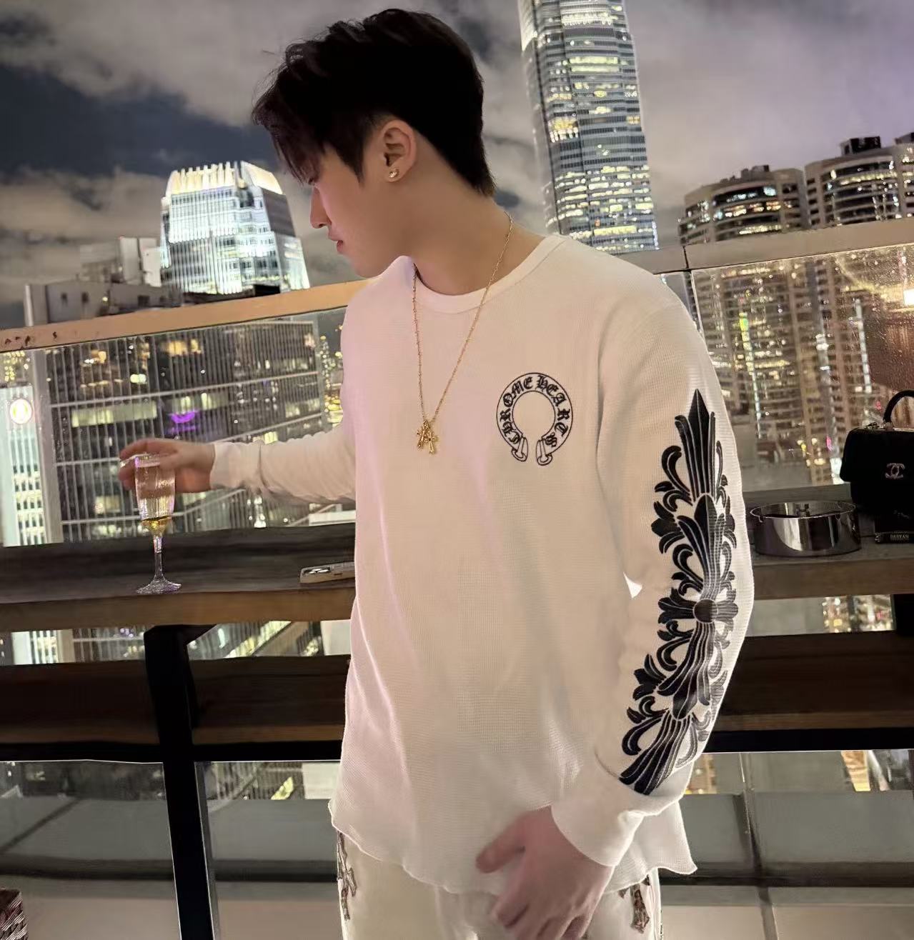 搭配進口機台印製的熱固油墨圖騰,讓標誌性的馬蹄與花卉呈現出厚實且具備手感的視覺張力。這款男女同款的設定,無論是單穿或是作為內搭露出雙臂花細節,都能瞬間展現出強烈的硬派時髦感。