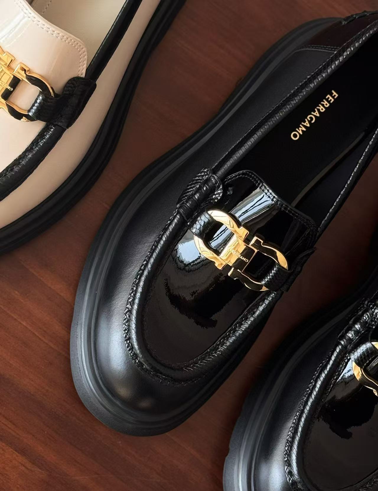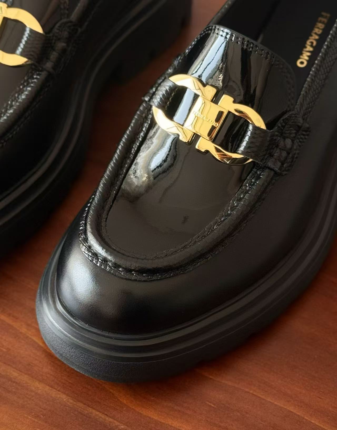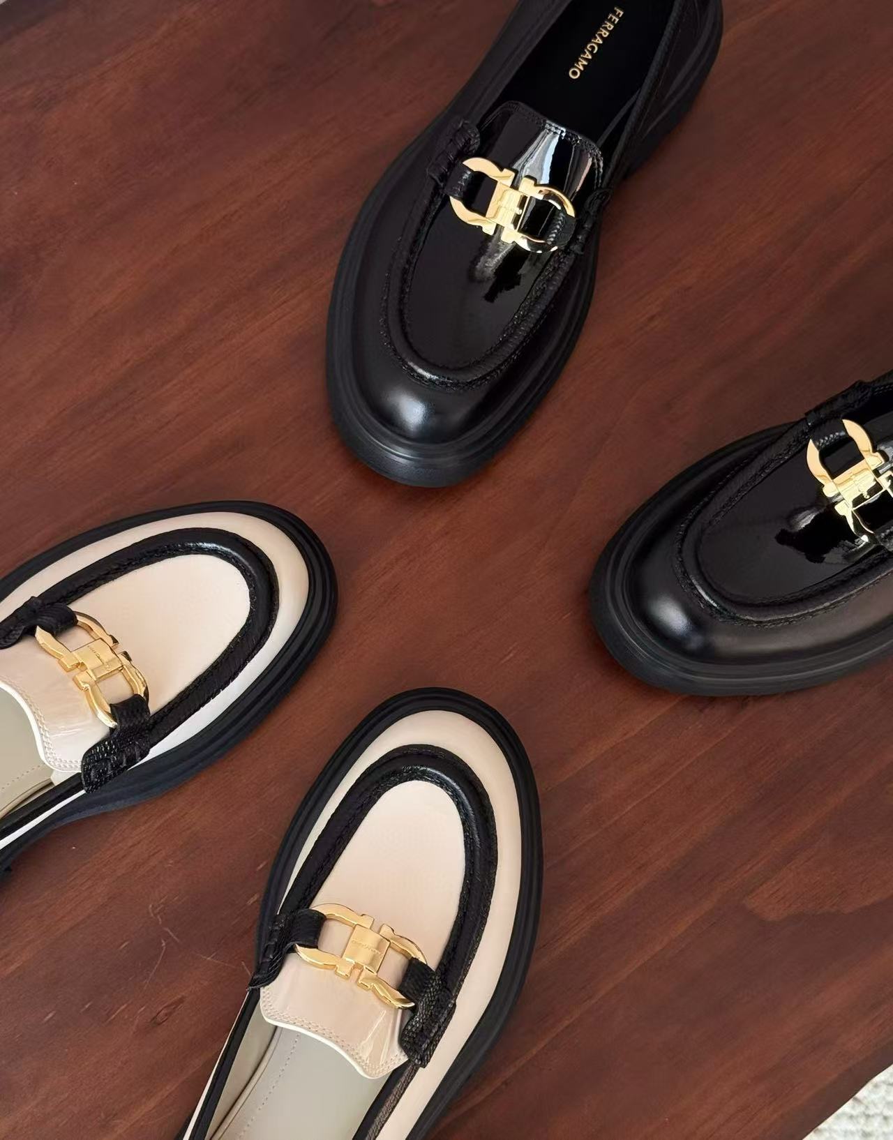 從皮革的選材到細節的打磨,每一道工序都充滿誠意。鞋面飾有經典「Gancini」金屬扣飾,低調卻極具辨識度,整體輪廓洗鍊俐落,搭配厚底設計,不僅顯高修飾比例,更賦予行走時的穩定感與舒適度,完美演繹品牌一貫的優雅底蘊。