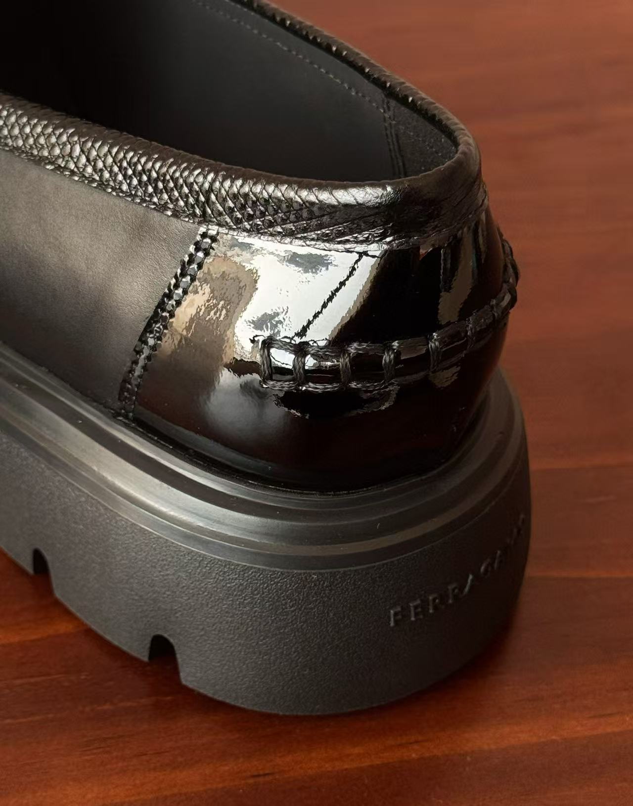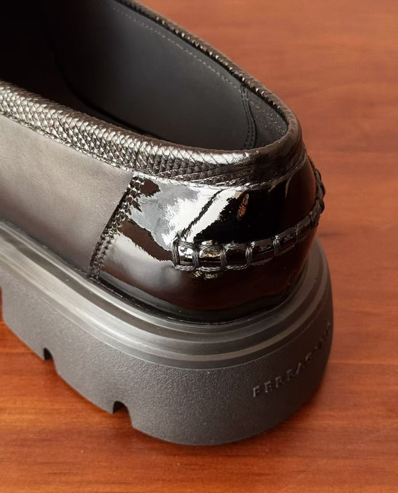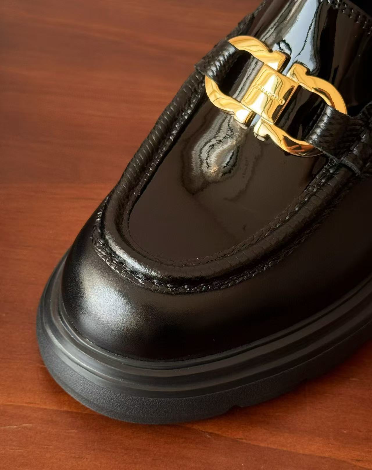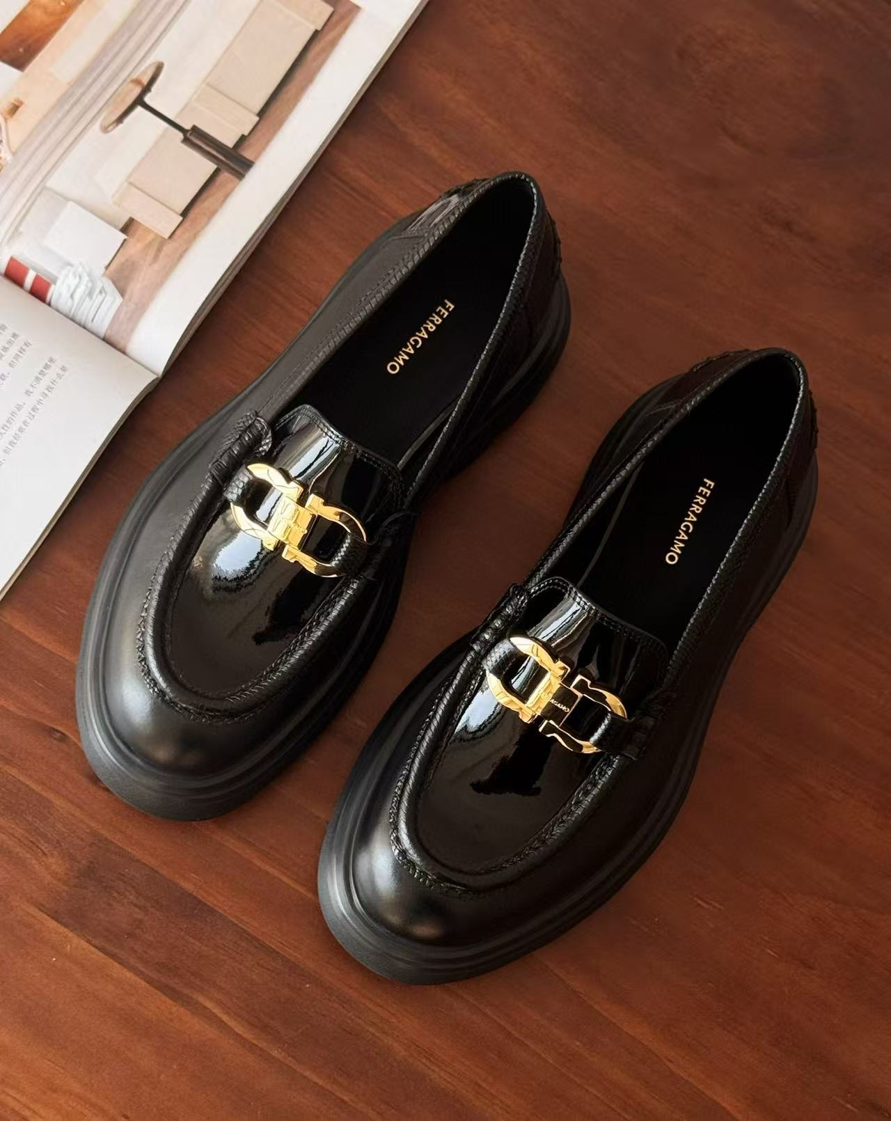 從皮革的選材到細節的打磨,每一道工序都充滿誠意。鞋面飾有經典「Gancini」金屬扣飾,低調卻極具辨識度,整體輪廓洗鍊俐落,搭配厚底設計,不僅顯高修飾比例,更賦予行走時的穩定感與舒適度,完美演繹品牌一貫的優雅底蘊。