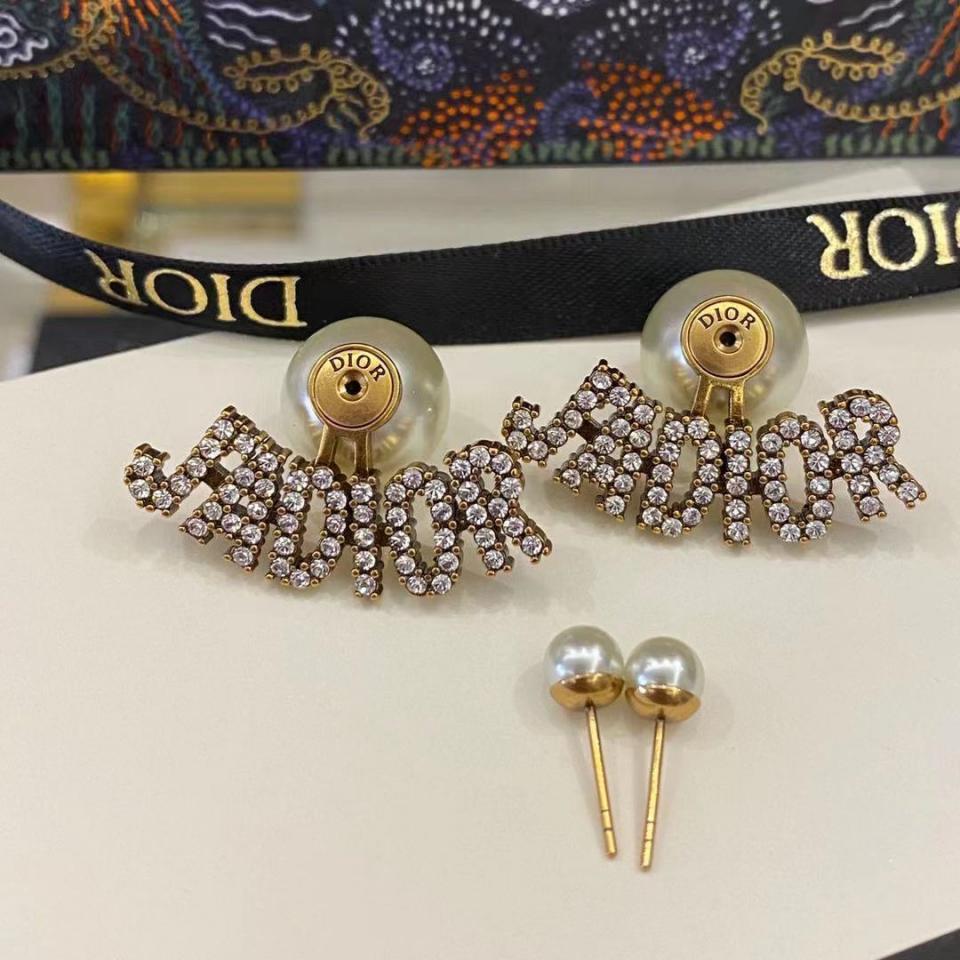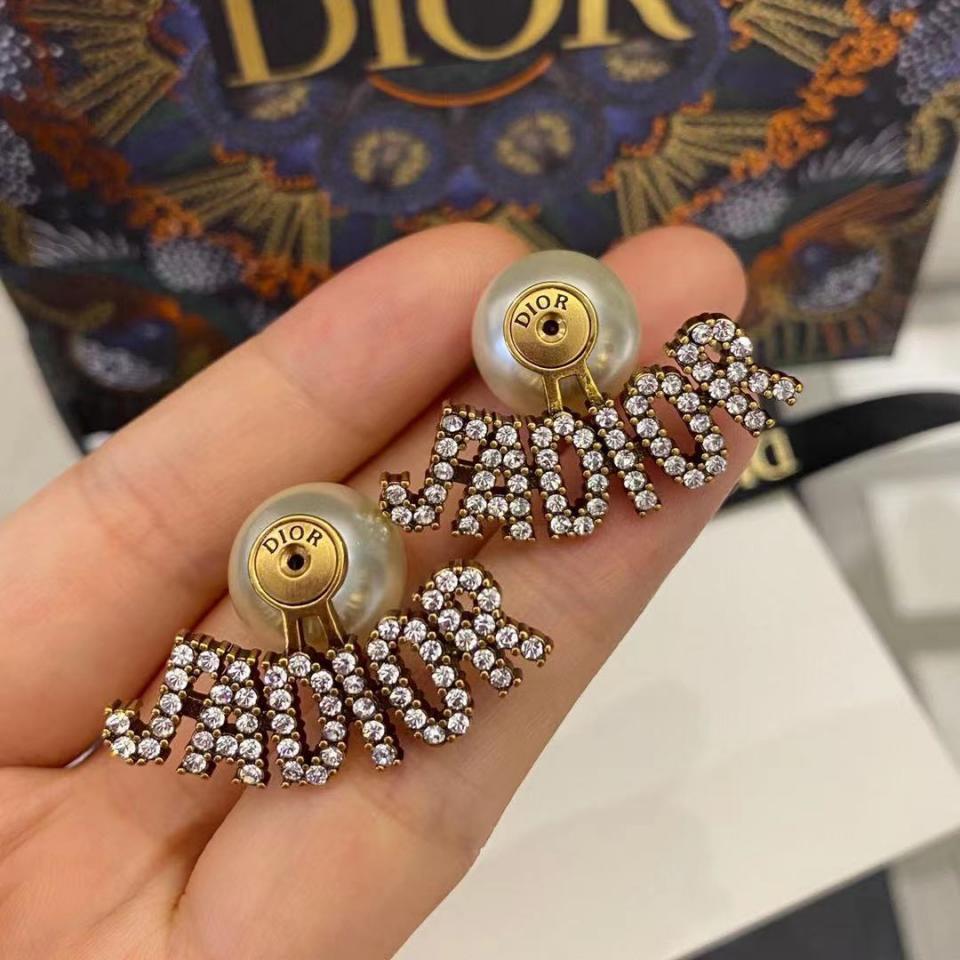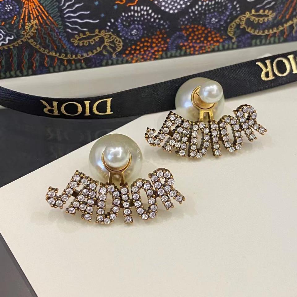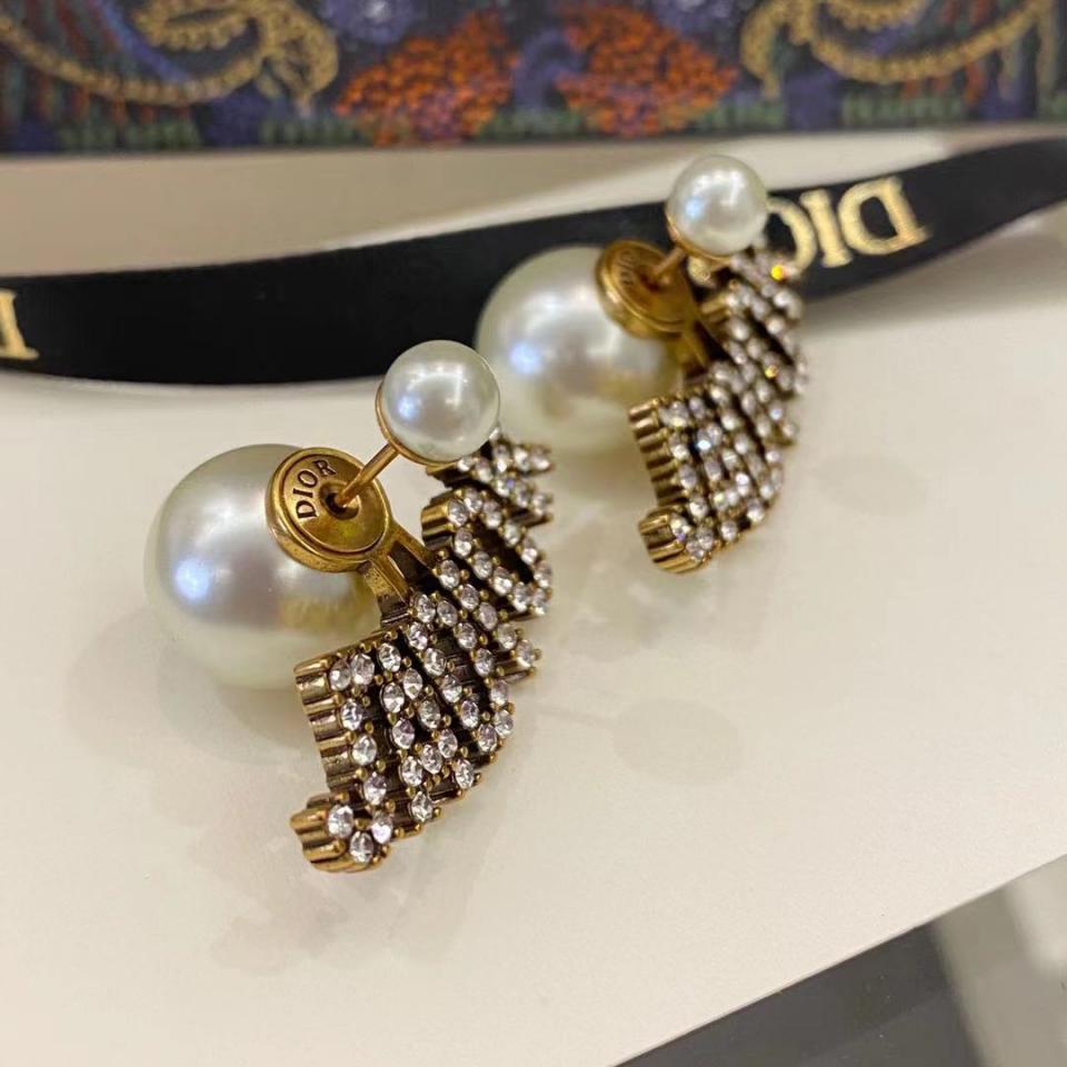 C家 珍珠銀色琺瑯滿鑽雙C耳環