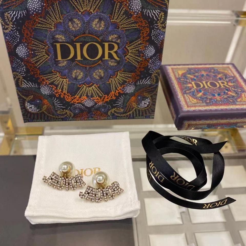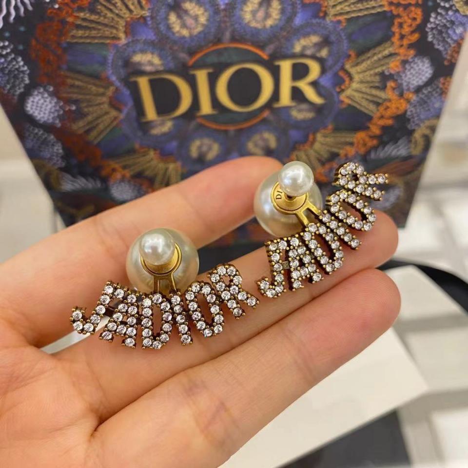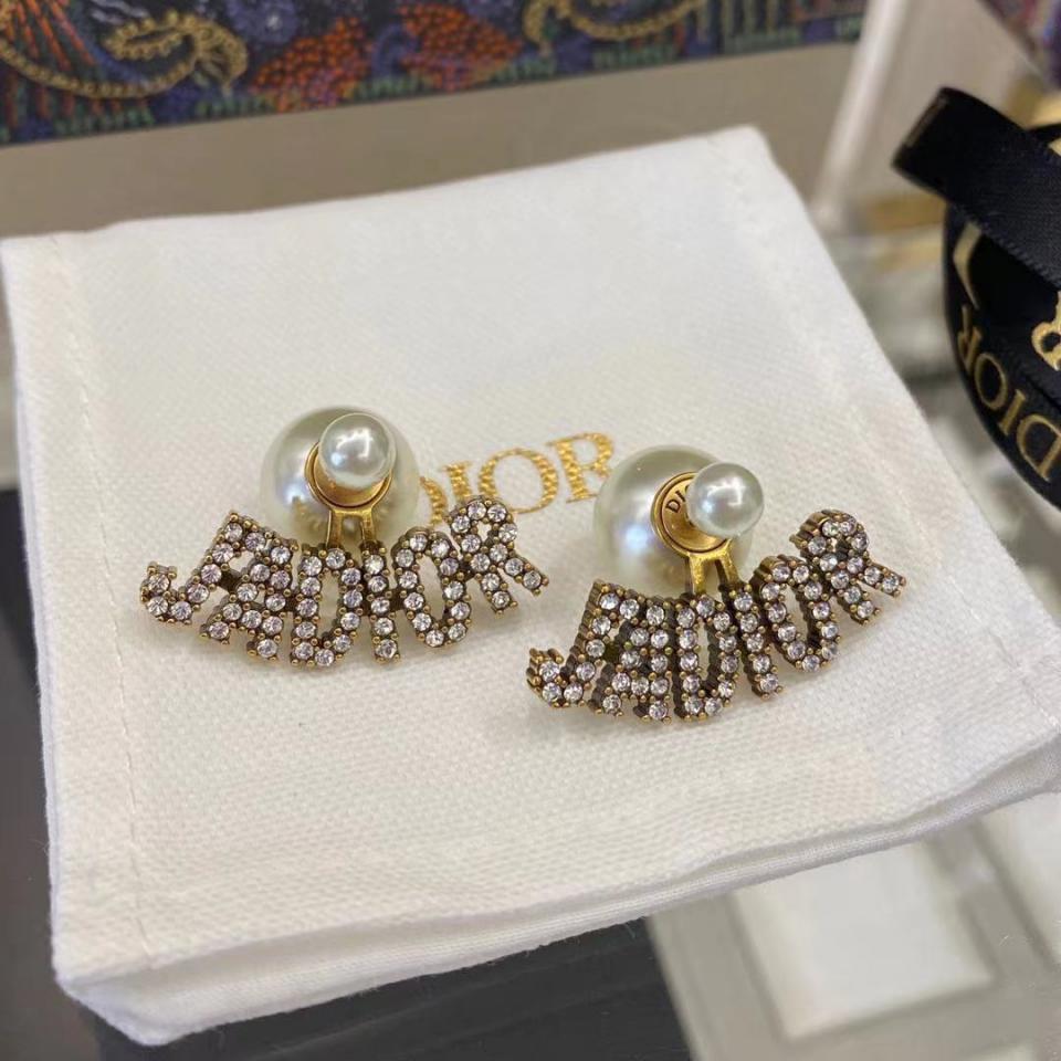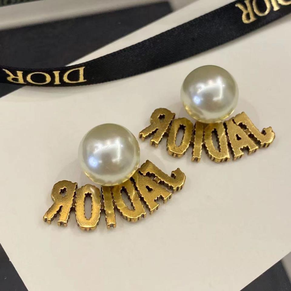 C家 珍珠銀色琺瑯滿鑽雙C耳環