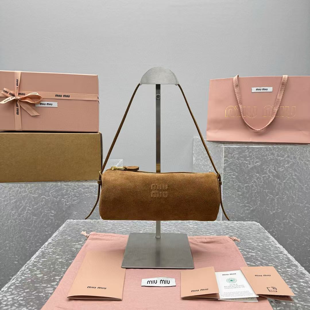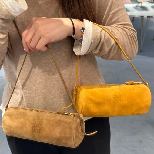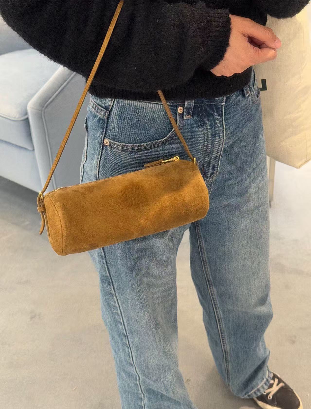 2025春夏新品 Miu家 磨砂皮小圓筆筒包