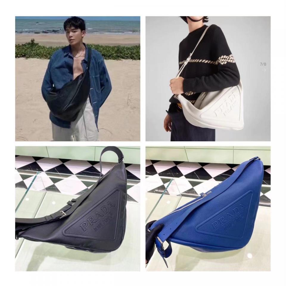 2022春夏新品 Triangle系列 三角形全皮斜挎包 男女同款 上身帥氣