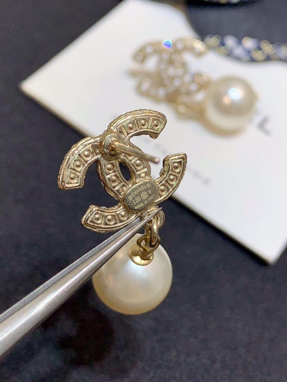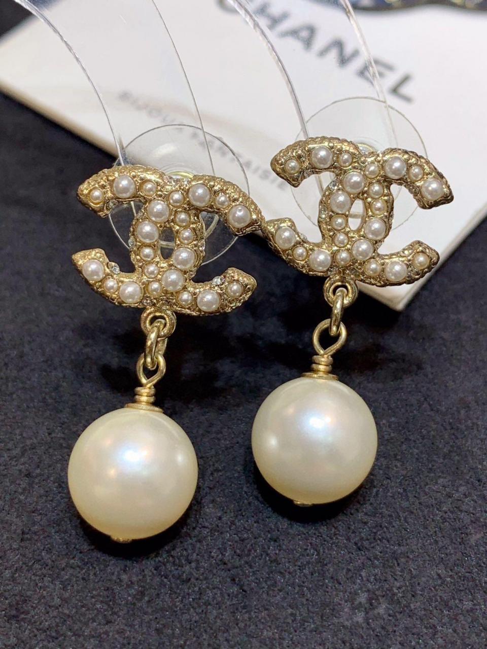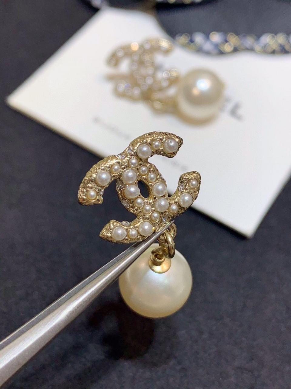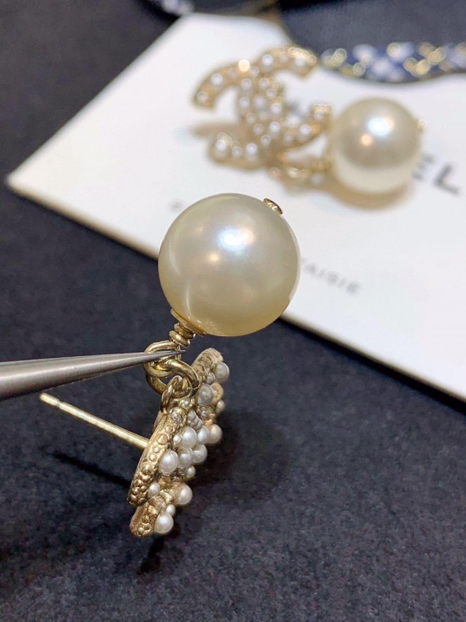 經典的吊珠耳釘 簡約雙C滿鑽設計