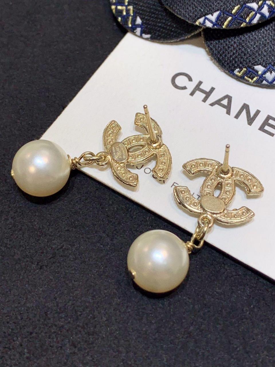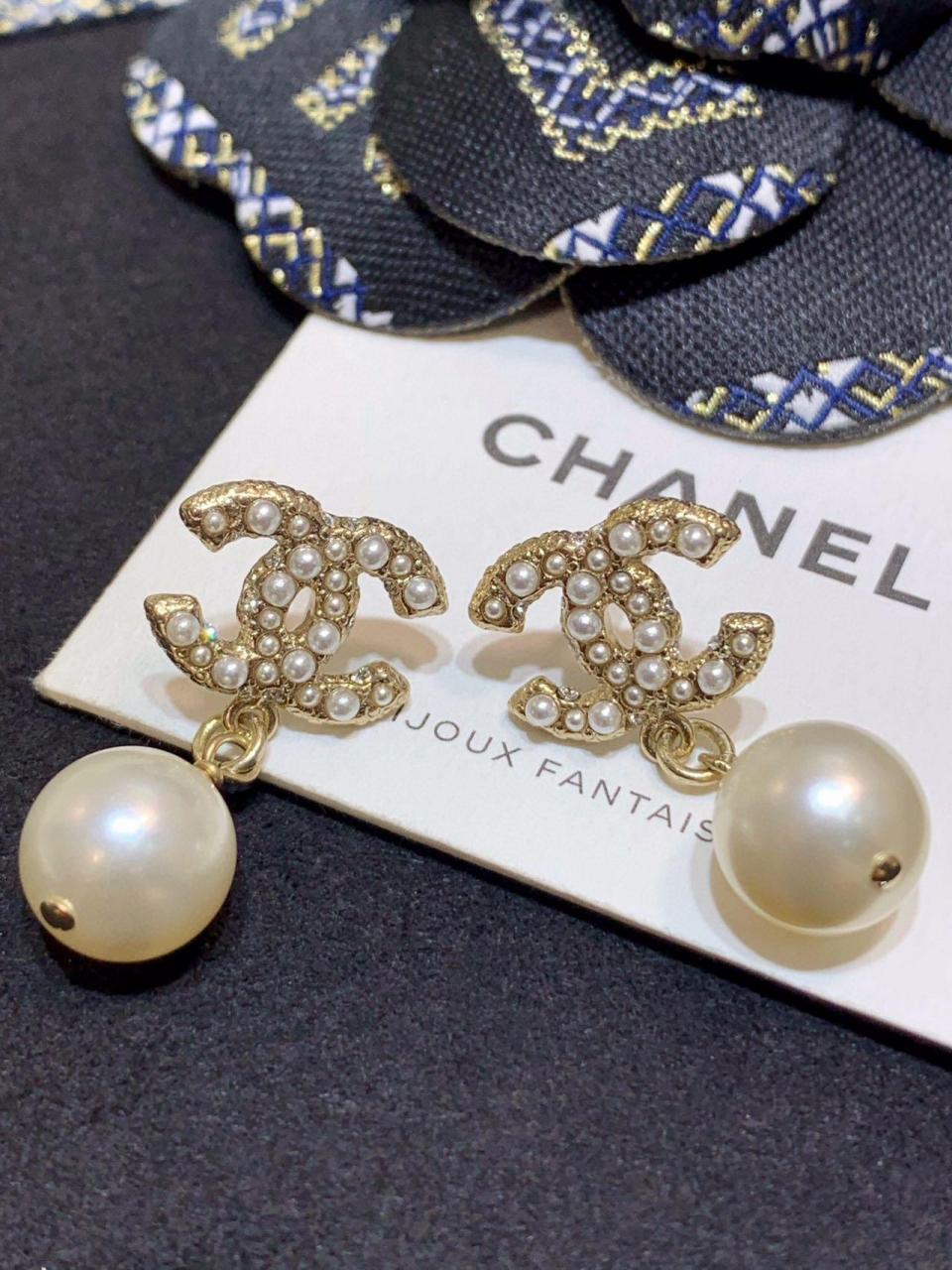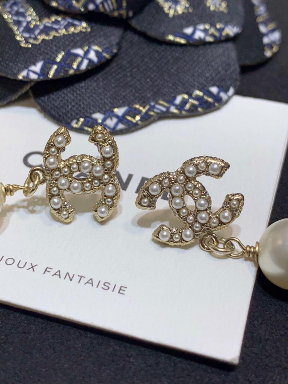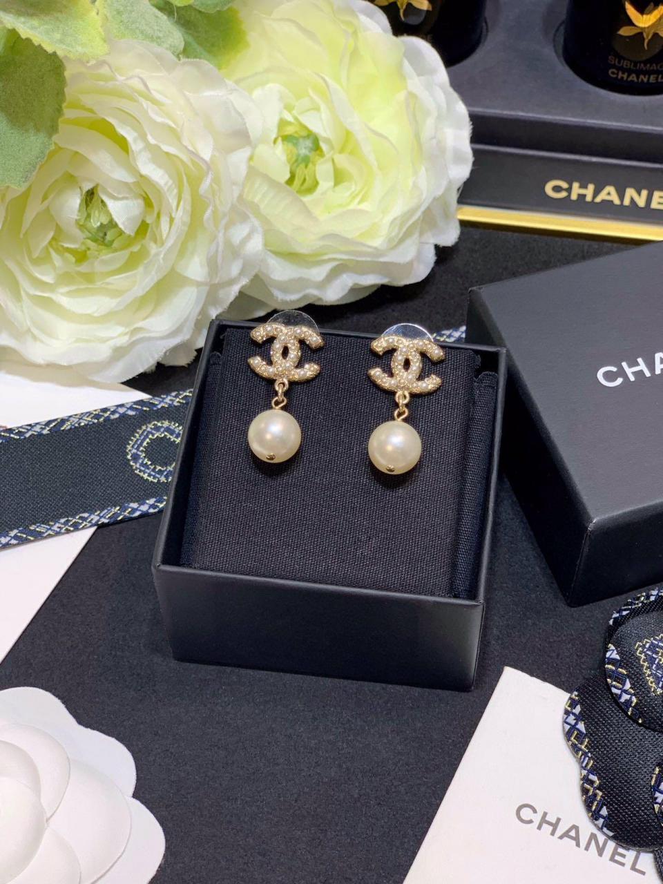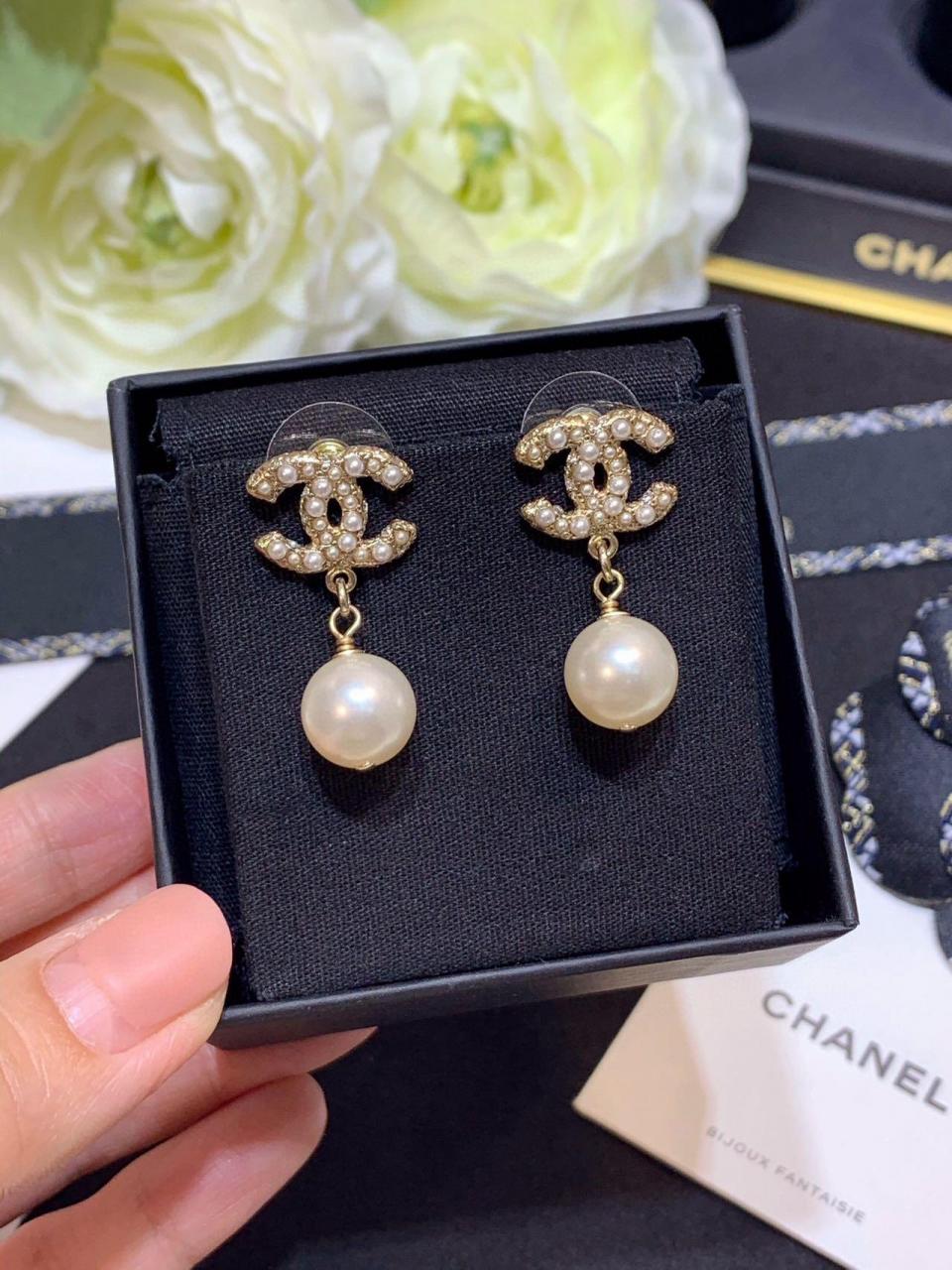 經典的吊珠耳釘 簡約雙C滿鑽設計
