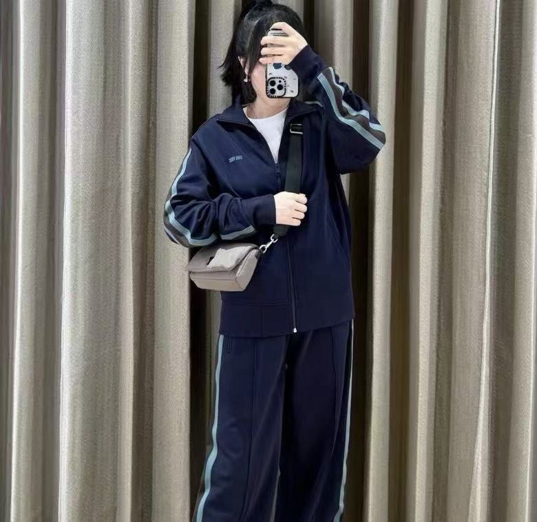 設計核心聚焦於貫穿袖側與褲側的撞色條紋拼接,透過強烈的視覺線條延伸,不僅拉長了身型比例,更賦予了套裝一種動態的流暢感。這不僅是一套運動服,更是將「鬆弛感(Effortless)」與「視覺張力」完美結合的秋冬座標。