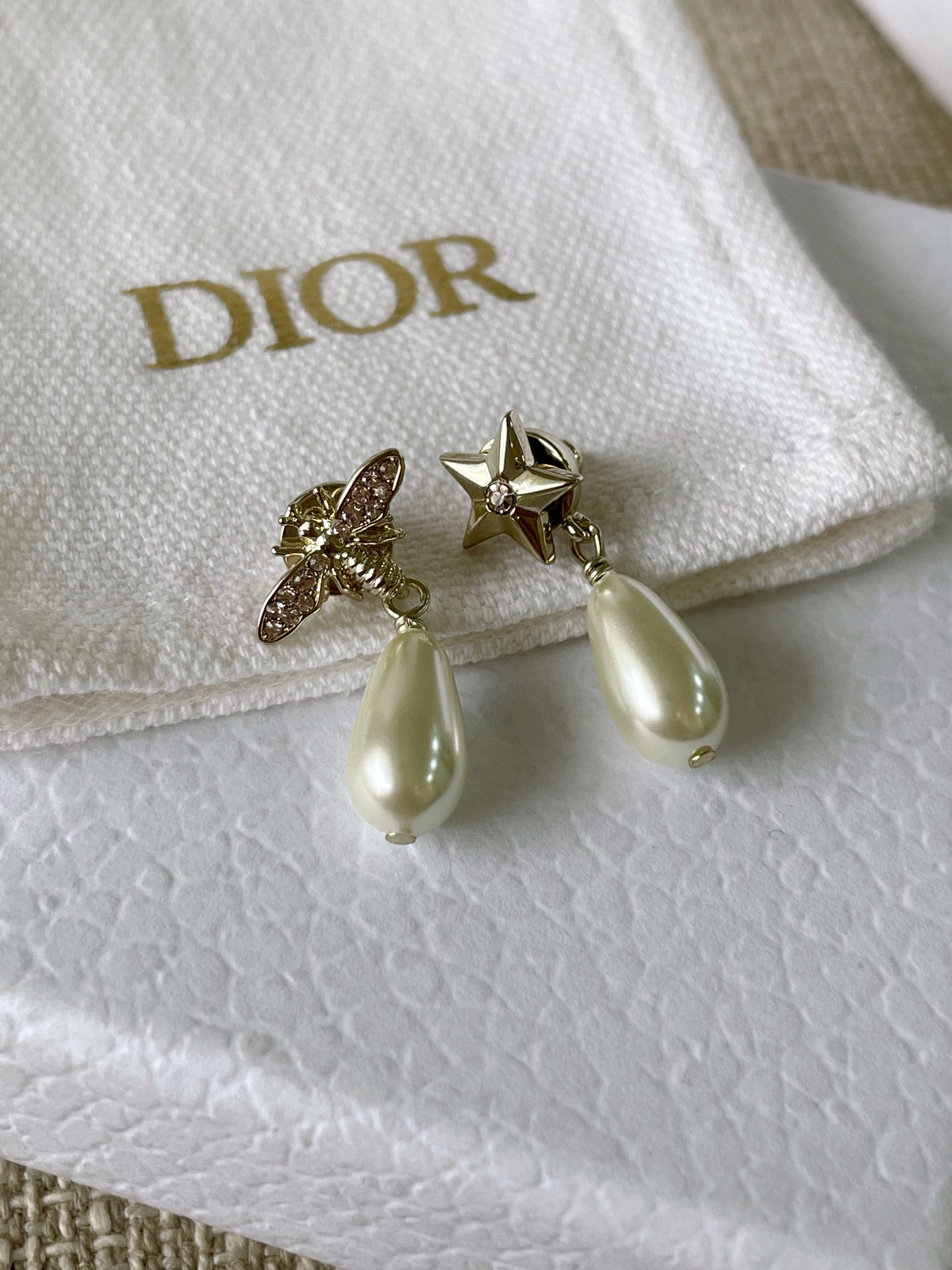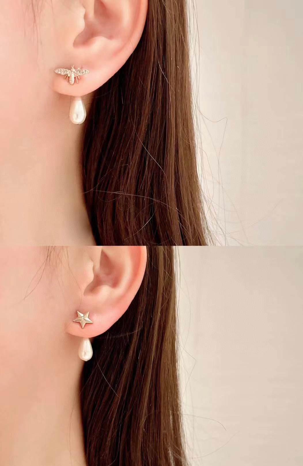 D家星蜂水滴耳釘是近期超夯的小眾氣質款,採用不對稱設計,一邊是蜜蜂、一邊是星星,點綴著粉嫩施華洛鑽,搭配水滴珍珠,溫柔中多了點俏皮少女感。