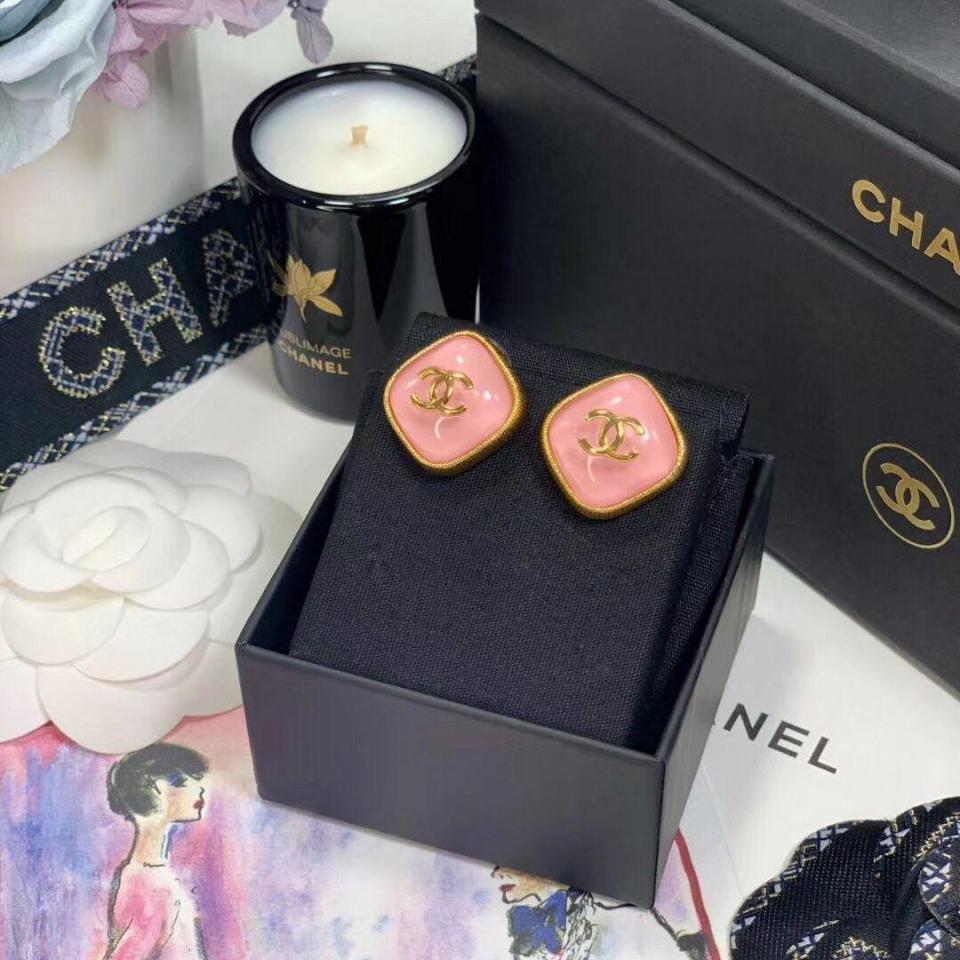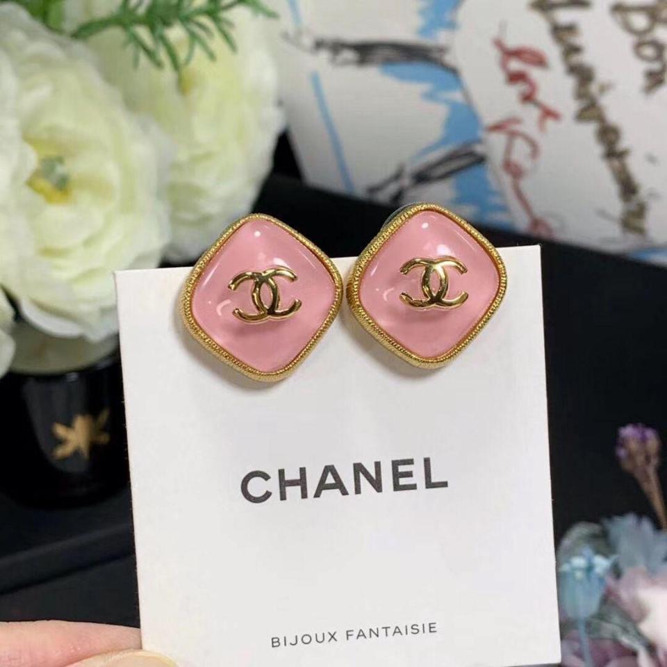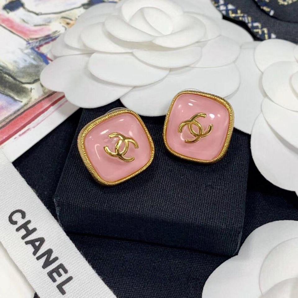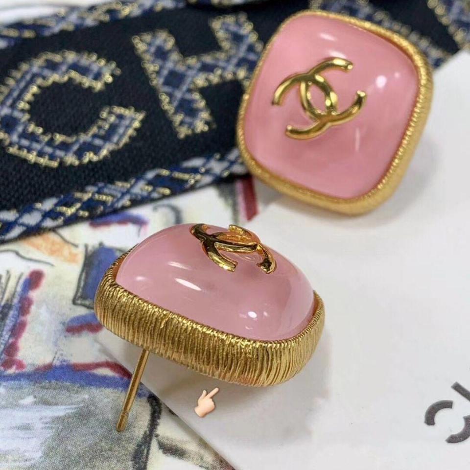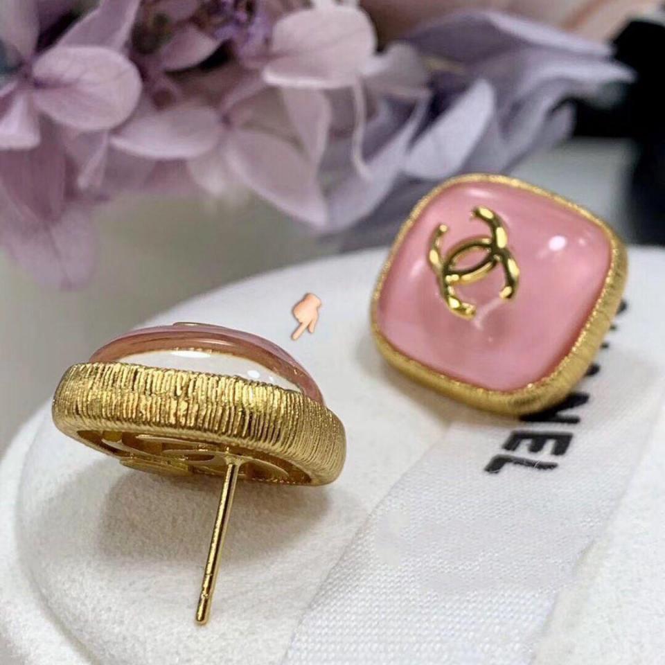 巨美的一款 粉色琺琅水晶耳環 恰到好處的尺寸
