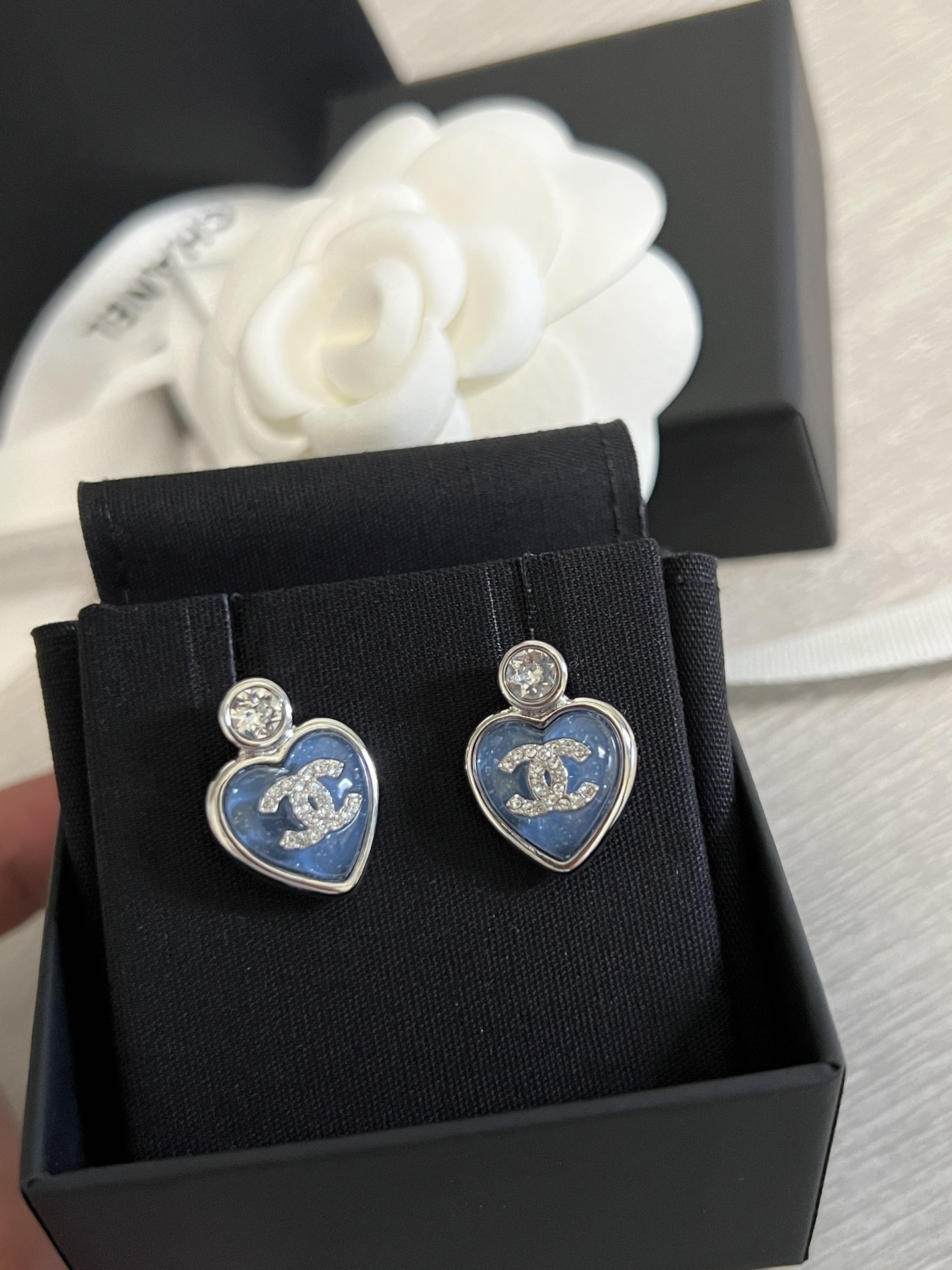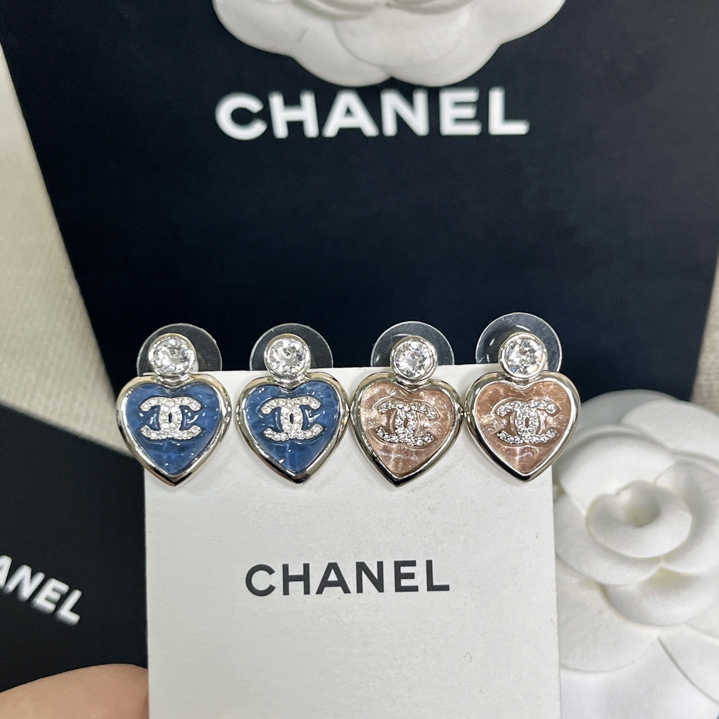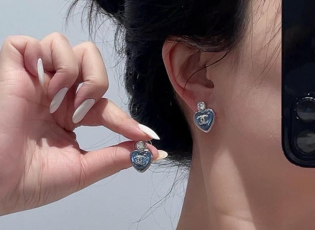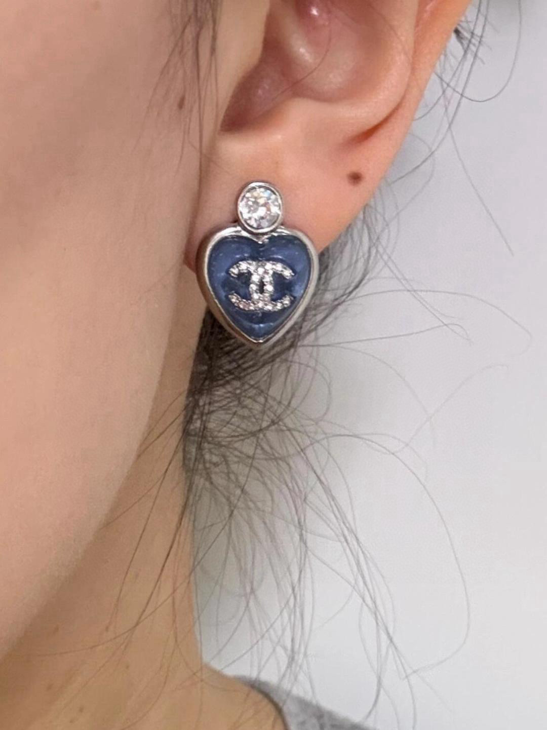 2025春夏新品 C家 𝟮𝟱𝗣大鑽藍/粉心小號耳釘