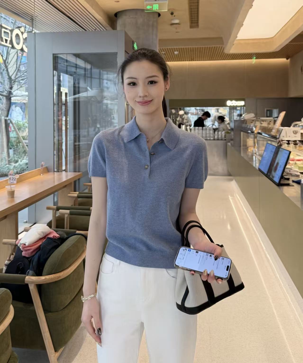 2026早春 LP家 霧霾藍羊絨短袖 Polo衫