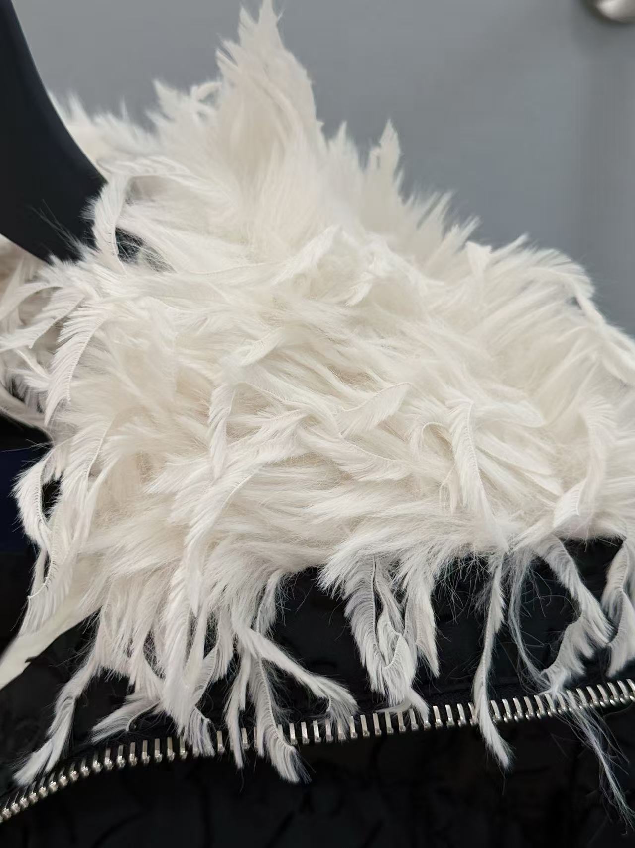 領子上的羽毛裝飾超有靈動感,像小精靈在輕舞飛揚,瞬間讓整件外套從實用變成藝術品;寬鬆滑雪廓形超包容,無論是滑雪場飛馳還是城市街頭出沒,都能輕鬆駕馭。
