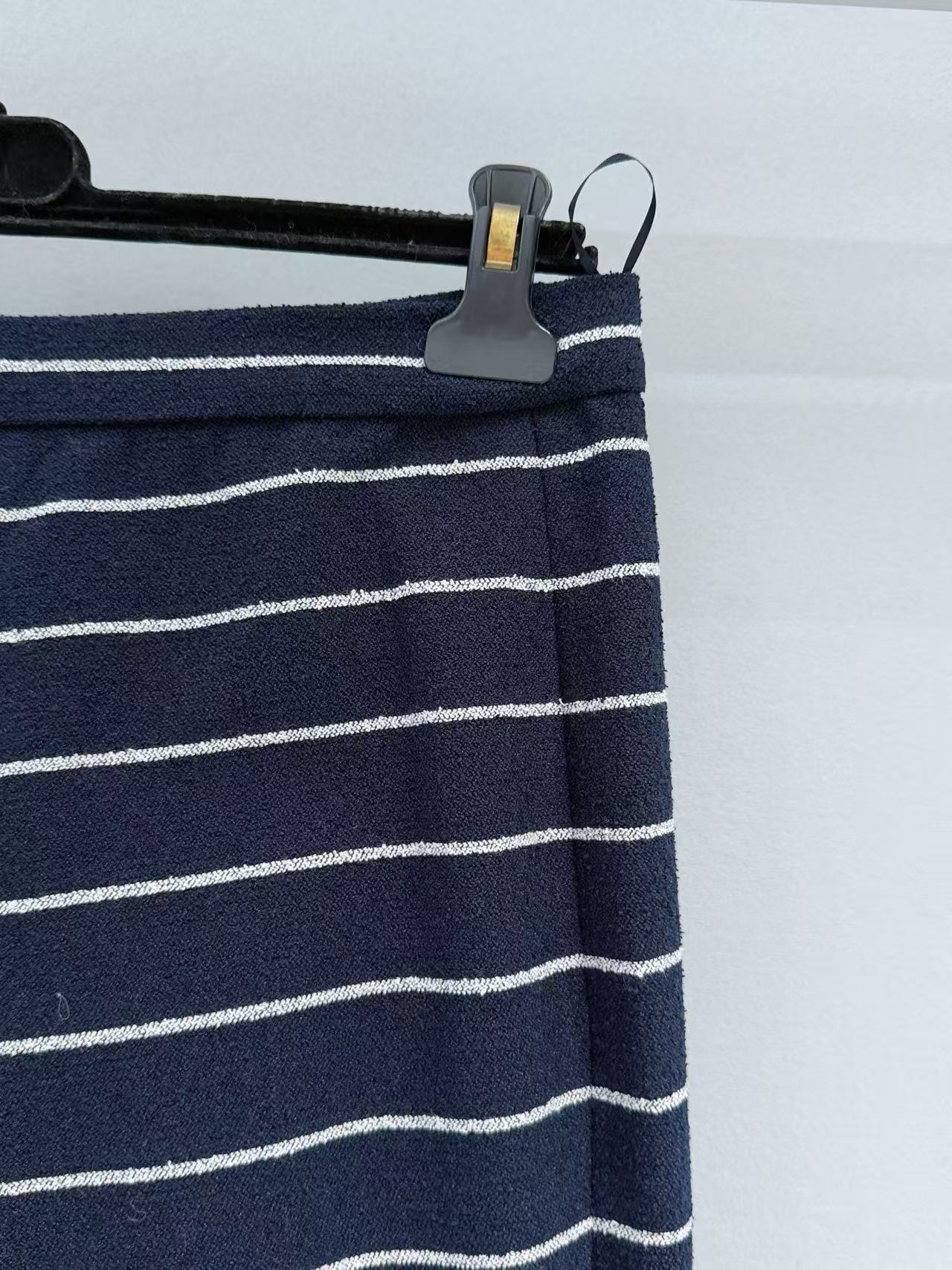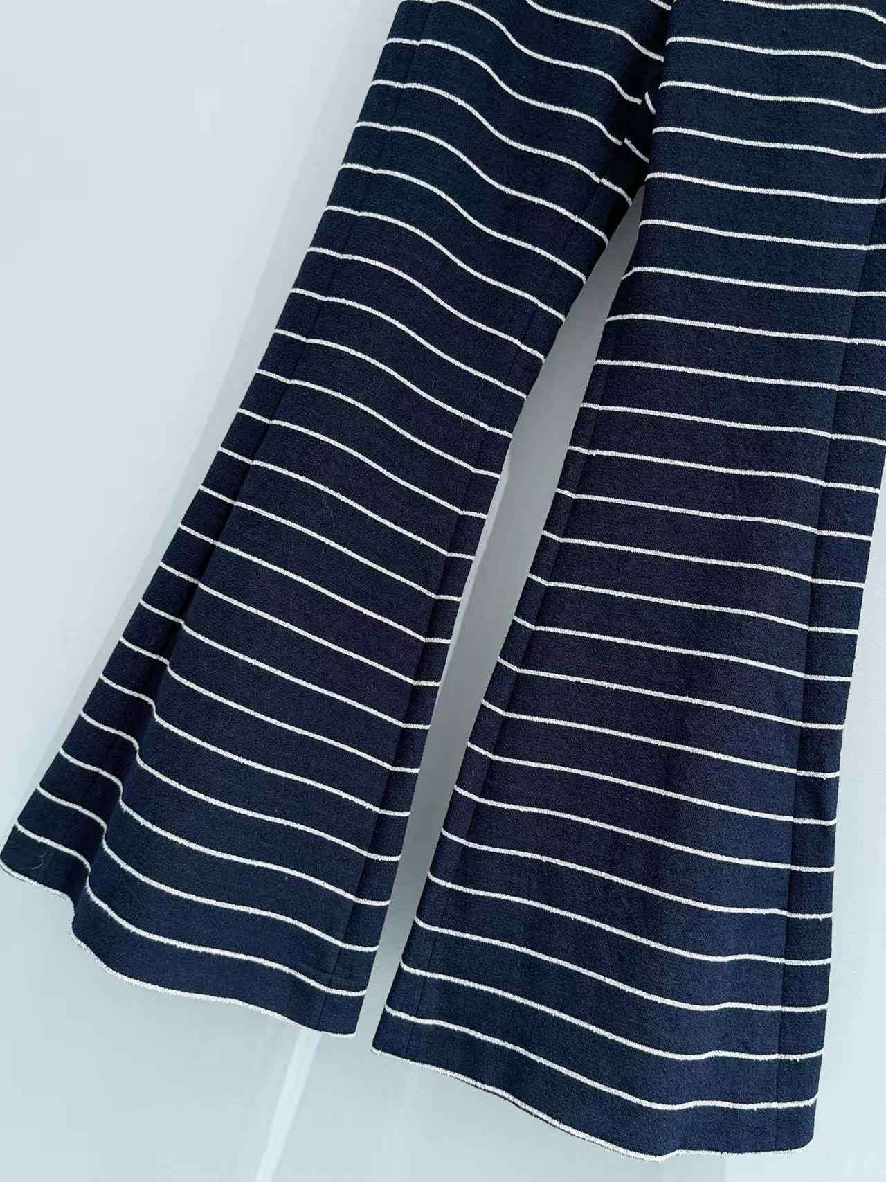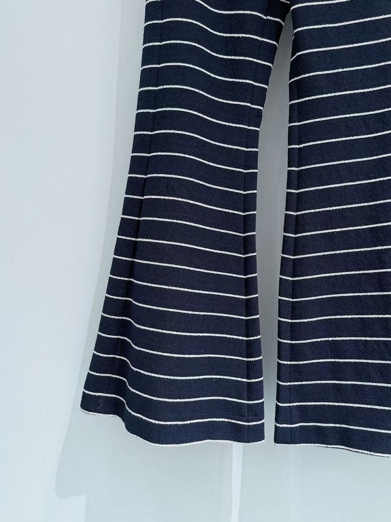 藏青與白色的經典橫條紋設計,搭配金色紐扣,滿滿的海军風情調,穿上去就是度假模式全開!