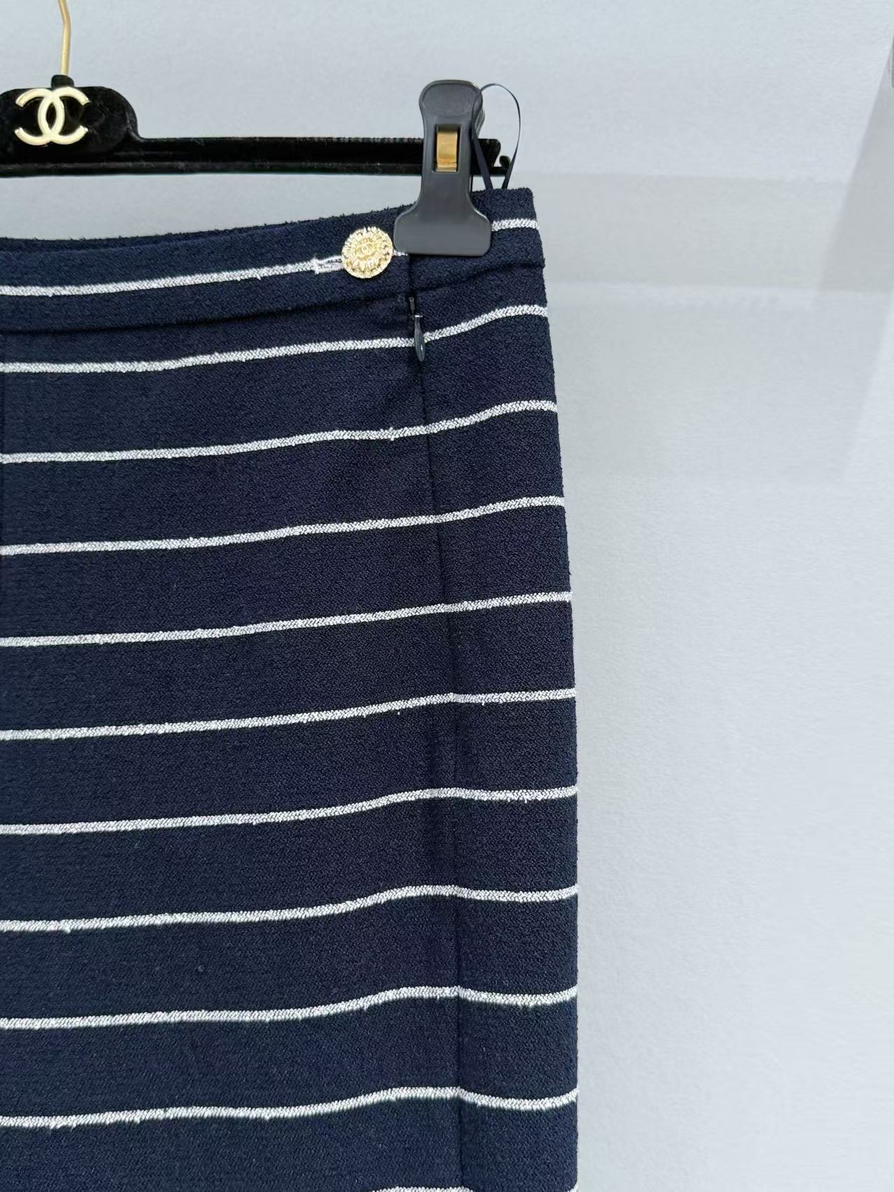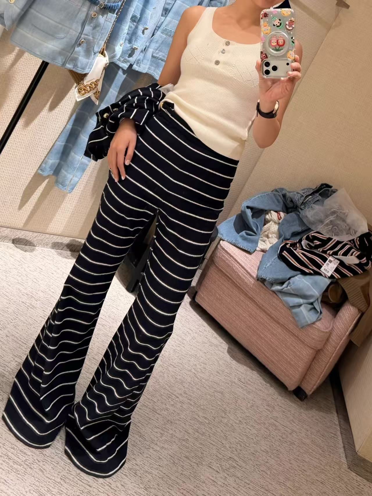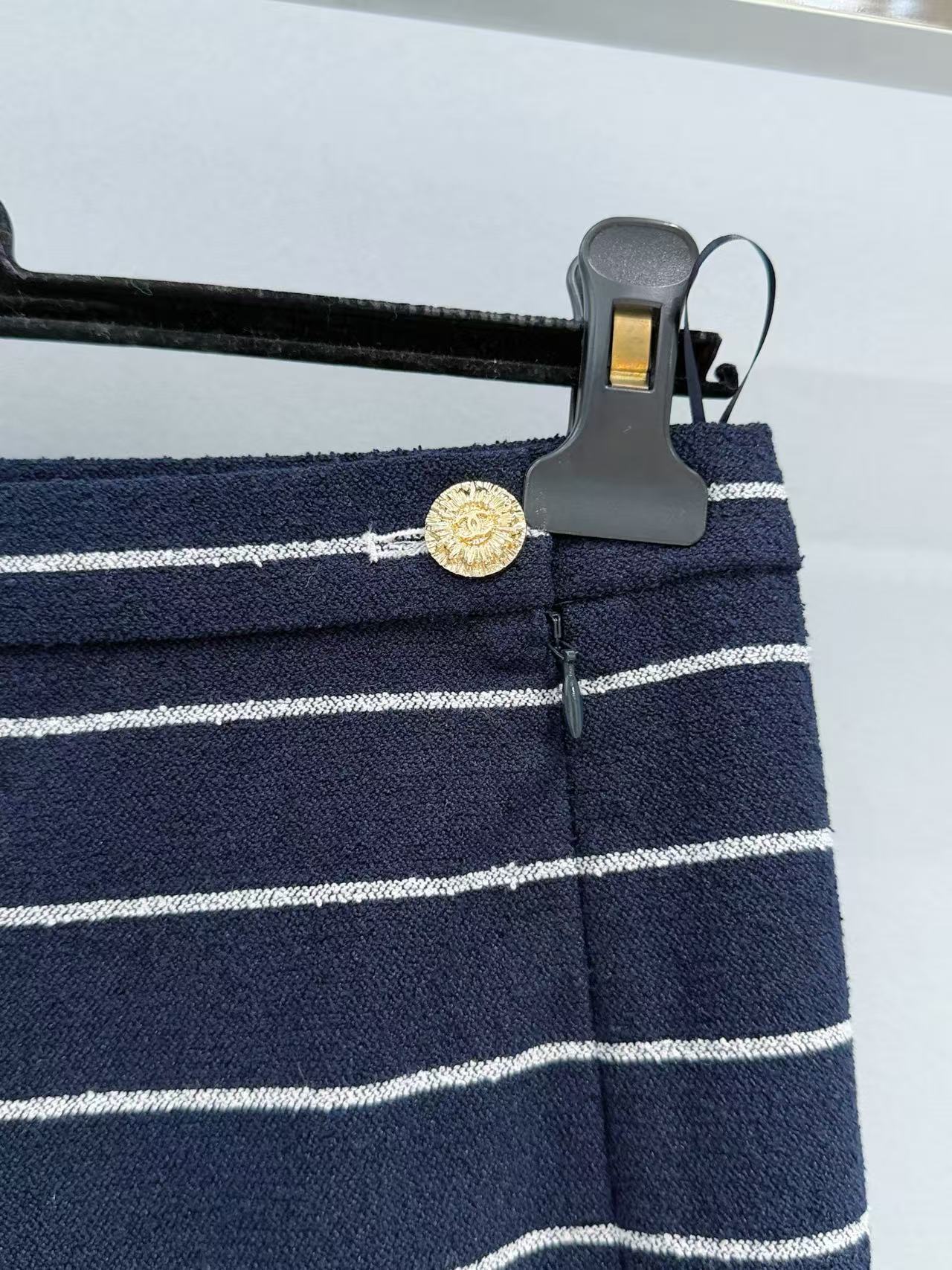 藏青與白色的經典橫條紋設計,搭配金色紐扣,滿滿的海军風情調,穿上去就是度假模式全開!