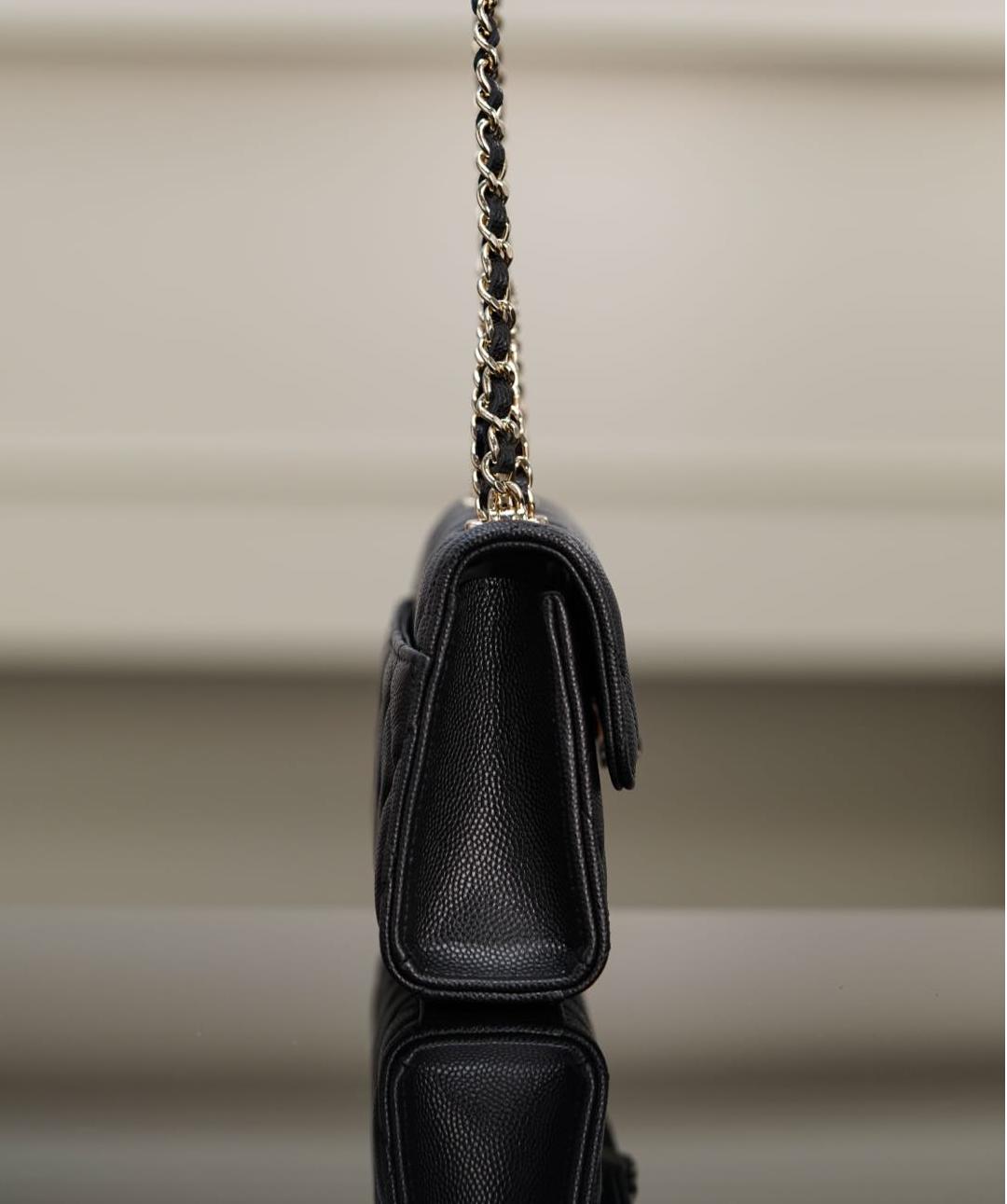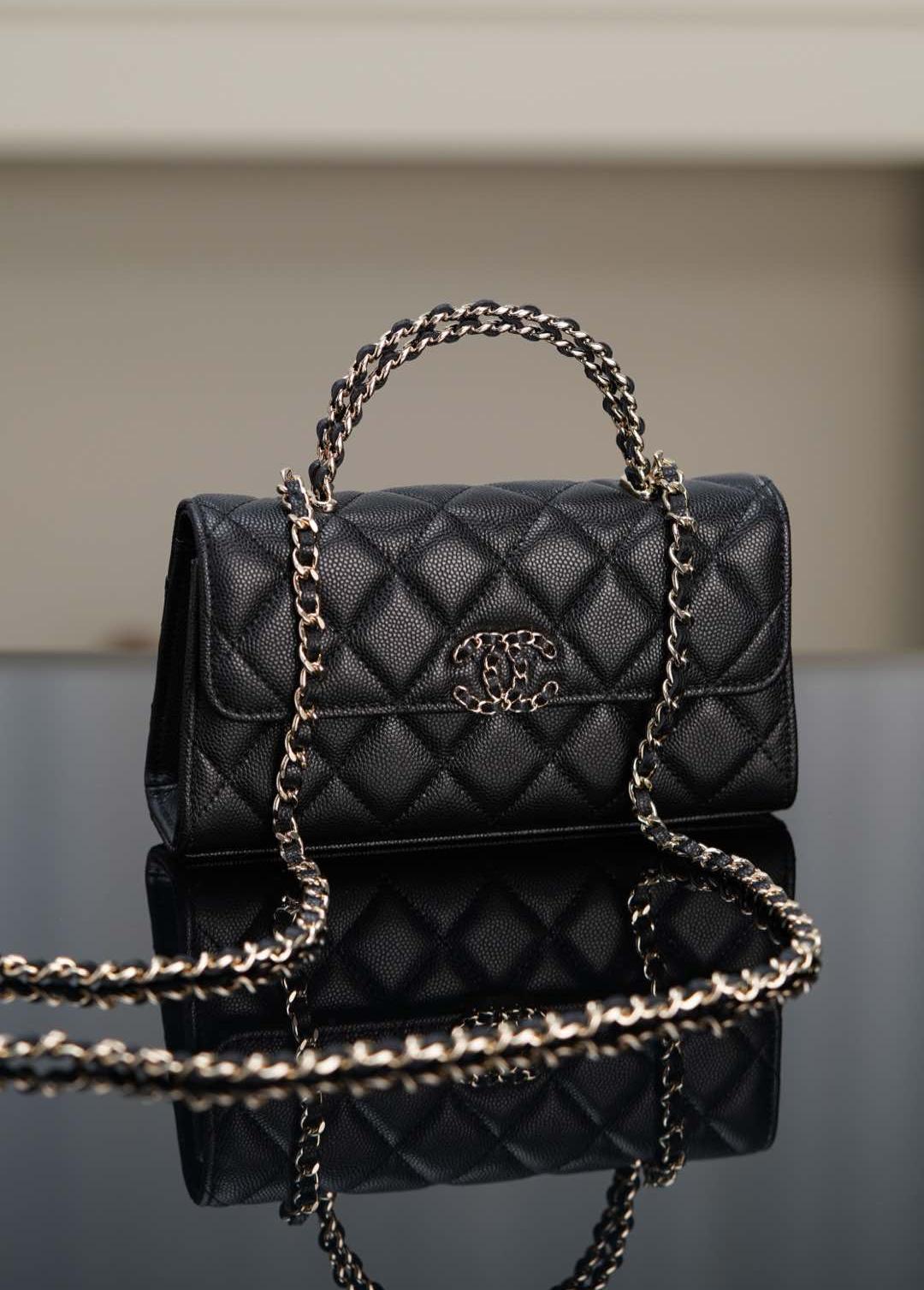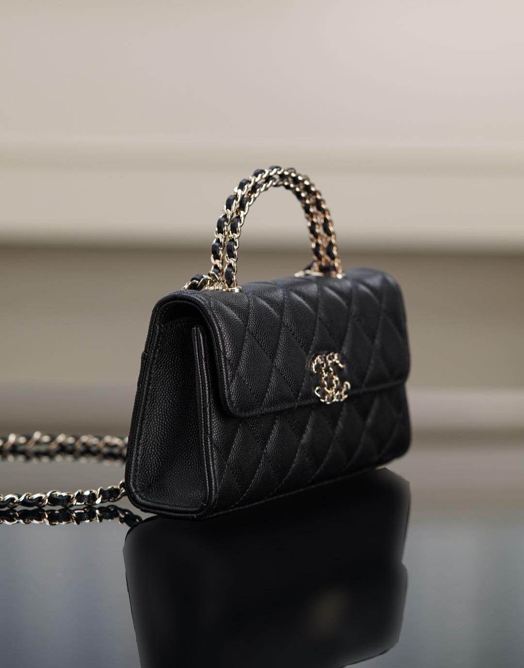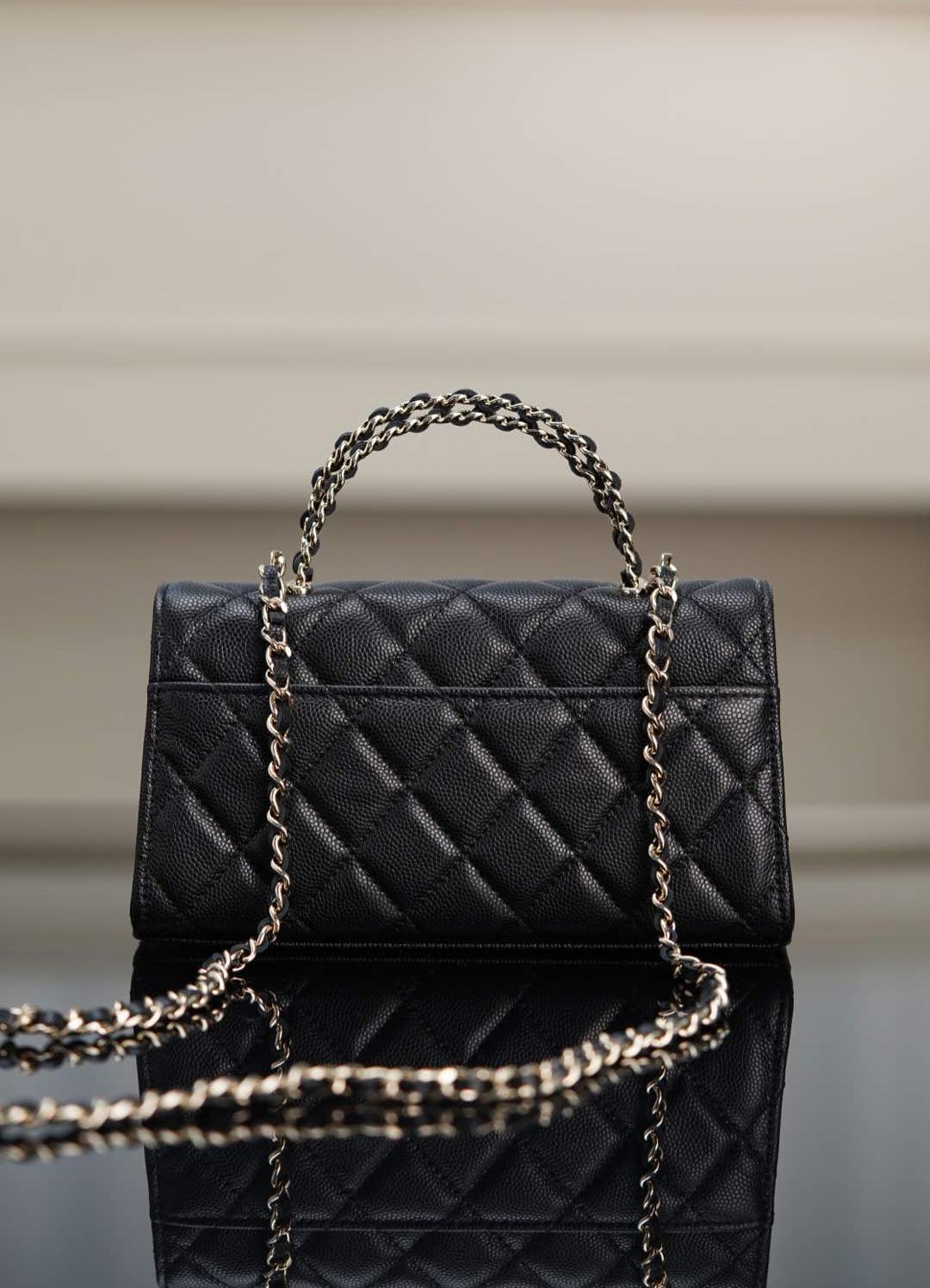 皮穿雙C扣、鏈條設計與手柄細節互相呼應,整體搭配和諧精緻。手提或肩背皆宜,無論是日常上班、約會出遊,甚至參加正式場合,都能展現無可挑剔的品味。