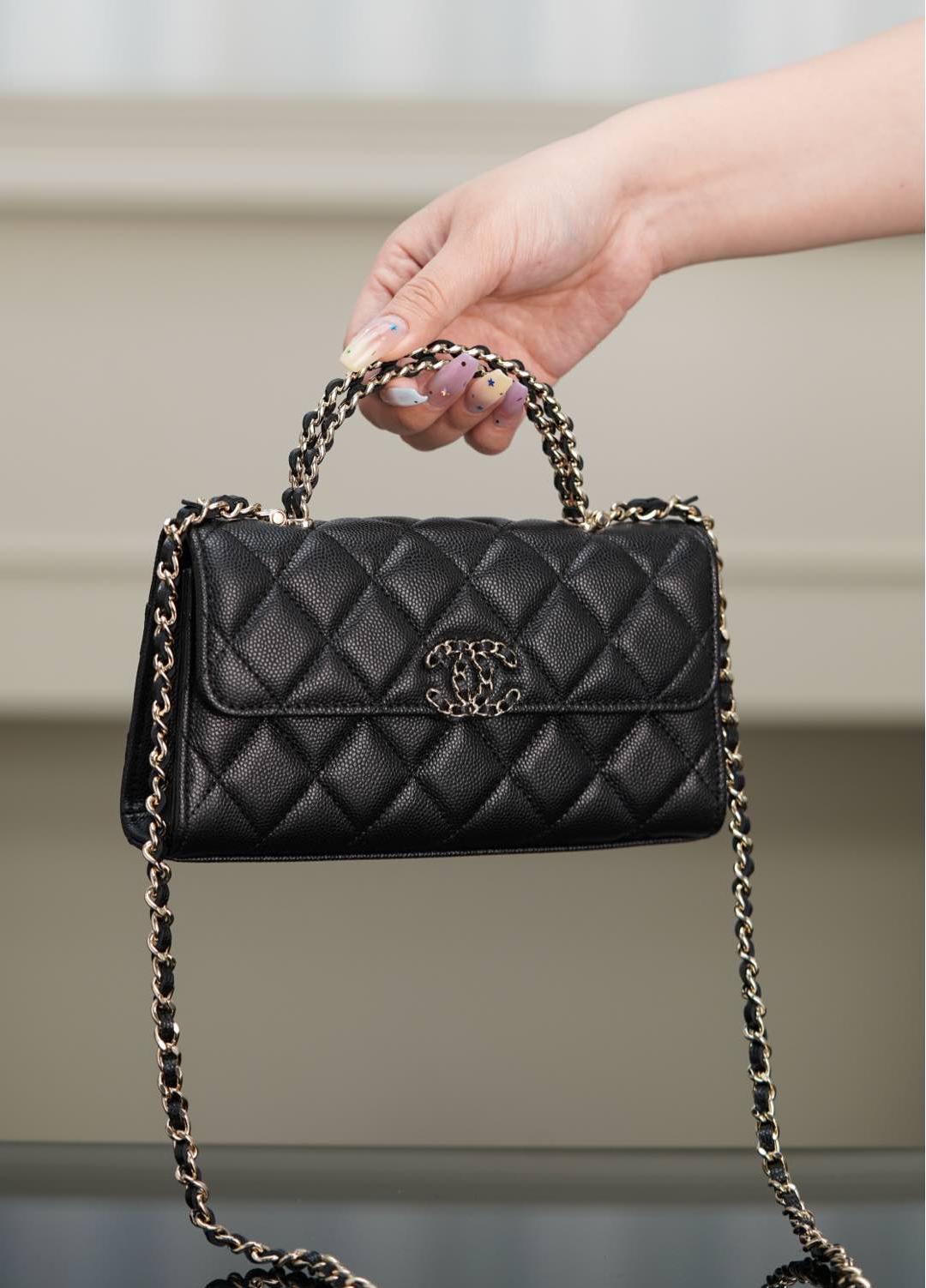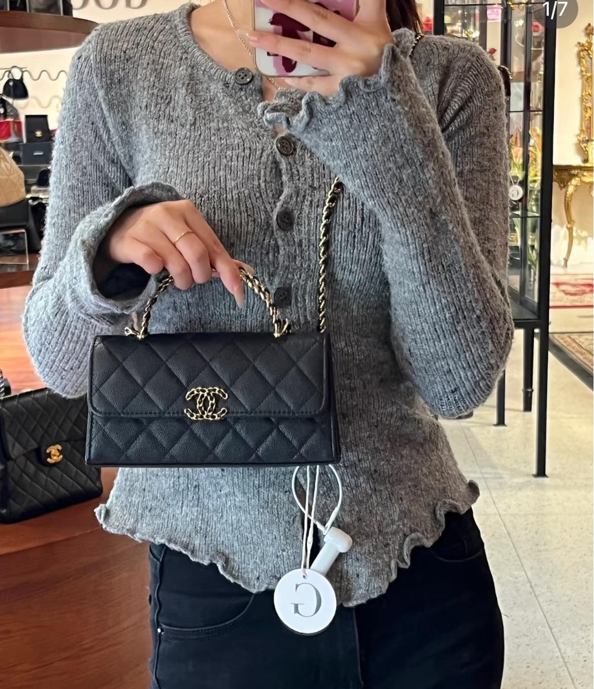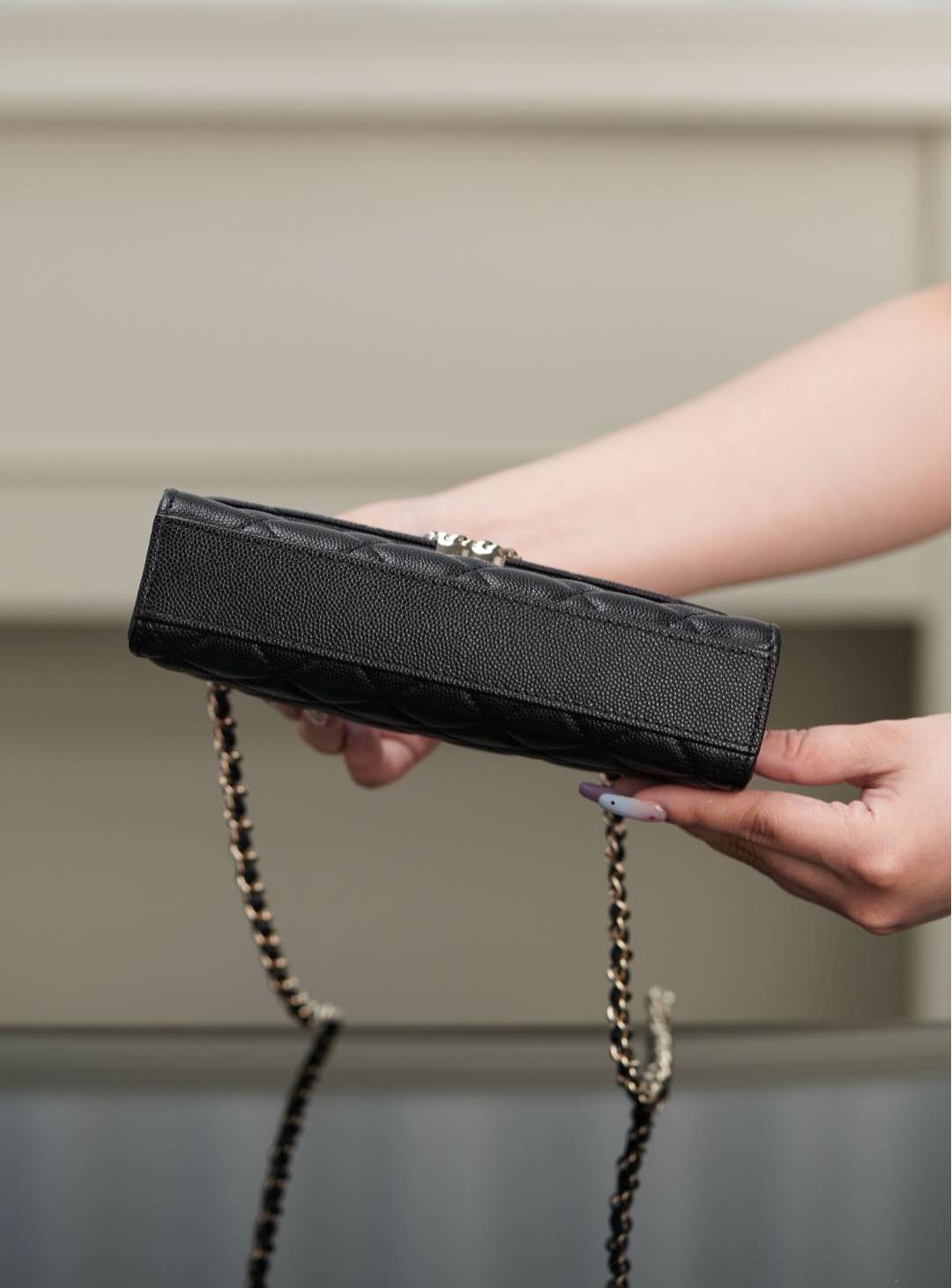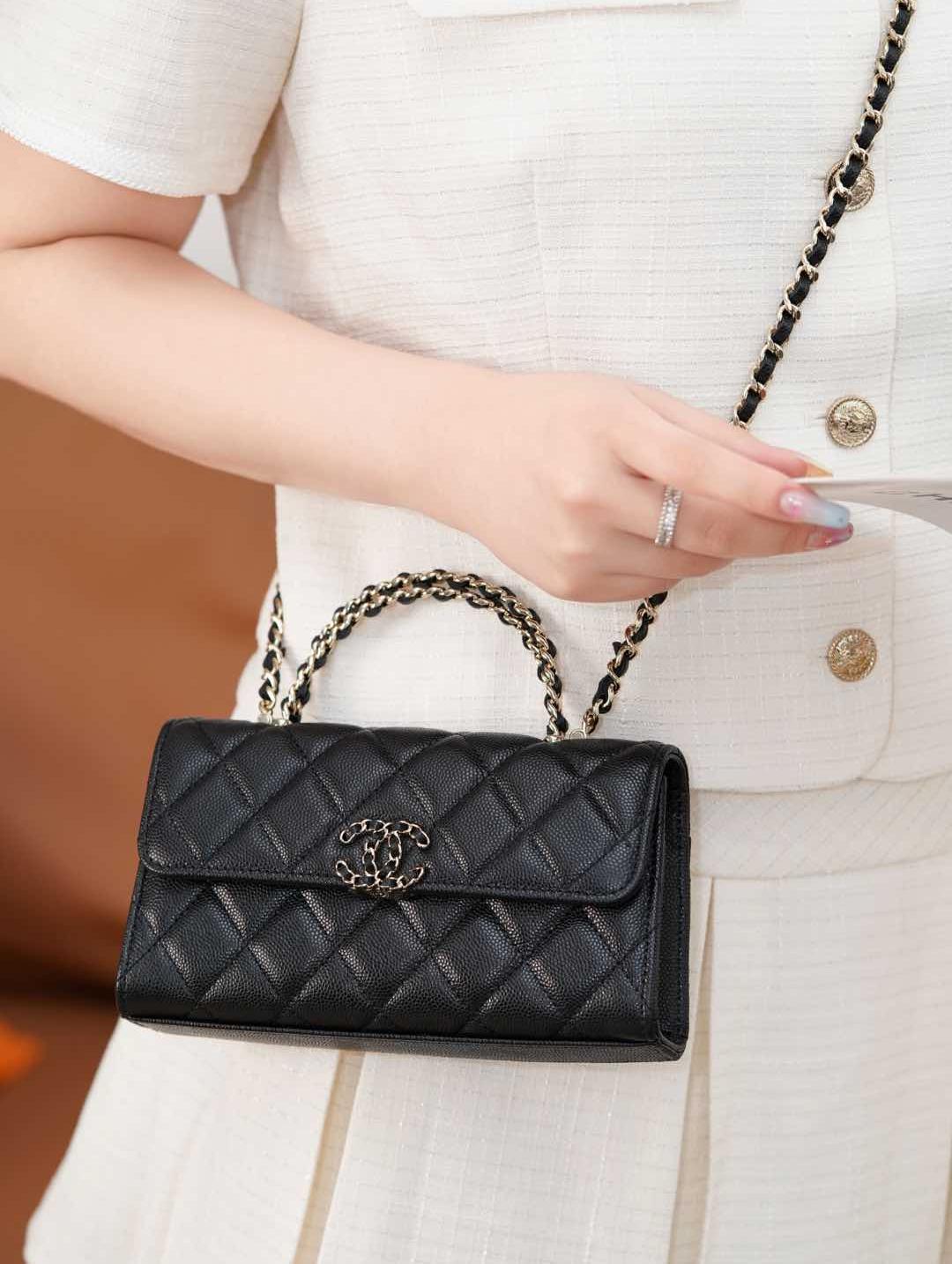 皮穿雙C扣、鏈條設計與手柄細節互相呼應,整體搭配和諧精緻。手提或肩背皆宜,無論是日常上班、約會出遊,甚至參加正式場合,都能展現無可挑剔的品味。